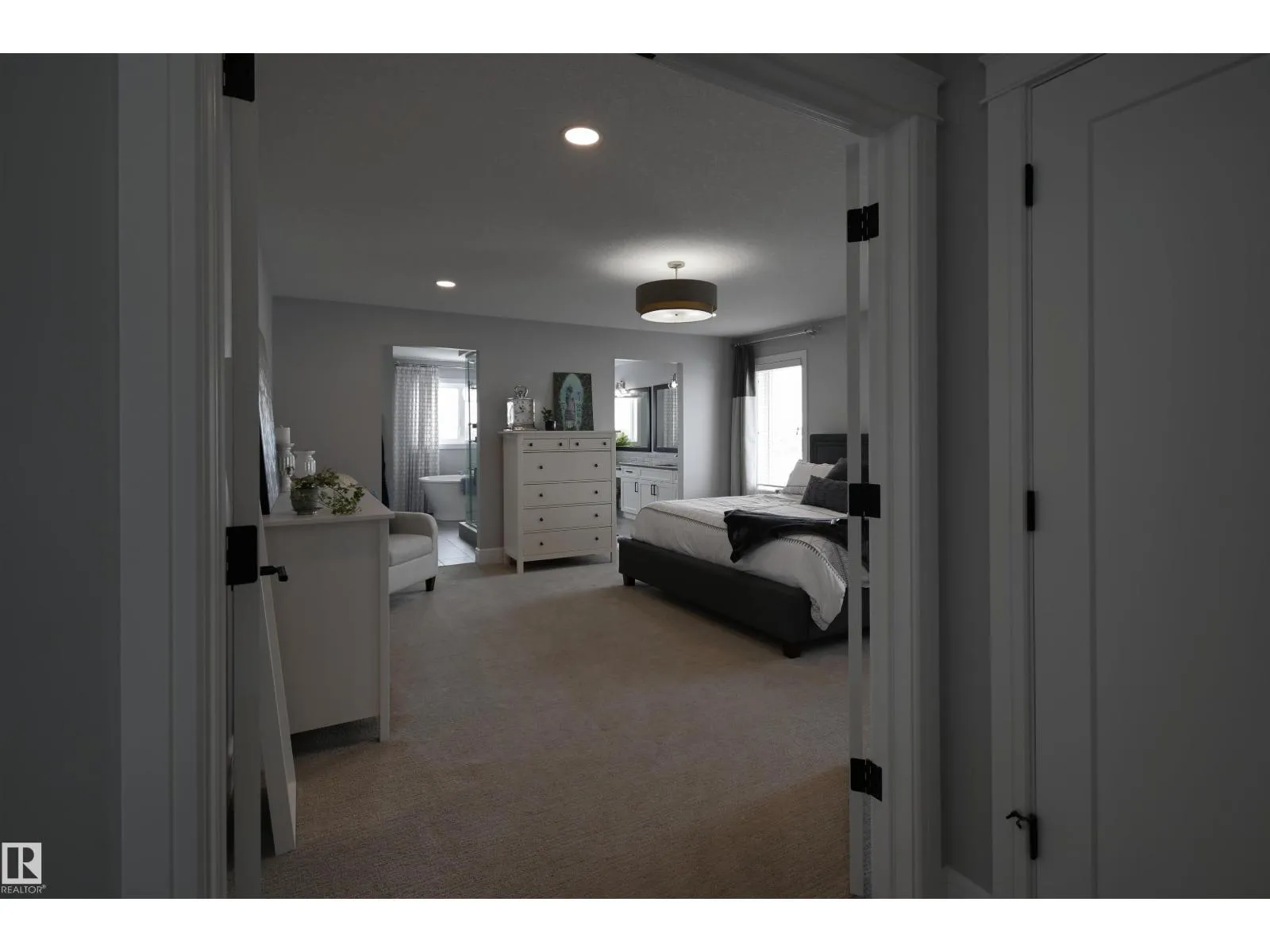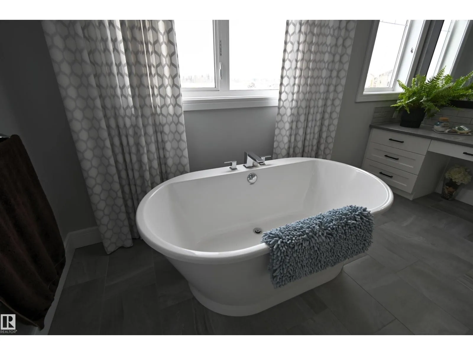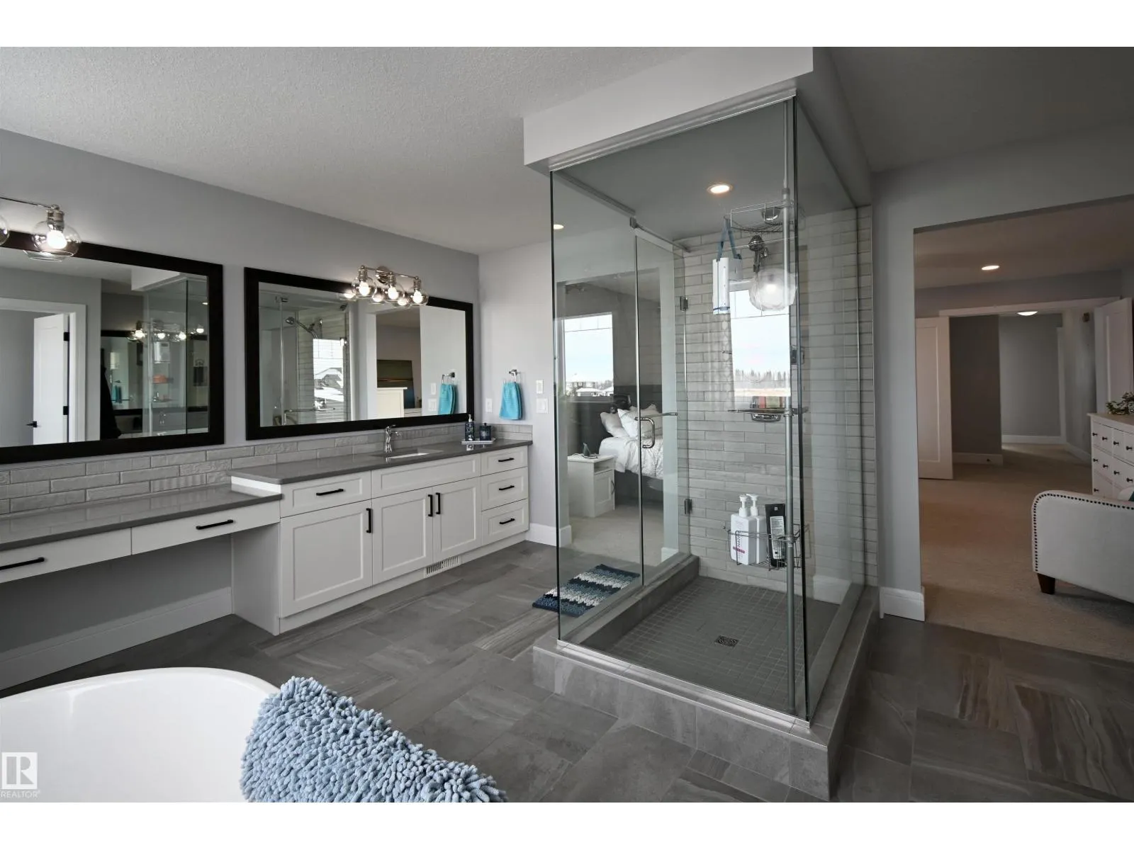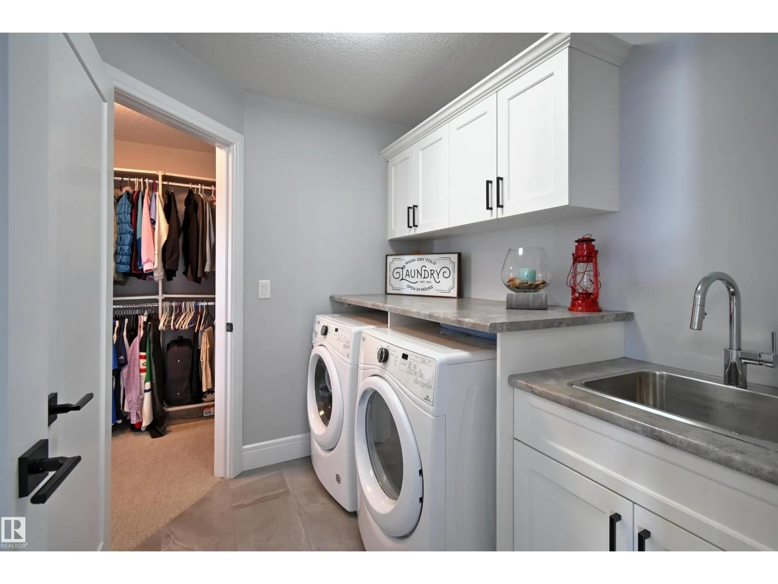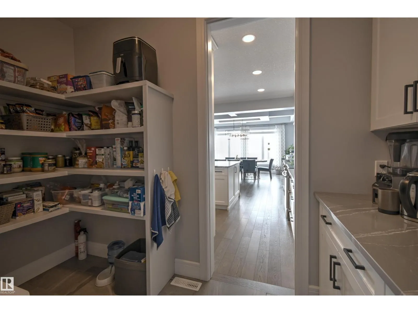 Welcome to Genesis Lake, an exceptional residence combining luxury, function and thoughtful upgrades. This home features a four-car heated garage with convenient pass-through to a private backyard, professionally landscaped beds with concrete curbing, and a composite deck with gazebo for summer entertaining. Inside, enjoy 9-foot ceilings, 8-foot doors, engineered hardwood, central A/C, and a front office overlooking the patio. The gourmet kitchen offers white cabinetry to the ceiling, a massive island, stainless hood, and chevron tile backsplash. Adjoining dining with coffered ceiling opens to a generous eating area. A walk-through pantry,with butler/coffee bar lead to a mudroom with custom shelving. A tiled dog wash with glass door and abundant storage add everyday convenience. Upstairs, a vaulted bonus room, spacious bedrooms with views, and a primary suite with laundry access and a luxurious 5-piece ensuite complete the home. The basement is fully finish & solar power and LED lighting (id:27476)