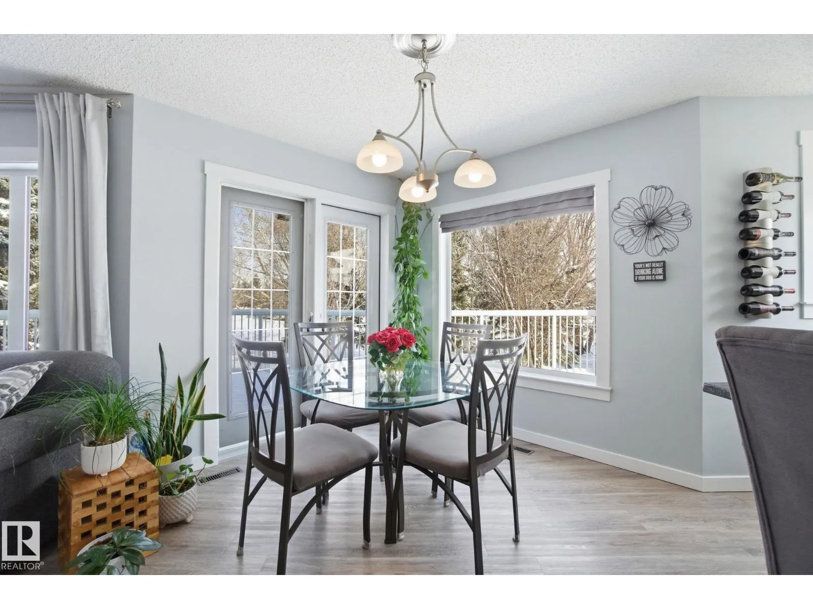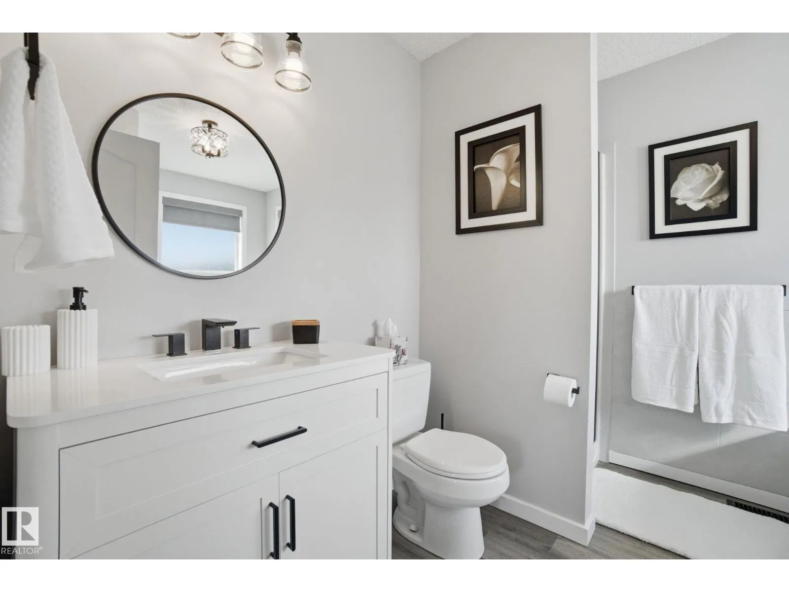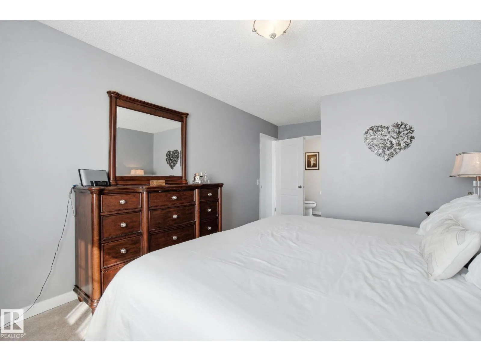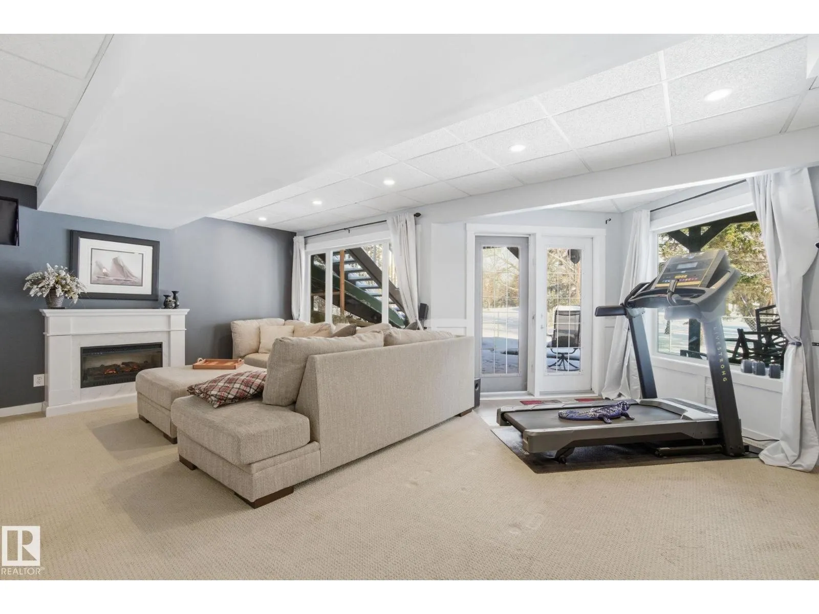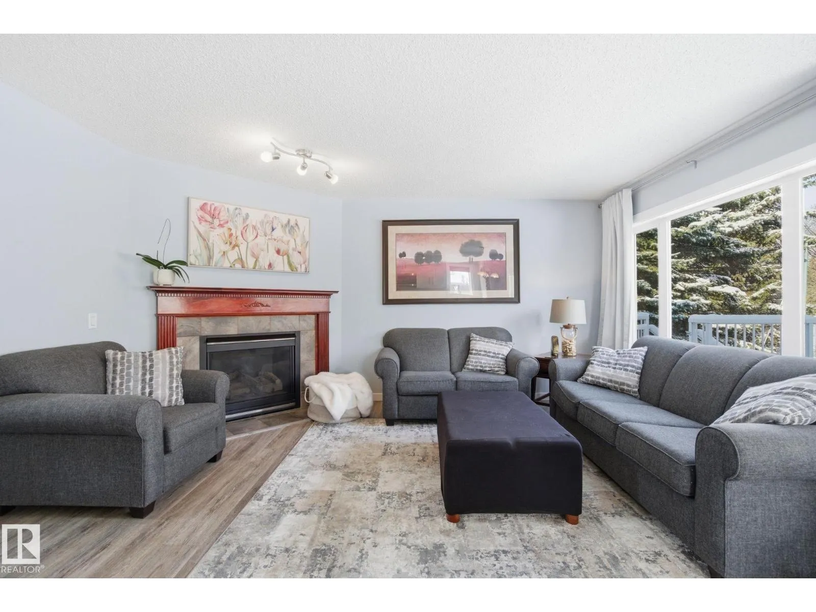 Beautiful WALKOUT 2-storey BACKING the GOLF COURSE in Stony Plain! Over 1500 sq ft PLUS fully finished basement. 18' ceilings greet you as you enter. Front flex room could be a great dining space, home office or formal living room. NEW kitchen is gorgeous with beautiful white cabinets, quartz countertops, corner pantry & updated appliances! Great breakfast nook with room to expand for guests! Large living room for more entertaining with gas fireplace. Tons of natural light through the windows looking onto the mature trees of the golf course. MAIN FLOOR LAUNDRY! Upstairs the master suite is a great size with large walk in closet and newly renovated 4pc ensuite. 2 more bedrooms are great for kids, guests or a home office. Walkout basement has large rec room space. It's even fully plumbed for wet bar or future 2nd kitchen. Another bedroom & 4pc bath. Large deck is great to spend a warm summer evening & yard is fully landscaped including picture, perfect Koi pond. It's your own private oasis!!! (id:27476)