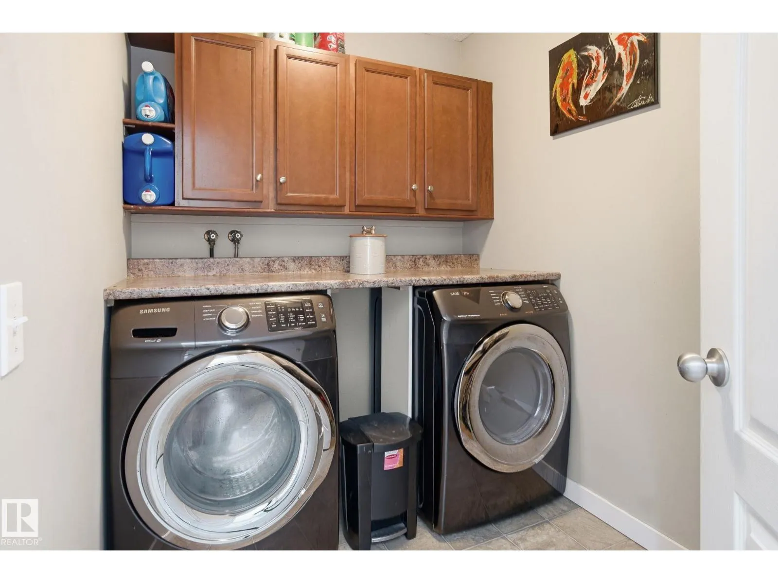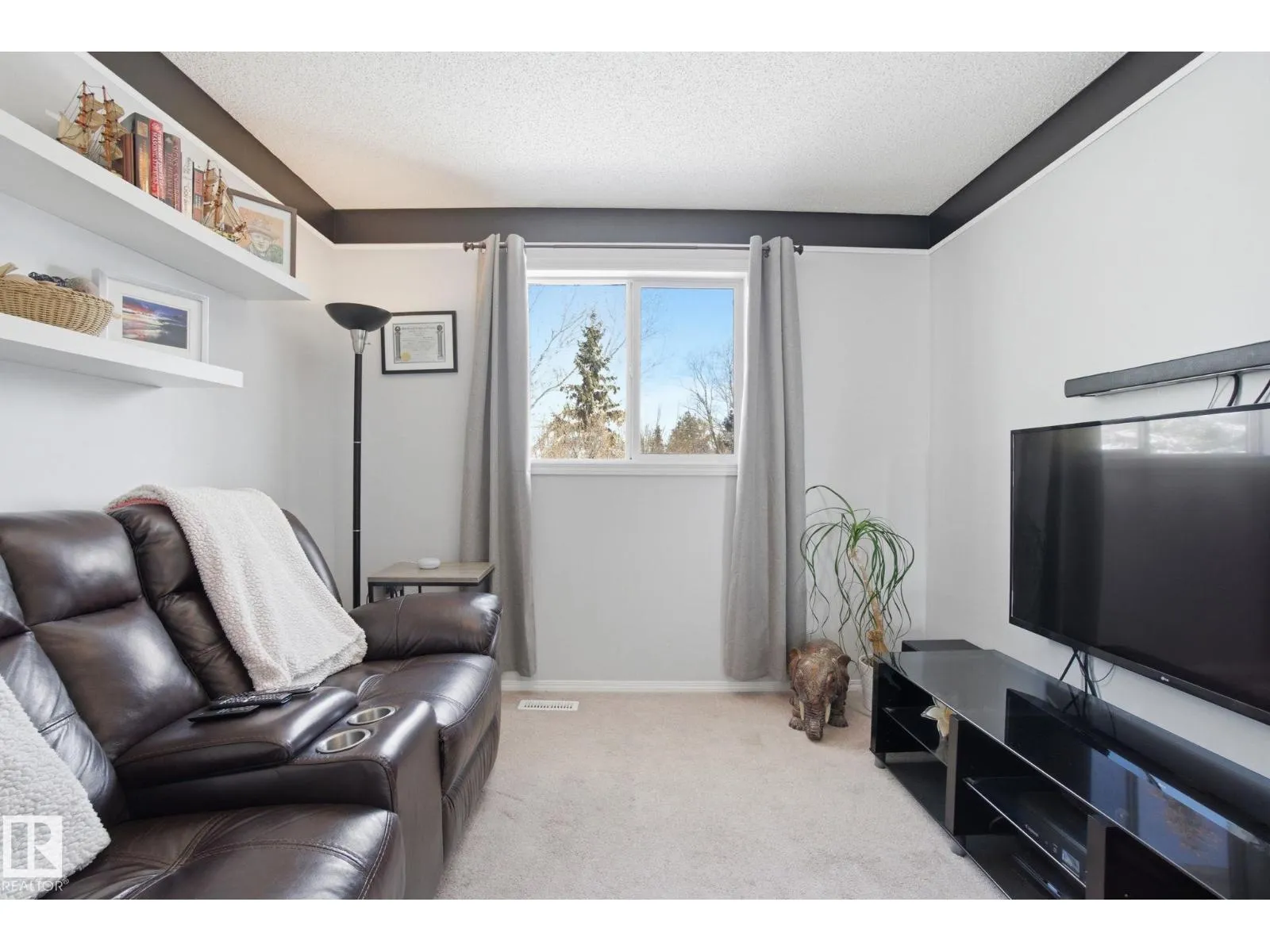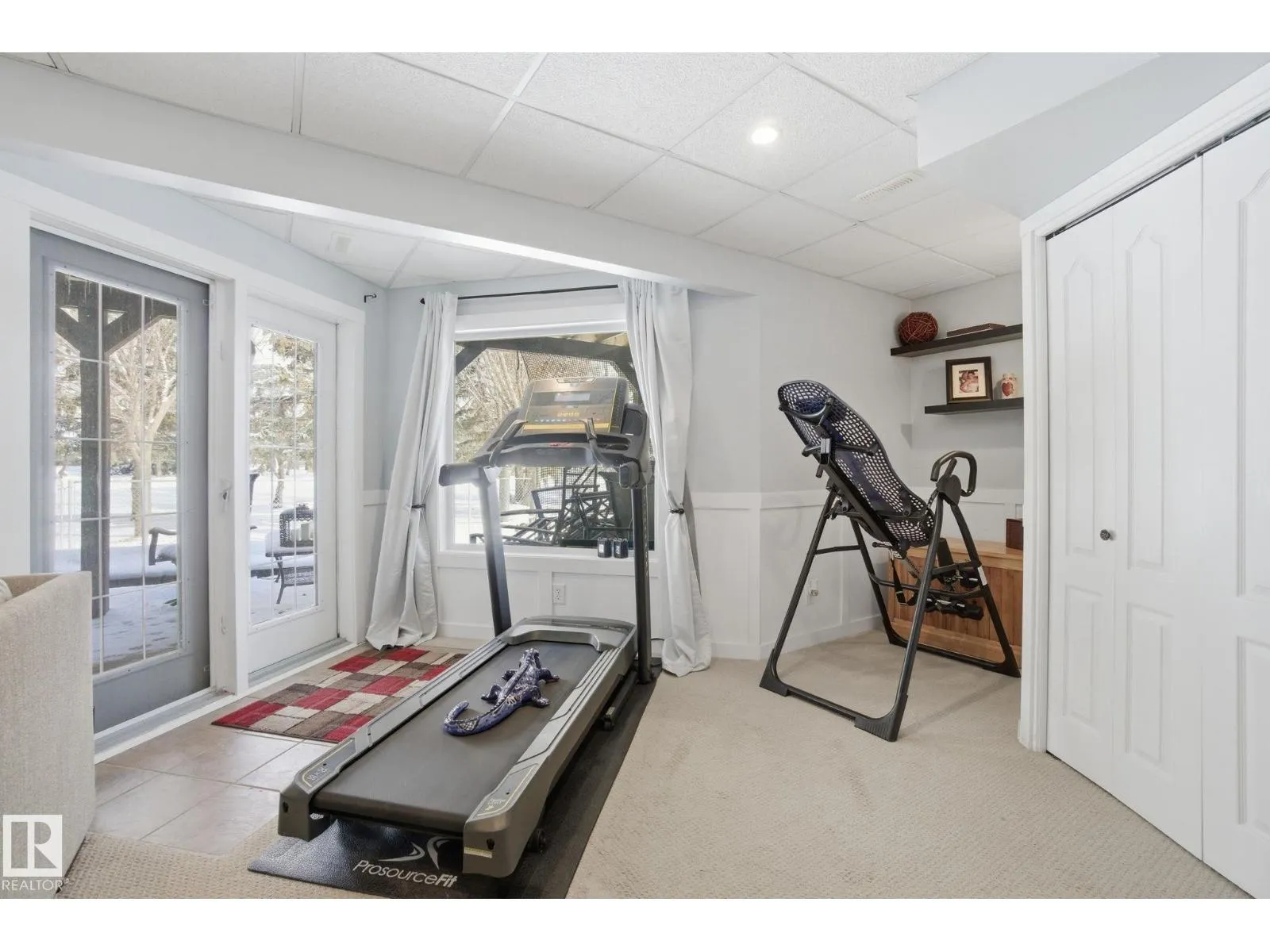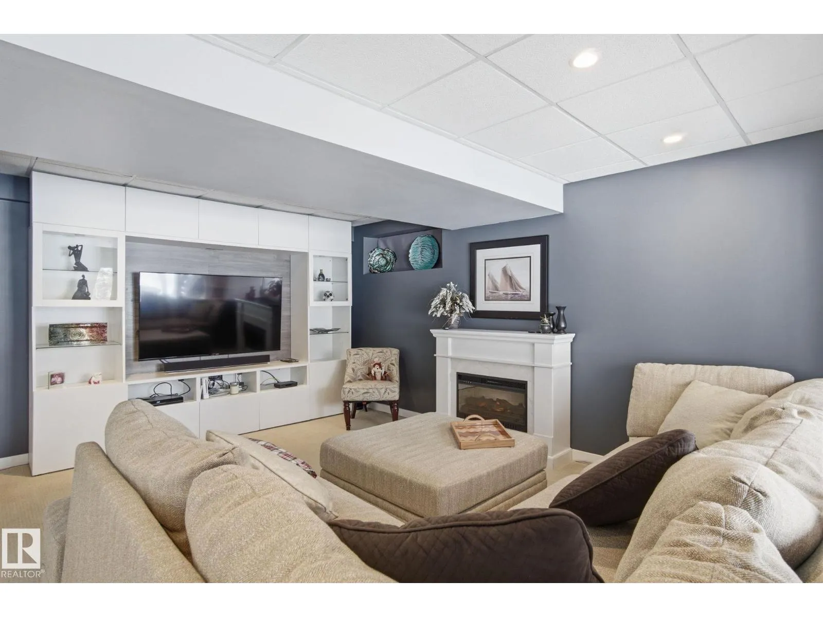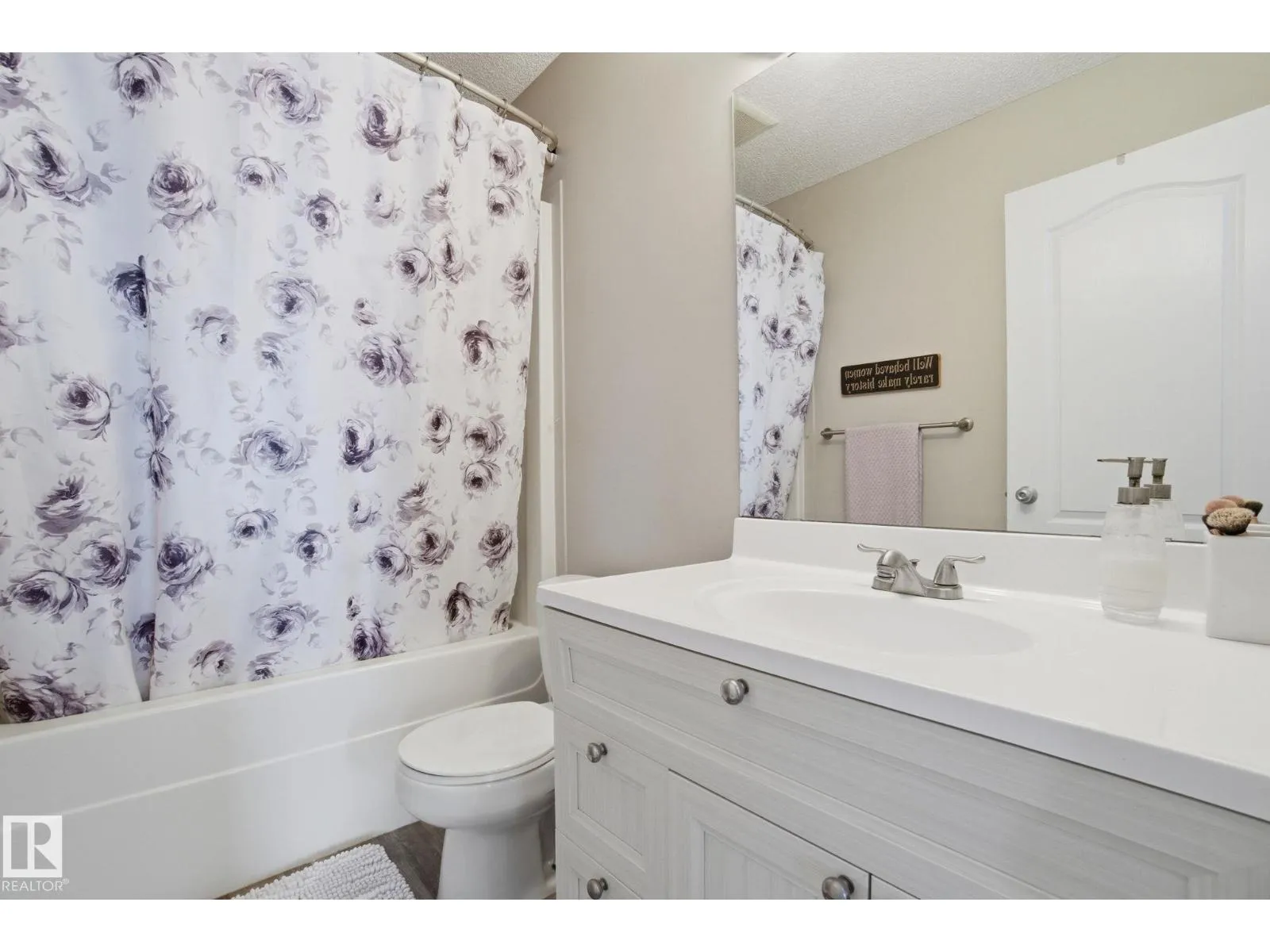Beautiful WALKOUT 2-storey BACKING the GOLF COURSE in Stony Plain! Over 1500 sq ft PLUS fully finished basement. 18' ceilings greet you as you enter. Front flex room could be a great dining space, home office or formal living room. NEW kitchen is gorgeous with beautiful white cabinets, quartz countertops, corner pantry & updated appliances! Great breakfast nook with room to expand for guests! Large living room for more entertaining with gas fireplace. Tons of natural light through the windows looking onto the mature trees of the golf course. MAIN FLOOR LAUNDRY! Upstairs the master suite is a great size with large walk in closet and newly renovated 4pc ensuite. 2 more bedrooms are great for kids, guests or a home office. Walkout basement has large rec room space. It's even fully plumbed for wet bar or future 2nd kitchen. Another bedroom & 4pc bath. Large deck is great to spend a warm summer evening & yard is fully landscaped including picture, perfect Koi pond. It's your own private oasis!!! (id:27476)