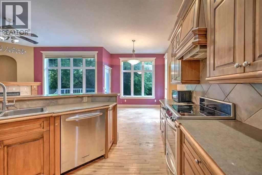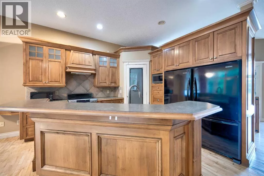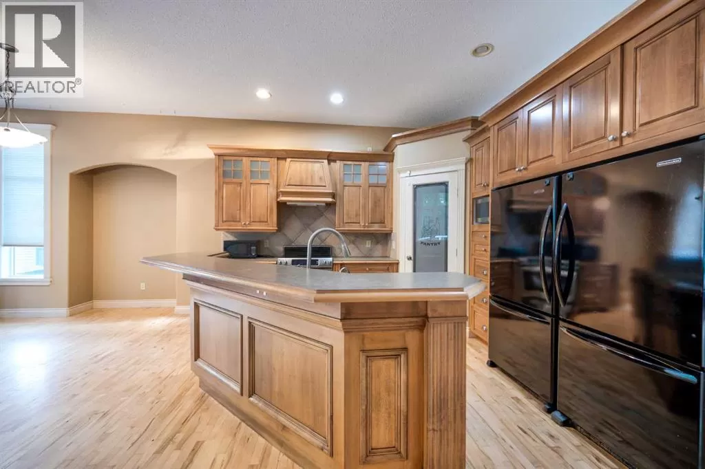 Immediate Possession. Move In NOW! Estate Living Across from the PARK. PARKVIEW ESTATES established subdivision. Oversized treed lot. 6 BEDROOMS. 3 Up, 3 Down. Loaded with CUSTOM MAPLE HARDWOOD FLOORING, Custom Cabinets are Maple. High End. All kitchen aid appliances, 2 refrigerators in the kitchen, Open Concept. DREAM KITCHEN, cabinets and drawers galore. Large pantry, Kitchen Island overlooks the living room with Gas Fireplace, Bright and Spacious. Large windows to soak in the beautiful backyard. Mature Trees, super large back deck with forever decking. Central Air conditioner, in floor HEATING IN BASEMENT. Oversized Tandem Garage with enormous height for a mezzanine. Master bedroom has soaker tub walk in closet with built in drawers, closet organizers. Basement is massive with 3 good sized bedrooms large 3 pc bathroom. Brilliant Home located close to downtown area, with a very large soccer field/park across the street, quiet neighborhood. Exposed aggregate driveway only enhances the quality of this home. All Decked outside 11'4x10'2 + Deck 16'8x14.2 West Back Yard. Shed. Treed..Private Backyard. (id:27476)
