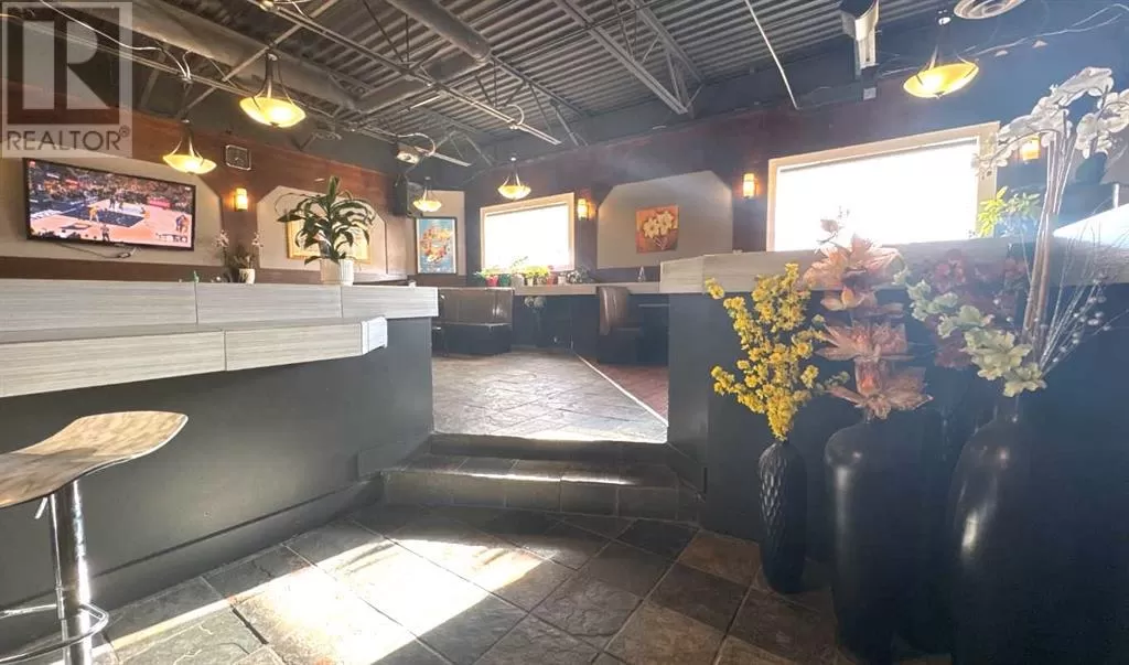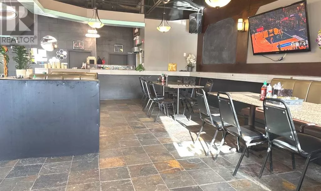 Long-established restaurant business with high exposure on Highway #1 and plenty of parking. The kitchen serves the restaurant (104 seating plus Patio area seasonal allows up to 150 people) and the hotel lounge ( very busy with 30 slot machines & pool tables tournament lounge). The restaurant's condition is very well-maintained, and the landlord is easy to work with, offering cheap rent for the restaurant's size. Only 25 minutes from Calgary. This is a perfect opportunity for a family to operate as it has great potential to grow the business to the next level. (id:27476)