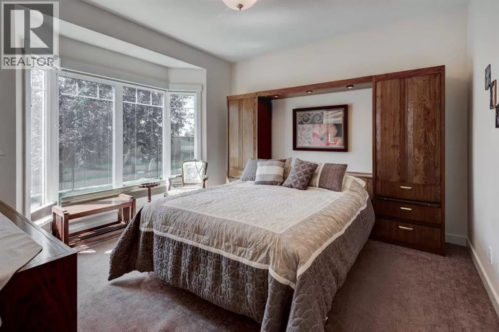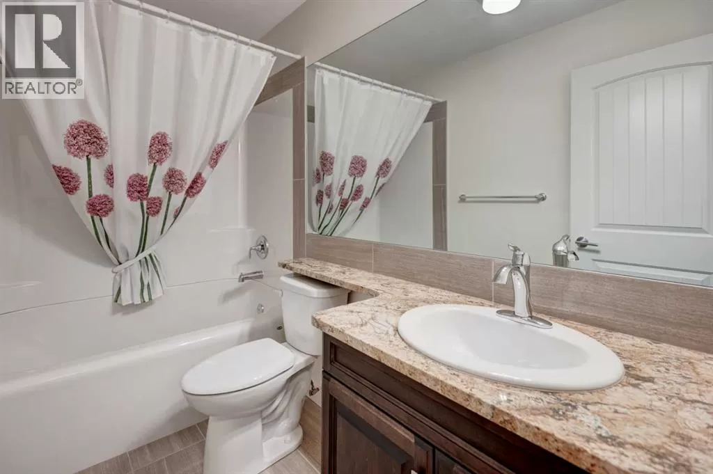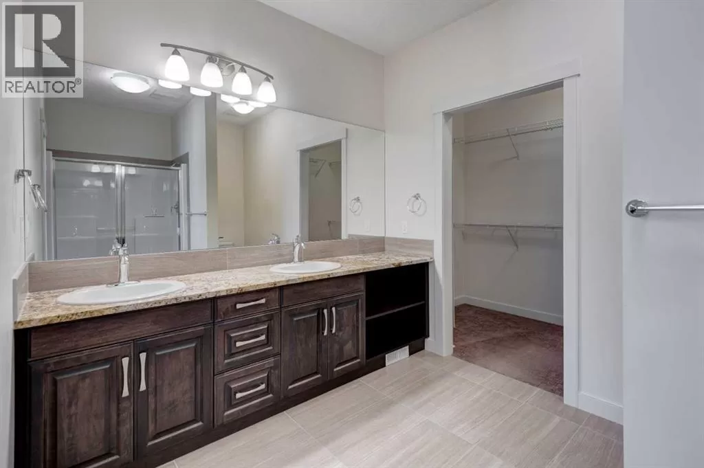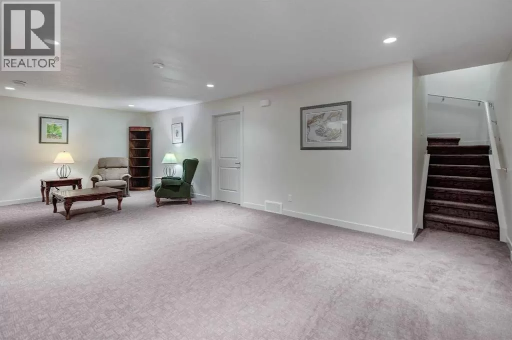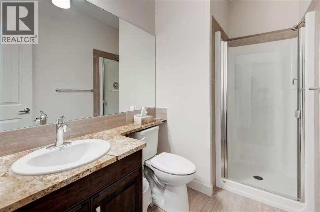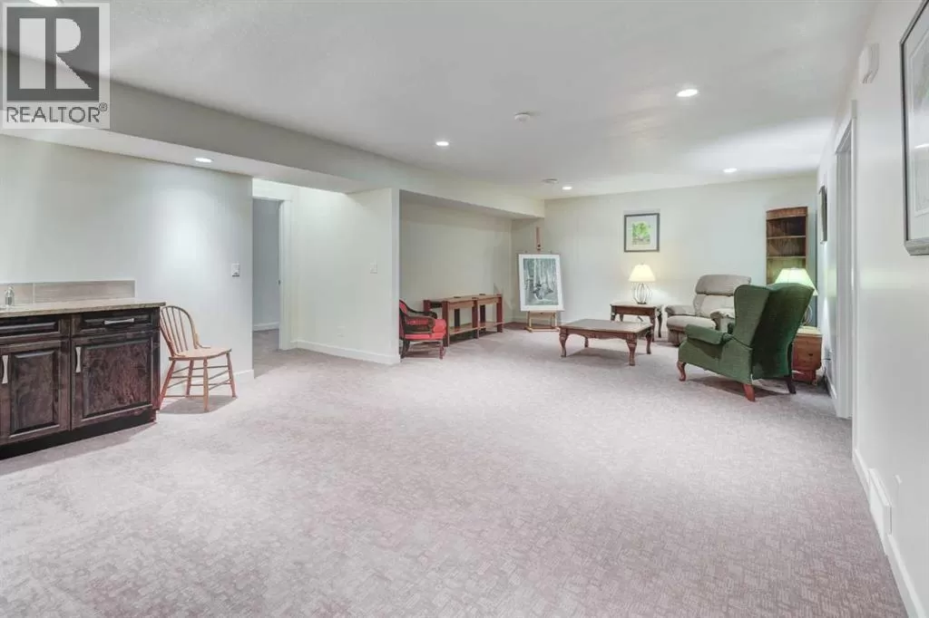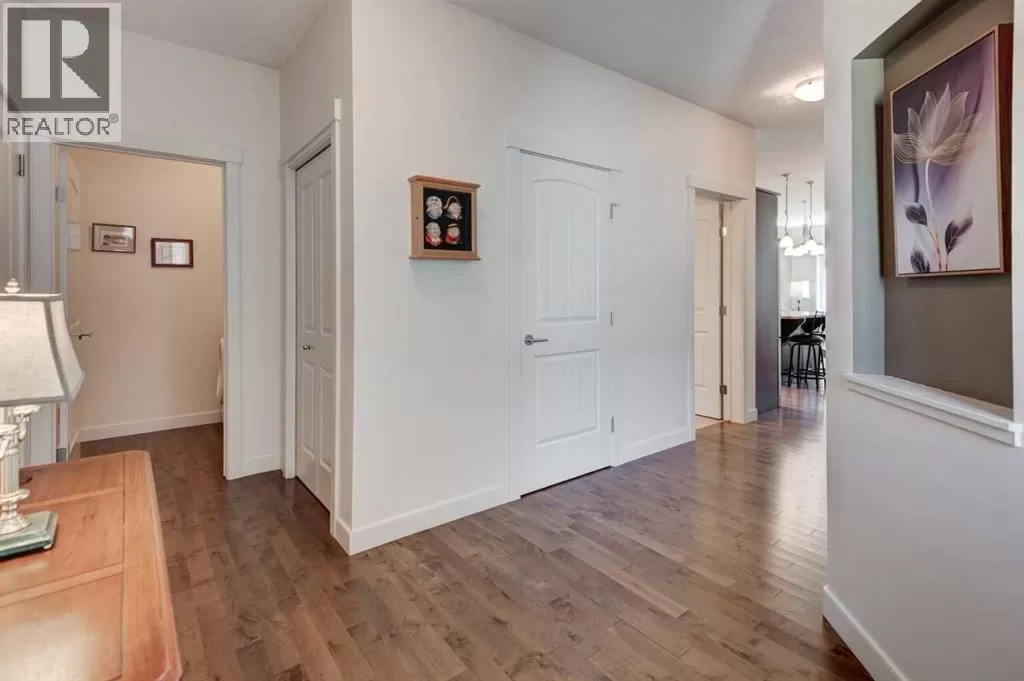Beautifully maintained fully developed VILLA in Sagewood Adult Living (55+...ask your Realtor® for details) community in Strathmore is now available for a quick possession. This former SHOWHOME is fully upgraded and features 9 ft ceilings, wide hallways, granite countertops, throughout the main level, hardwood floors, copious kitchen cabinetry with soft close cupboards and drawers, under cabinet lighting and stainless steel appliances. The floorplan is open concept with a West exposure from the living room. The primary suite presents luxuriously with a large bay window, enough space for a king size bed and dressers and accompanied by a walk in closet. The en suite has his and her sinks, lots of storage in the vanity and a full sized shower. The main level conveniences extend to include a 3 piece guest bathroom, laundry, and a second bedroom or flex room, as it can also be used as a dining room, den or tv room. The lower level contains another bedroom, additional full bathroom, spacious family room with games table area and a wet bar. Storage? There is more than ample storage! Find space here to add a hobby room! There is parking for you in the double attached garage and guest parking a few doors down. The neighbors are wonderful and welcome social gatherings. There are ample walking paths, pickle ball courts, indoor swimming, shopping, hospital, volunteer opportunities and many community activities in the Town of Strathmore. Many families rely on extended members to help with childcare. Perhaps your grandchildren attend one of the schools that are in walking distance... Call your Realtor® to view this luxury villa! (id:27476)