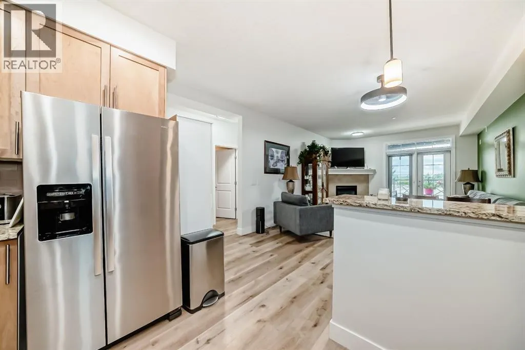 Wow this home shows better than new!! Freshly painted throughout. Newer vinyl flooring throughout. Cabinets are like new. This one bedroom condo is on the main floor with 3 parking stalls. 1 parking is conveniently situated by your patio, and the other two are close to your elevator underground with your storage unit. Walking in your are welcomed by a great size entry way complete with coat closet. The large living room is large enough for a sectional couch there is a beautiful corner gas fireplace for those cozy nights. The French garden doors lead you to your concrete patio complete with gas BBQ hookup and nice glass finishings. There is a good size dining area as well as a breakfast bar and a galley kitchen with granite counters giving it lots of counter space for cooking and baking. The bedroom will fit king furniture and features a walk in closet as well as access to the bathroom. All of this is also complete with in floor heating. The condo fees include Gas/heat, water, sewer, garbage, management, maintenance, snow removal, lawn mowing and more!! Just move in connect your power and TV/Internet and settle in. (id:27476)
