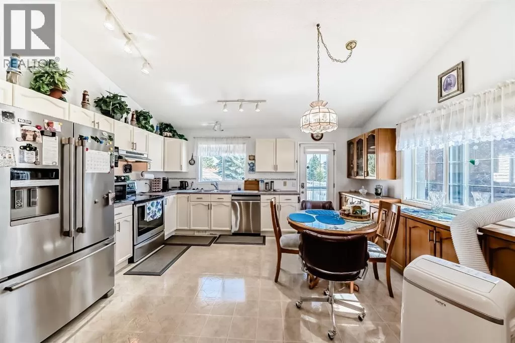 2 GARAGES AND A CORNER LOT!!! This is a rare find!! This home has been well loved. Walking up you will notice that yes it is a corner lot but the sidewalk does not go all the way around so just a normal amount to shovel!!! The front attached garage is 19.4x19.5 and the detached is oversized measuring 23x21 with a higher door at 7 feet. This bi-level has 4 very generous bedrooms. The main floor boasts large west and east facing windows. The living room has a natural gas fireplace and is welcoming to the open concept floor plan. The kitchen has loads and loads of cupboard and counter space, a dining area for a large table, and access to your back deck. There is also 3 bedrooms on the main floor. The primary bedroom has room for king furniture as well houses a 3 piece ensuite. Completing the main is a 4 piece bath and main floor Laundry!! The lower features a massive games area, family room with another beautiful fireplace and blower fan, 4th bedroom and another full bath. There is lots of storage in this home as well.This home has central vacuum, a storage shed beautiful flower beds and more. It is a must see!! (id:27476)