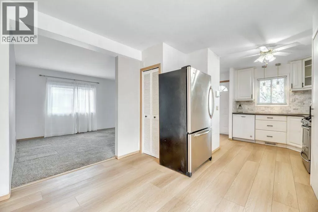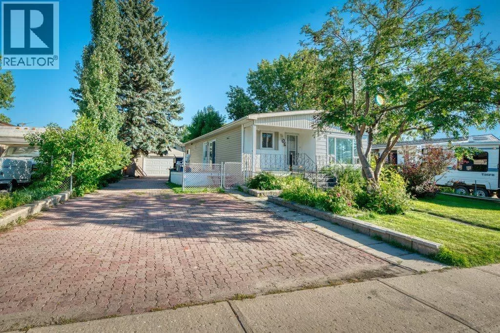 Adorable and affordable! This charming home is surrounded by lush greenery and towering trees. Ideally located just steps from Brentwood Elementary School and close to Grayâs Park & Dinosaur Sledding Hill as well as Strathmore Family Centre Arena and more. This terrific home is perfect for a first time home buyer, empty nester or investor. The inside is bright and sunny with a spacious open feel. The updated kitchen features stainless steel appliances including a gas stove and over the range microwave, popular bright white cabinetry, stylish backsplash and granite counters. The kitchen is open to the dining area with wide plank laminate flooring throughout the space. 3 bedrooms give you plenty of options for kids rooms, guest rooms or maybe a home office depending on your needs. The main bath has a good sized shower with glass door and there is also a convenient 2 pc bath for guests just off the back door where youâll also find a stacker washer and dryer. Whether you want to use it for parking or as a workshop youâll love the luxury of the detached heated 2 car garage which is accessed by an extended driveway providing you with plenty of parking. The nice sized yard backs onto a green space with more tall trees for shade and privacy. If youâre ready to start your home ownership journey or build your investment portfolio this great home is move in ready, Updates, Hotwater tank 2021, shingles May 2025, updated kitchen, some newer flooring, Central air 2 years old. Youâre going to love living in Strathmore. Come check it out! (id:27476)
