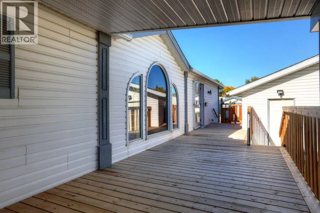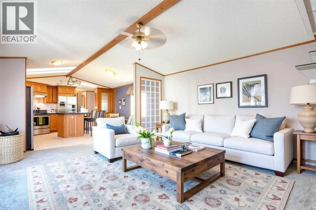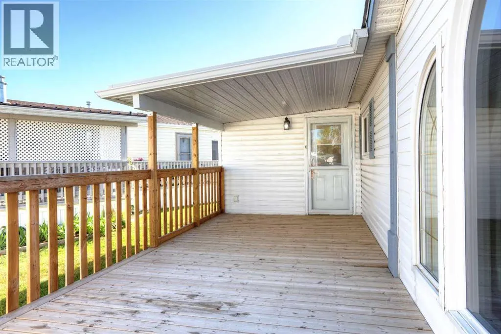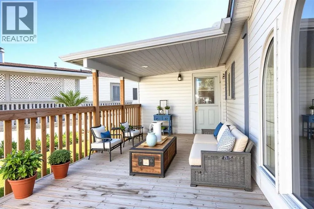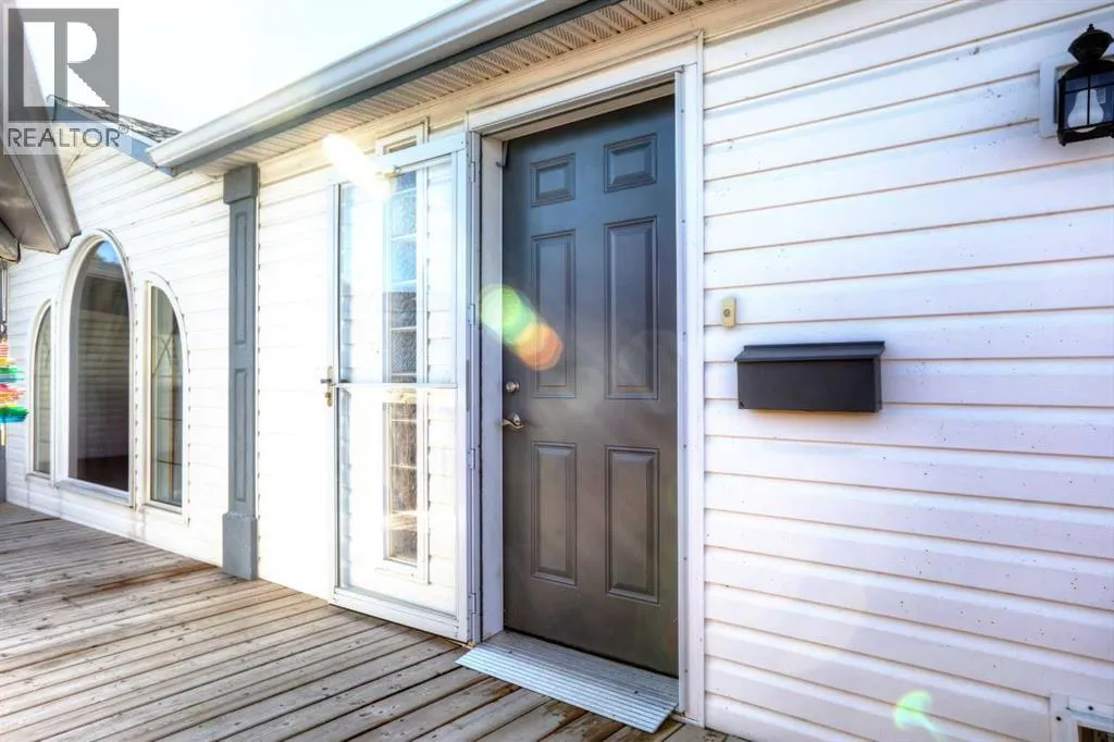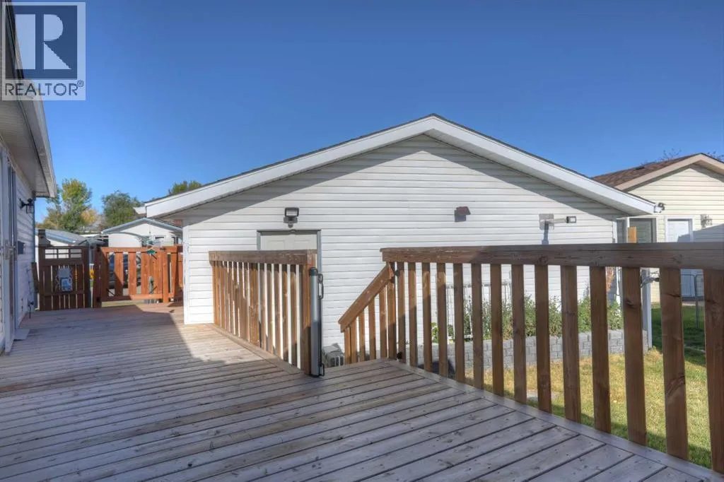 Welcome to Ranch Estates. This is Strathmore's best gated community for adult living. Situated in a peaceful park like setting away from traffic noise and busy streets; but with easy access in and out of this gated community. Great access to greenspaces with walking and cycling pathways and to all amenities like shopping, medical and dental offices. This wonderful home features Central Air Conditioning for year round comfort, a oversized and heated double car garage, a huge living room for entertaining guest, a fabulous kitchen and dining space, and three generous size bedrooms. The front porch has a wheelchair lift and front door entrance is 36" door way. There is also a laundry room and a mudroom for extra storage. The main bath features a step in shower and raised toilet seat. The exterior features a newly installed deck (2023) that spans the length of the home. This well cared home shows pride of ownership and has been meticulously maintained over the years; move-in condition. Don't miss out on this great opportunity; call for your private viewing today. (id:27476)