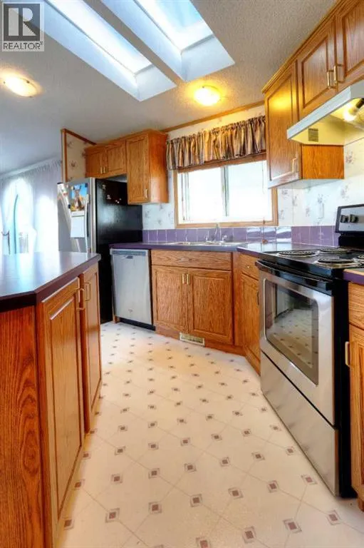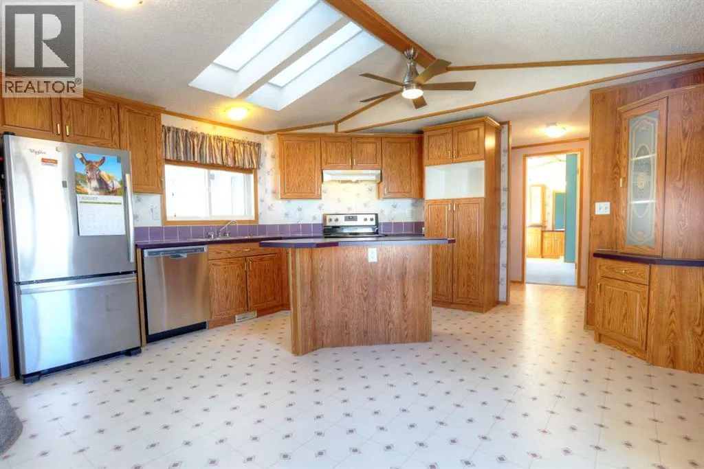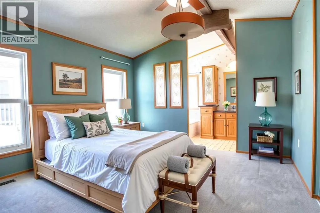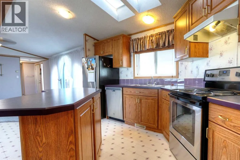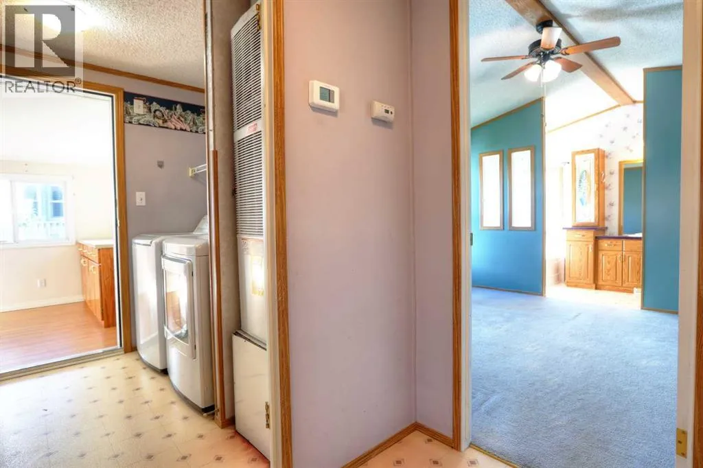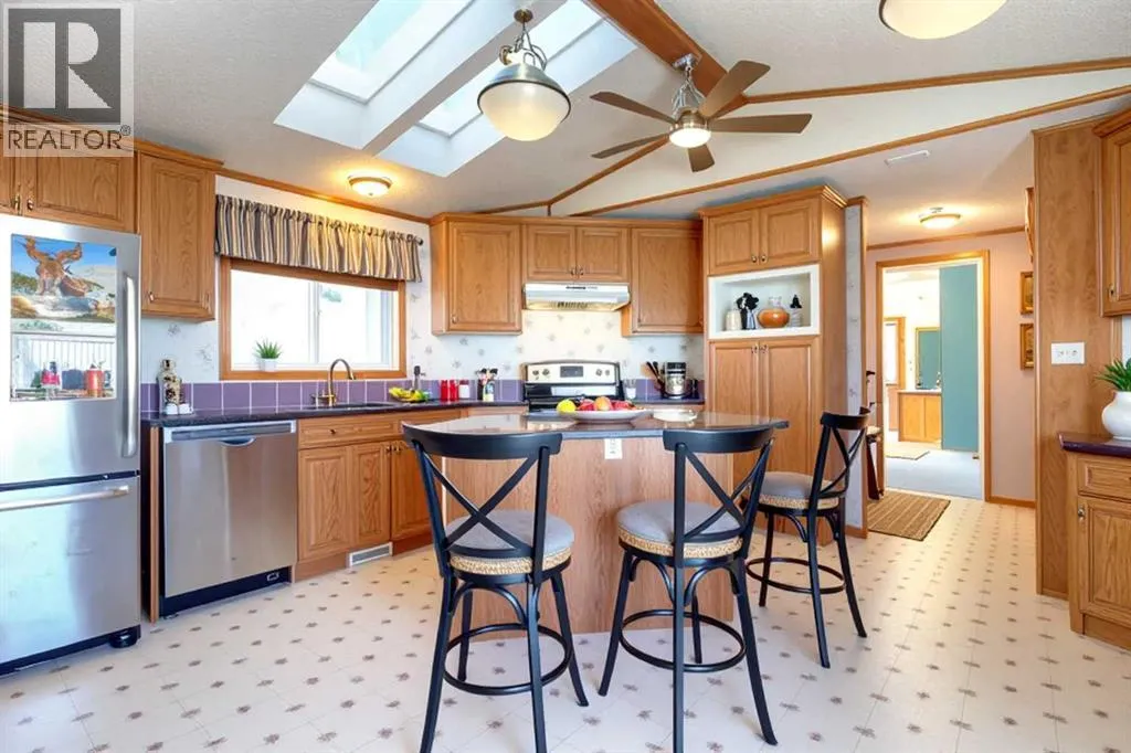 Welcome to Ranch Estates. This is Strathmore's best gated community for adult living. Situated in a peaceful park like setting away from traffic noise and busy streets; but with easy access in and out of this gated community. Great access to greenspaces with walking and cycling pathways and to all amenities like shopping, medical and dental offices. This wonderful home features Central Air Conditioning for year round comfort, a oversized and heated double car garage, a huge living room for entertaining guest, a fabulous kitchen and dining space, and three generous size bedrooms. The front porch has a wheelchair lift and front door entrance is 36" door way. There is also a laundry room and a mudroom for extra storage. The main bath features a step in shower and raised toilet seat. The exterior features a newly installed deck (2023) that spans the length of the home. This well cared home shows pride of ownership and has been meticulously maintained over the years; move-in condition. Don't miss out on this great opportunity; call for your private viewing today. (id:27476)