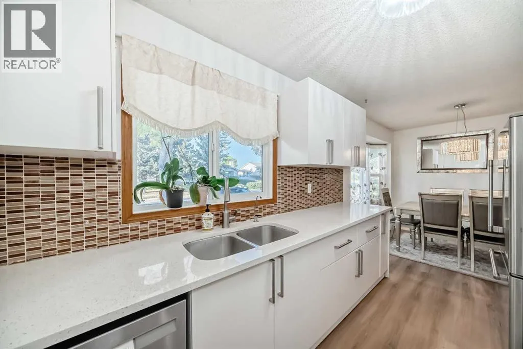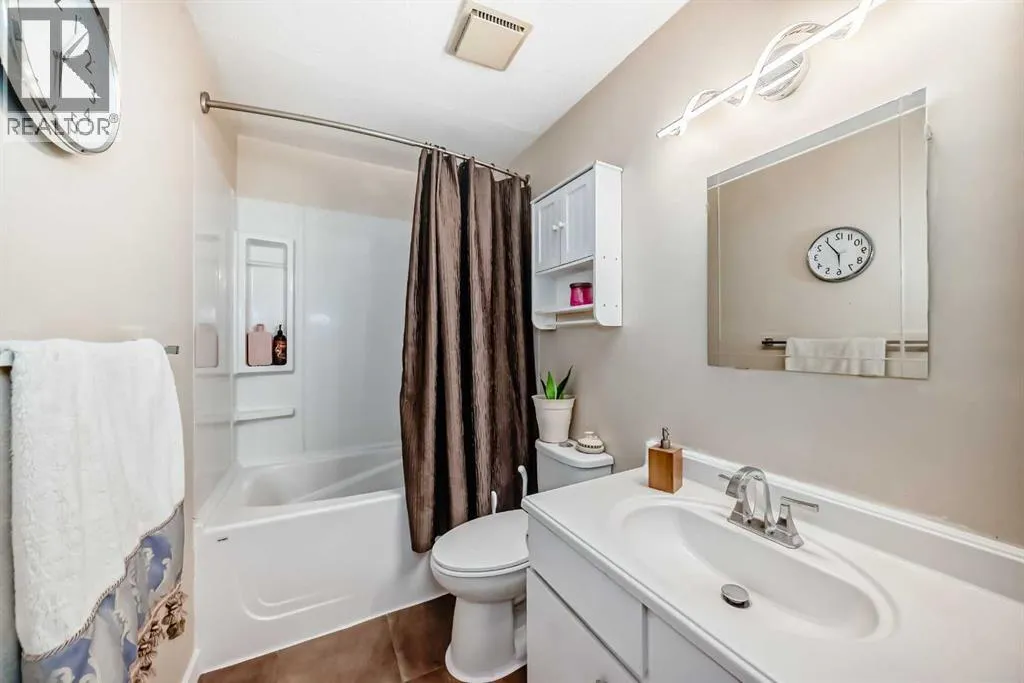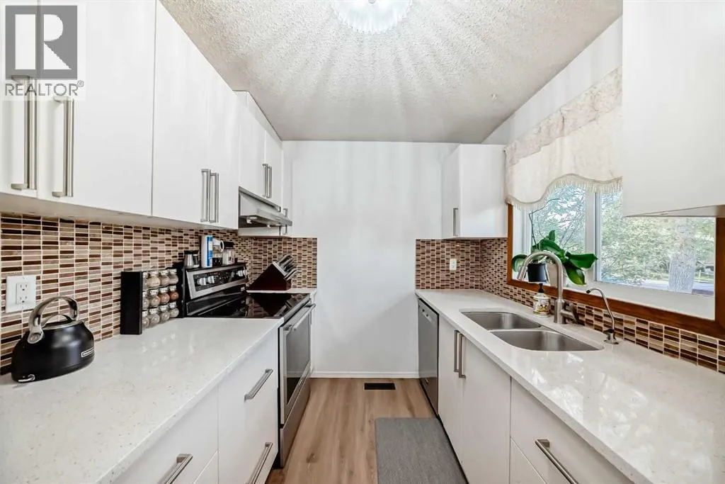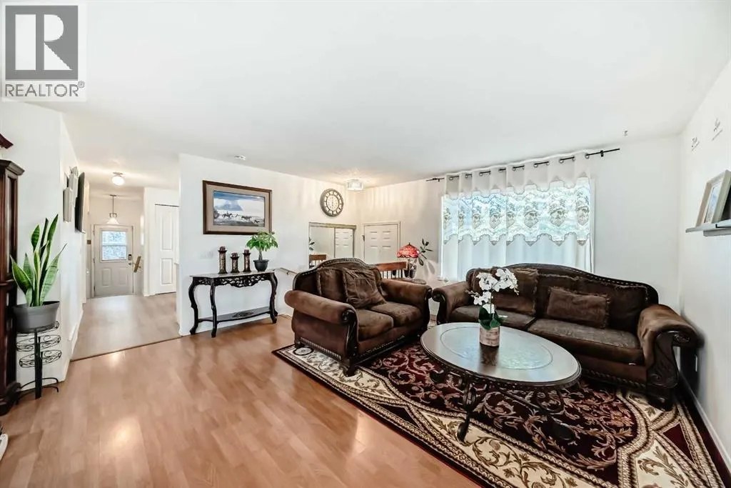 From the moment you step inside, youâll appreciate the bright and cheerful living room, featuring (new) French doors that open to the private backyard. The dining area is filled with natural light, offering space for a generous table and additional cabinets and counter space. The kitchen has been fully renovated with quartz countertops, modern white cabinetry with soft-close drawers, and stainless steel appliances. The main floor includes three spacious bedrooms. The primary retreat features a 4-piece ensuite, large closet and ceiling fan for comfort. The main floor 4-piece bathroom has been beautifully updated to include a stand up shower and large vanity. Conveniently, the washer and dryer are also located on the main level. A separate entrance leads to the finished basement, which offers a cozy family room, a versatile flex space (perfect for an office or gym) and a spacious fourth bedroom with direct access to a full 3-piece bathroom, which is also accessible from the family room. Step outside to the large backyard, complete with a charming covered deck, mature landscaping with an amazing flower garden, a firepit area, and plenty of space for kids and pets to play. With no neighbours behind, youâll enjoy privacy and quiet, plus a double parking pad off the back alley and ample street parking. Recent updates include new flooring throughout, new French doors in living room, updated bathroom, a fully renovated kitchen, a new roof (June 2025), a newer hot water tank (March 2019), and a well-maintained furnace. This home has been loved and meticulously cared forâmove-in ready and waiting for you. Ideally located close to the Strathmore Aquatic Centre, Brentwood Elementary, Strathmore High School, and numerous parks and amenities and quick access to the highways. Call your favourite realtor and book a showing today! (id:27476)