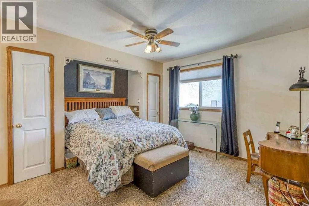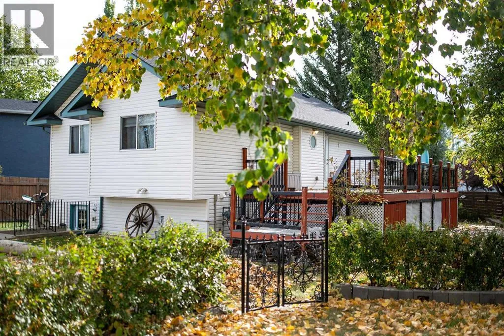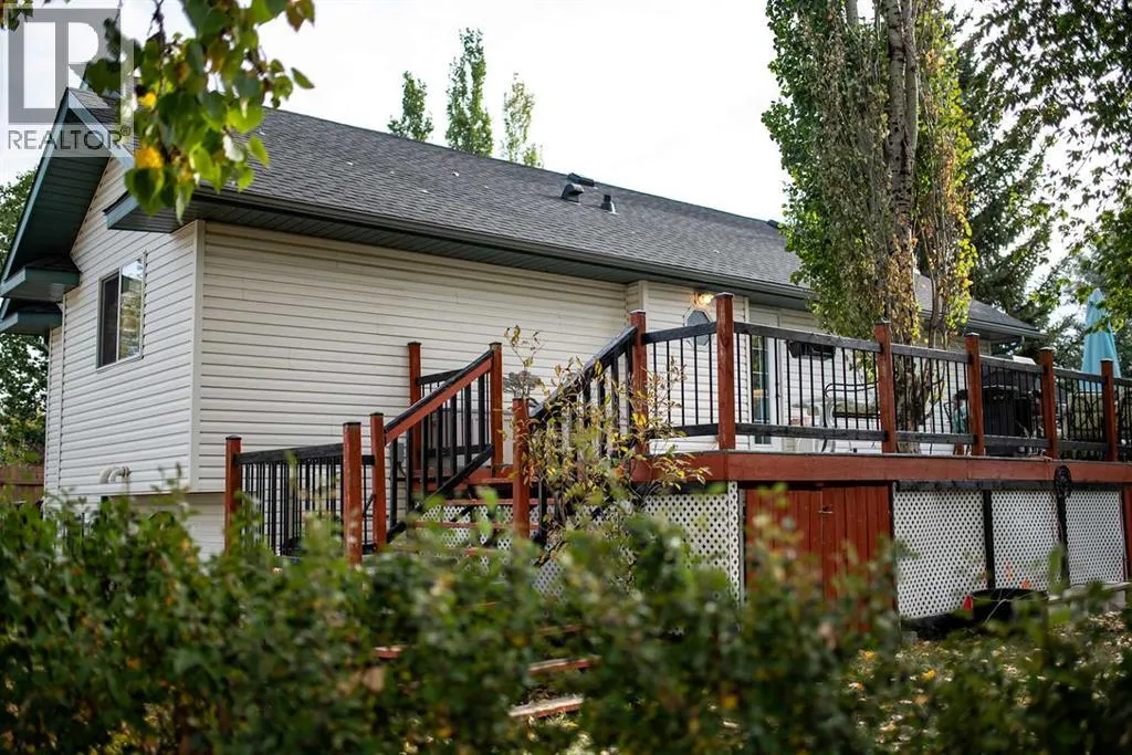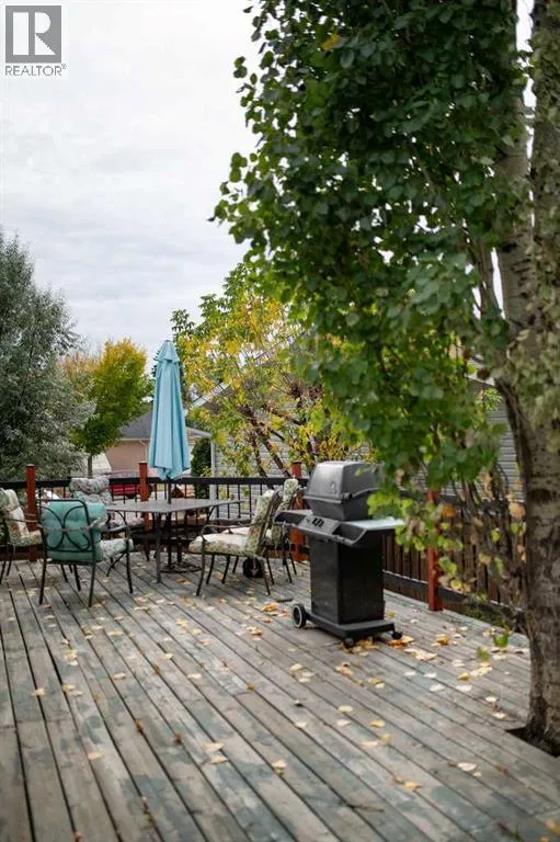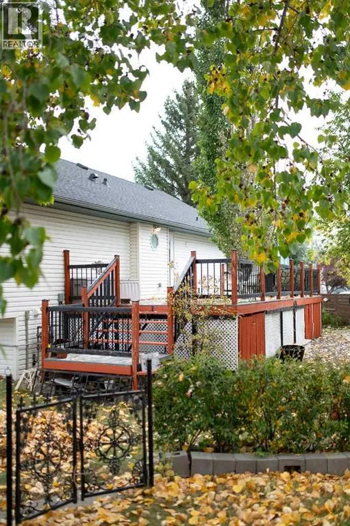 Located in a quiet cul-de-sac in Strathmoreâs desirable Greenwood Meadows, this well-maintained home offers 4 bedrooms, 2 bathrooms, vaulted ceilings, and two fireplaces. The fully developed lower level includes a separate entrance, perfect for extended family, or home based business. Enjoy the huge south/west-facing deck, perfect for outdoor entertaining, overlooking a large yard with garden space, RV parking, and room to build a second garage or workshop. The oversized, heated double detached garage adds even more functionality. Upgrades include new shingles (2024), air conditioning, and updated mechanicals. Situated close to schools, sports facilities, shopping, and dining in Strathmore. A rare find with space, privacy, and potential â donât miss out - call your AWESOME realtor today! (id:27476)