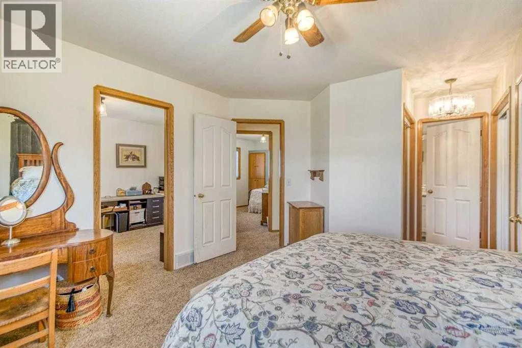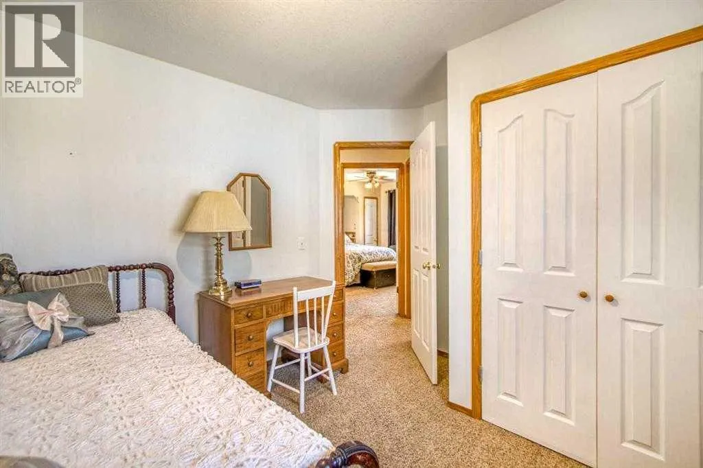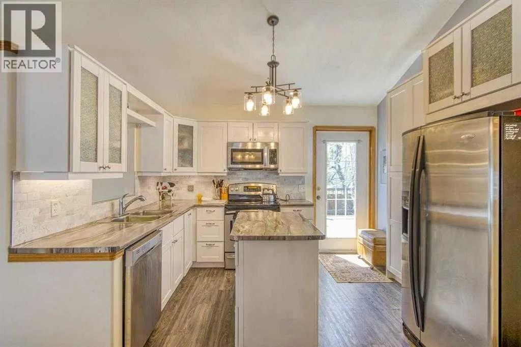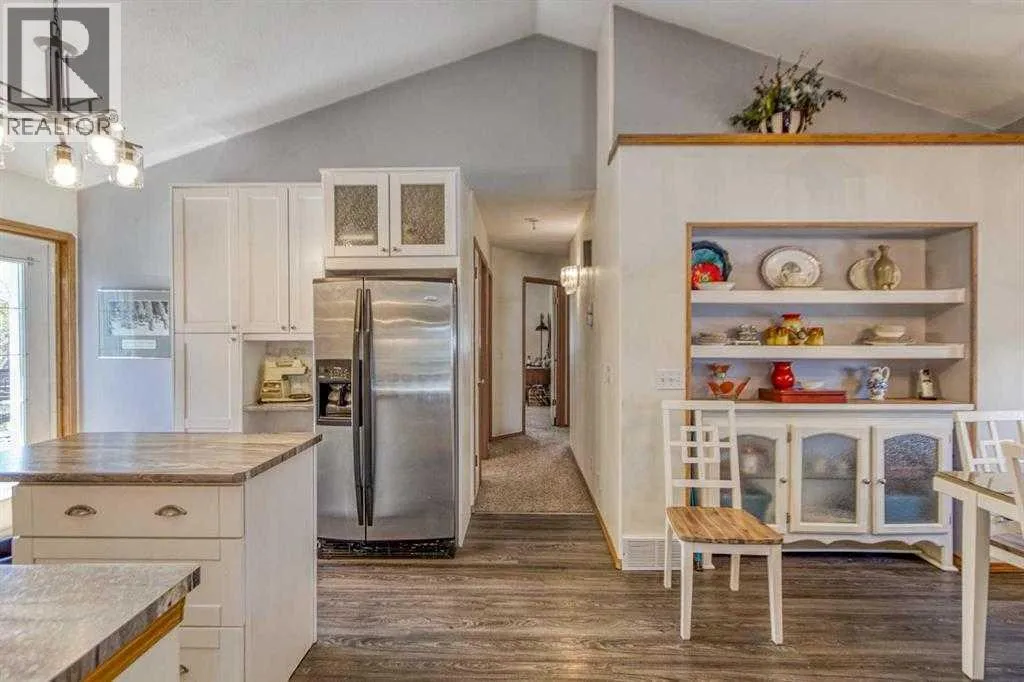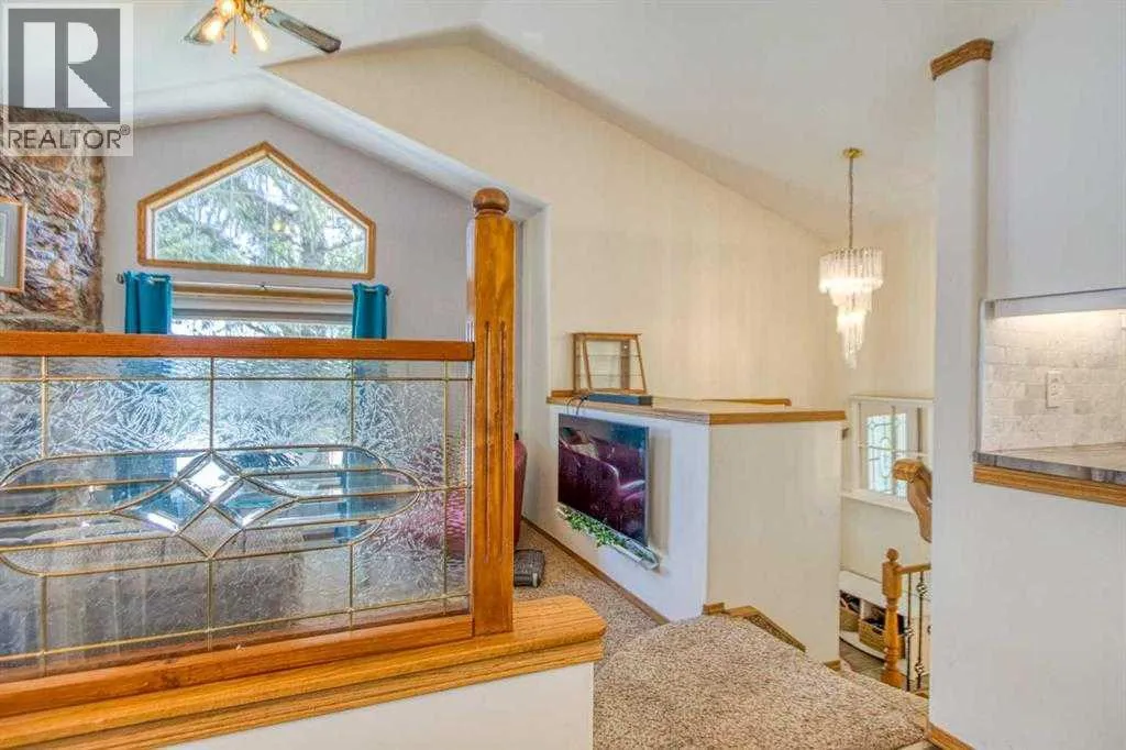 Located in a quiet cul-de-sac in Strathmoreâs desirable Greenwood Meadows, this well-maintained home offers 4 bedrooms, 2 bathrooms, vaulted ceilings, and two fireplaces. The fully developed lower level includes a separate entrance, perfect for extended family, or home based business. Enjoy the huge south/west-facing deck, perfect for outdoor entertaining, overlooking a large yard with garden space, RV parking, and room to build a second garage or workshop. The oversized, heated double detached garage adds even more functionality. Upgrades include new shingles (2024), air conditioning, and updated mechanicals. Situated close to schools, sports facilities, shopping, and dining in Strathmore. A rare find with space, privacy, and potential â donât miss out - call your AWESOME realtor today! (id:27476)