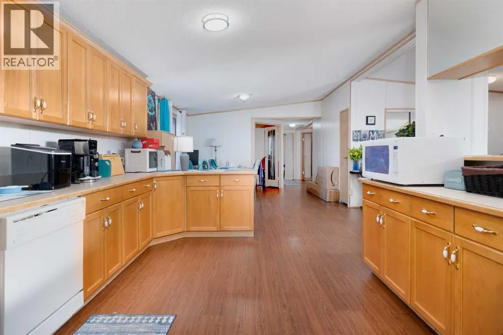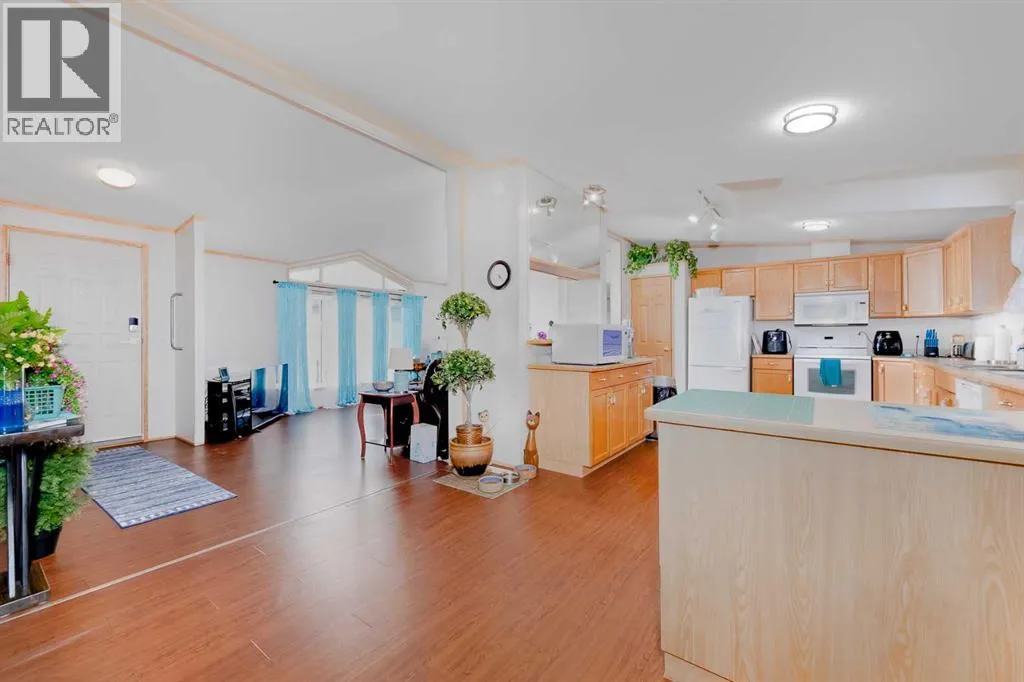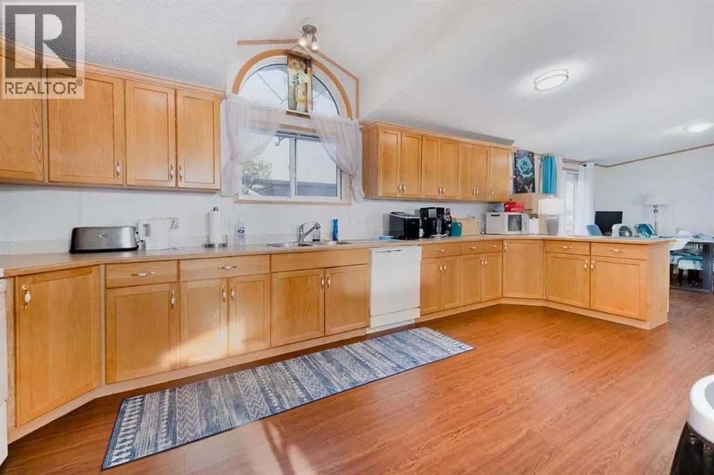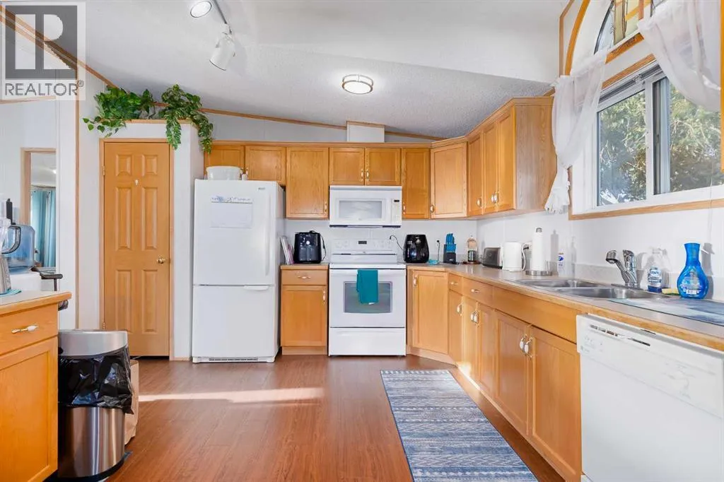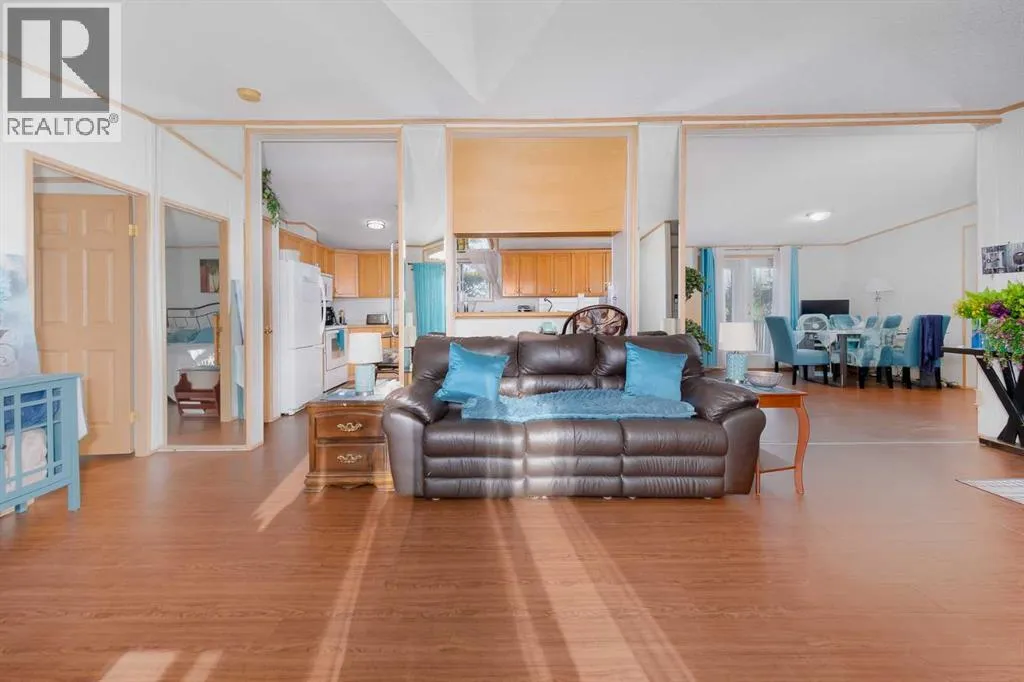 Nestled in the very desirable Ranch Estates, 55+ gated community, is 245 Ranchwood Lane. Over 1700 sqft DOUBLE WIDE home featuring 3 large bedrooms + office/den, 2 full bathrooms including the very large 6 piece en-suite w/ walk-in closet, huge rear deck and front porch, and a very large kitchen with endless counter space. This home has space â lots of it and is move in ready! This bright and sunny, well maintained home has an open concept floor plan which thoughtfully prioritizes comfort and accessibility throughout. Retreat to the rear deck backing onto green space and trees, spacious enough for a large arrangement of patio furniture and barbecue. A brand new, 5.5 x 8 ft shed is included for your convenience on the rear deck as well. Close to important amenities like grocery stores, hardware stores, restaurants, the hospital, and adjacent to Strathmoreâs canal walking path AND Strathmoreâs beautiful Kinsmen park! Donât miss this chance to own one of the largest homes situated in the coveted Ranch Estates community. (id:27476)