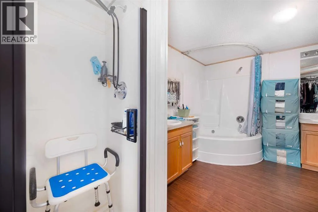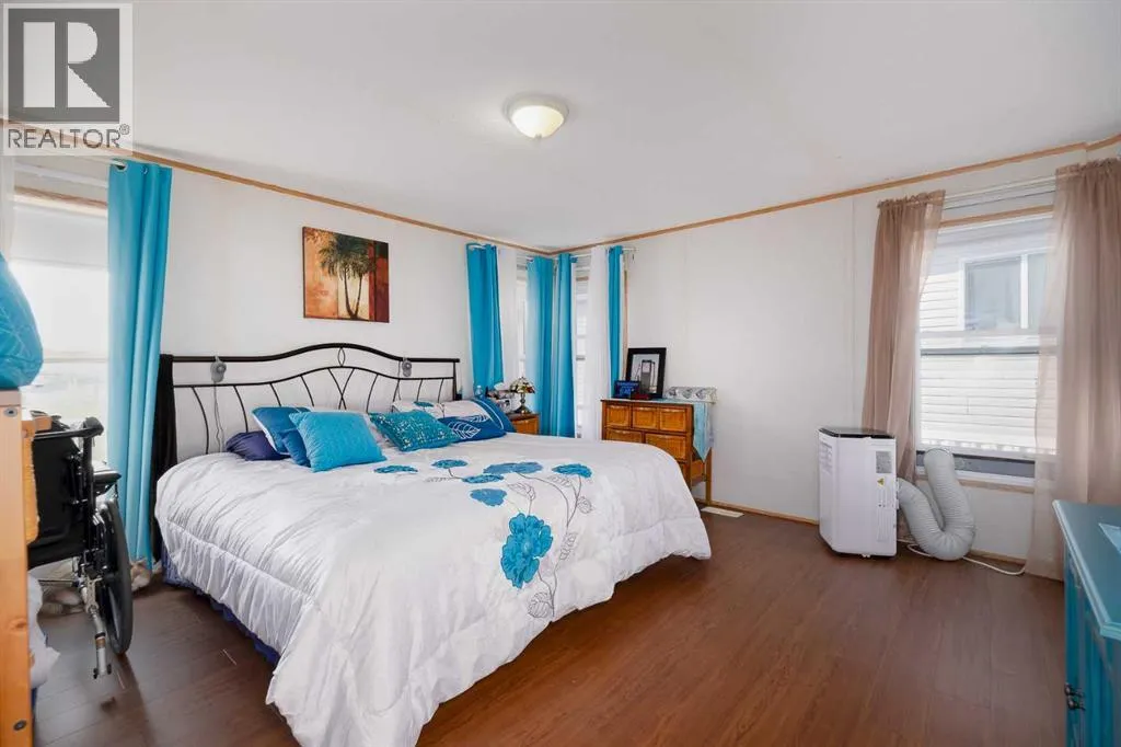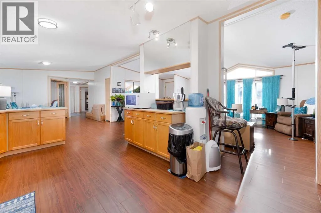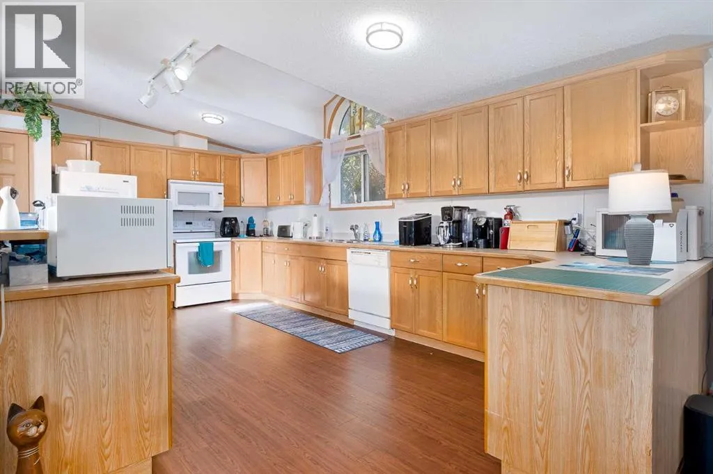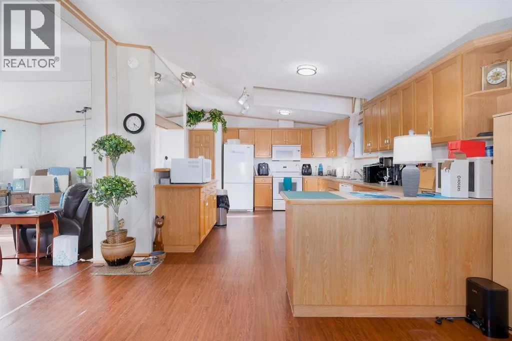 Nestled in the very desirable Ranch Estates, 55+ gated community, is 245 Ranchwood Lane. Over 1700 sqft DOUBLE WIDE home featuring 3 large bedrooms + office/den, 2 full bathrooms including the very large 6 piece en-suite w/ walk-in closet, huge rear deck and front porch, and a very large kitchen with endless counter space. This home has space â lots of it and is move in ready! This bright and sunny, well maintained home has an open concept floor plan which thoughtfully prioritizes comfort and accessibility throughout. Retreat to the rear deck backing onto green space and trees, spacious enough for a large arrangement of patio furniture and barbecue. A brand new, 5.5 x 8 ft shed is included for your convenience on the rear deck as well. Close to important amenities like grocery stores, hardware stores, restaurants, the hospital, and adjacent to Strathmoreâs canal walking path AND Strathmoreâs beautiful Kinsmen park! Donât miss this chance to own one of the largest homes situated in the coveted Ranch Estates community. (id:27476)