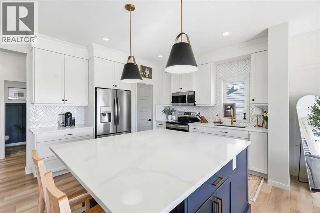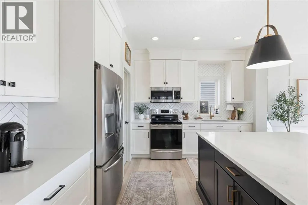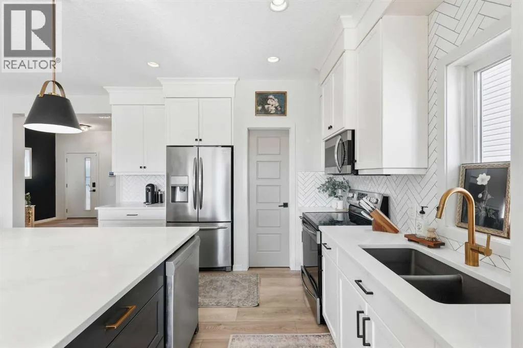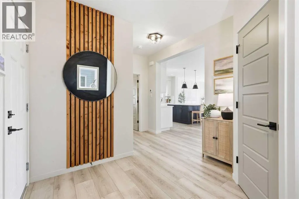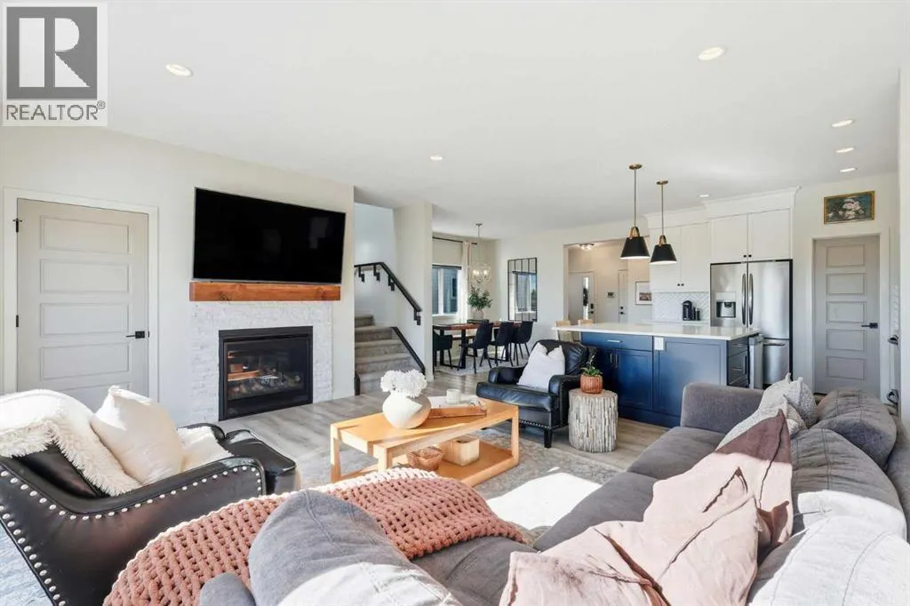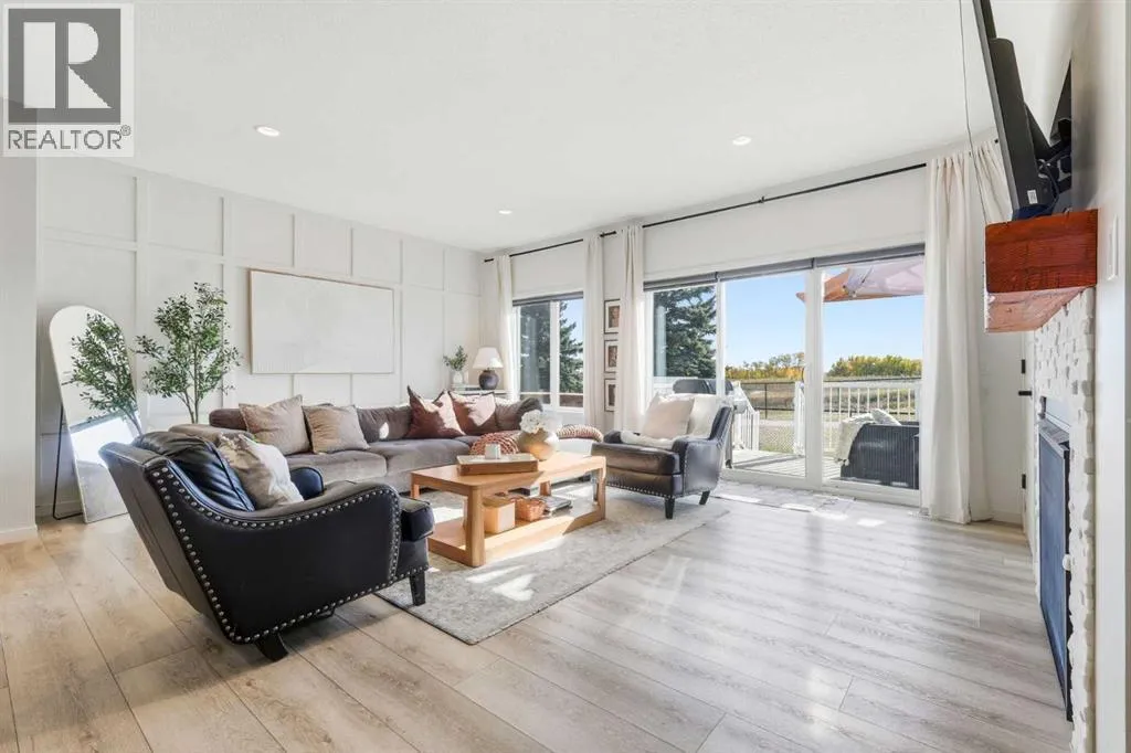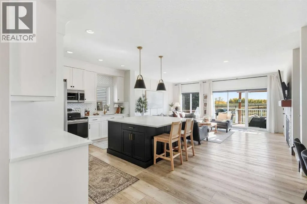 Welcome to 221 Wildrose Drive â a stunning two-story home that blends thoughtful design, timeless style, and a true sense of warmth. Built in 2019, this 2,148 sq ft home sits in one of Strathmoreâs most picturesque settings, backing onto the canal and walking path where you can listen to the peaceful sound of flowing water all summer long. Step inside to a bright and spacious entryway that connects beautifully to both the front attached garage and a large closet space. The main floor offers a functional and elegant layout â featuring a bright home office or den, a stylish half bath, and an open-concept living area filled with natural light. The kitchen is the heart of this home with its oversized square island, striking stylish lighting, walk-in pantry, and abundant storage. The dining area is framed by a large window, while the living room invites you to relax by the fireplace surrounded by windows that showcase the canal view. Upstairs, the primary retreat offers beautiful prairie and water views, a walk-in closet, and a spa-like ensuite with double vanity, soaker tub, and separate shower. A spacious bonus room, laundry with storage, two additional bedrooms, and a full bath complete the upper level. The fully developed basement continues the same elevated design â featuring a cozy family room with a shiplap-accented fireplace, a fitness area, a fourth bedroom, a full bathroom, and more storage. Step outside to enjoy a low-maintenance backyard with stunning stonework, a covered deck, and a custom pergola â the perfect spot to unwind while taking in the view of the canal and path behind. Wildrose is a welcoming, family-friendly community with access to parks, playgrounds, and pathways that connect seamlessly throughout town. Immaculate, light-filled, and move-in ready â this home truly shows like a show home and offers the perfect balance of style, comfort, and connection. (id:27476)