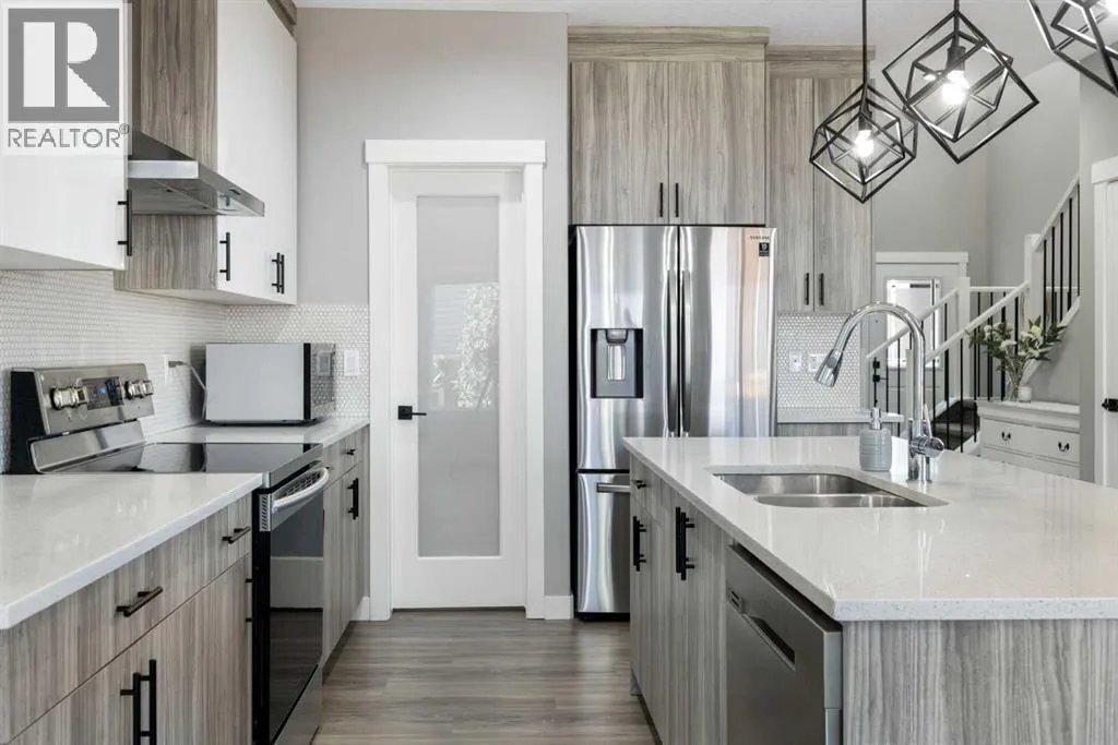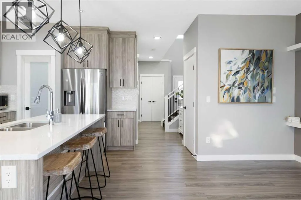 Experience elevated living in this stunning, well maintained former show home by Sunview Custom Homes. Located just steps from George Freeman K-9 School, this home combines modern design, exceptional craftsmanship, and everyday functionality. From the moment you enter, youâre welcomed by high ceilings, bright natural light, and modern high end finishes that set the tone for the entire home. The open-concept main floor features a chef-inspired kitchen with two-toned European cabinetry, white quartz countertops, high-end stainless steel appliances, and a large central island thatâs perfect for entertaining or family gatherings. The adjoining living and dining spaces are accented by a cozy gas fireplace, 9â ceilings, and oversized windows with premium coverings. Step outside to enjoy the back deck, ideal for year-round BBQs and relaxing evenings. A walk-through pantry, powder room, also with quartz countertops, and luxury vinyl plank flooring complete the stylish and functional main level. Upstairs offers three spacious bedrooms, including a primary suite with a walk-in closet, 5-piece ensuite with jetted tub. A bright bonus room adds the perfect space for family movie nights or quiet reading, while upstairs laundry keeps things convenient. The basement is ready for your ideas - already framed for two additional bedrooms or office space and featuring 9â ceilings and a separate entrance, offering potential for future development (secondary suite subject to municipal approval and permitting). This home blends luxury, comfort, and practicality - truly the perfect place for you to LOVE WHERE YOU LIVE! Please note: Pre-sale home inspection done, report available on request. (id:27476)