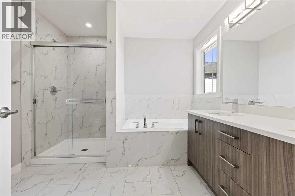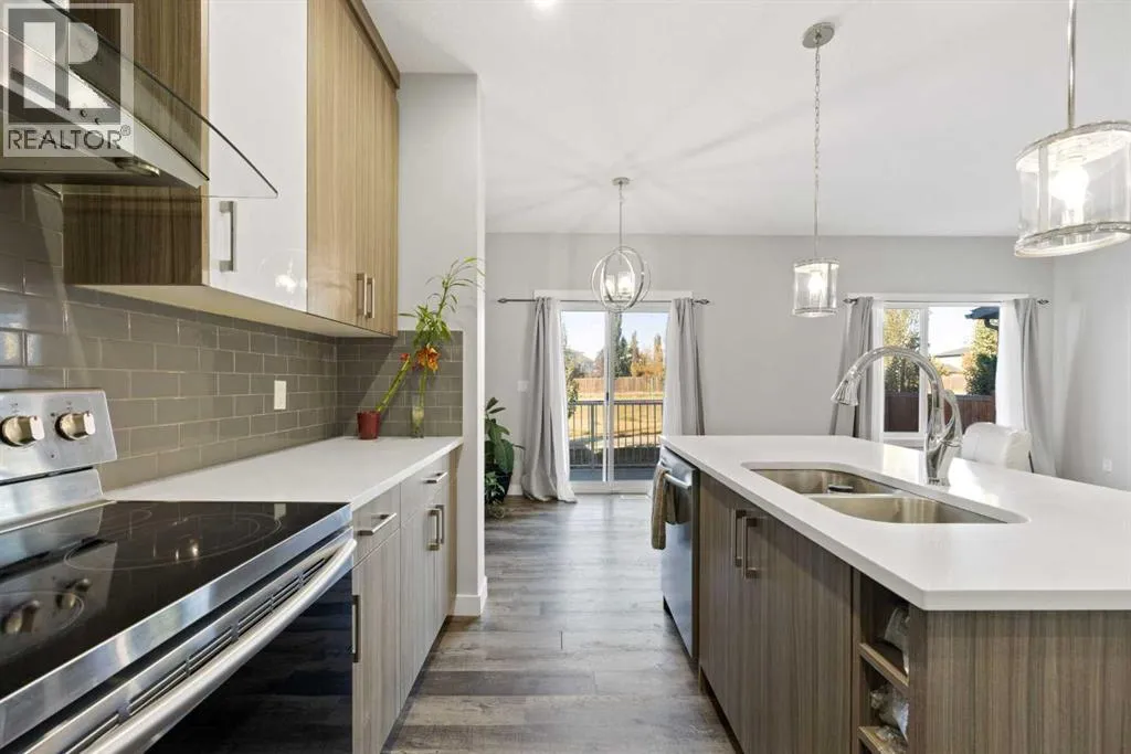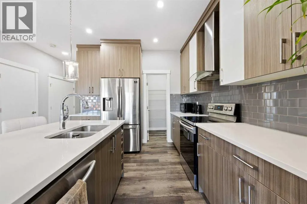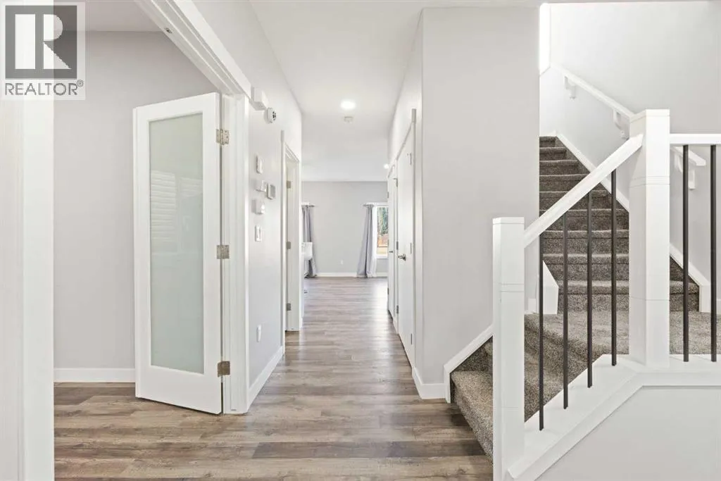 Welcome to this beautifully maintained 2020-built home in the family-friendly community of Edgefield, just steps away from George Freeman School (Kâ9) and a short walk to shopping, parks, and everyday conveniences.Step into a functional main floor office which is perfect for work-from-home or study, then move into the open living area with a cozy gas fireplace and kitchen with ample pantry storage. Upstairs, a central bonus room complements three bedrooms, including a master retreat featuring a spacious walk-in closet and spa-inspired ensuite with jetted tub, separate shower, and dual vanities. An upstairs laundry adds everyday convenience.The unfinished lower level is a clean slate. 9' ceilings, three egress windows, bathroom rough-in, and a side entrance. This setup offers a prime canvas for a future legal suite (subject to municipal permit approval) or additional development.Additional highlights: high-efficiency furnace, HRV system, LED lighting, and brand-new roof and gutters (2024). The double attached garage is fully insulated and includes a man door to the backyard. Outside, enjoy a fully insulated double attached garage with a man door to the backyard, and since the only attached portion between the sides of the duplex is the garage, youâll appreciate the privacy and quiet of this semi-detached design. Major updates like a new roof and gutters (2024) give added peace of mind.Located in one of Strathmoreâs most sought-after areas, this home offers unbeatable convenience: close to schools, parks, walking paths, and the Ranch Market Shopping Centre. Whether youâre a first-time buyer, growing family, or investor seeking suite potential, this property delivers modern style, efficiency, and value in a location that truly has it all.Donât miss your chance to own in Edgefield! Homes like this are rarely available and sell quickly. Schedule your showing today! (id:27476)