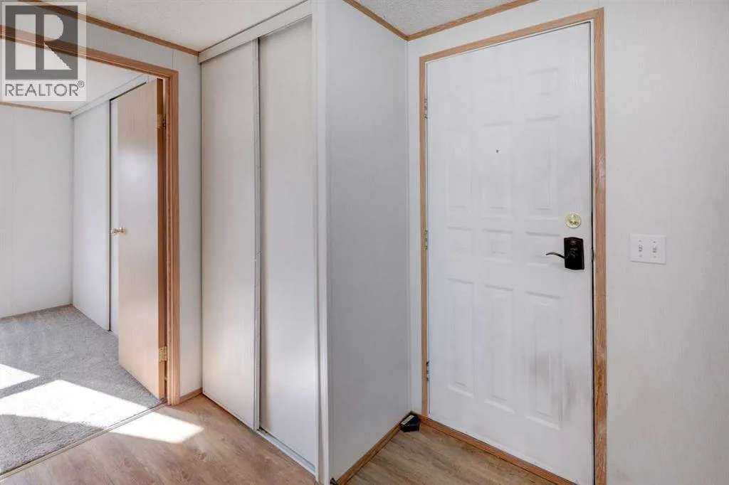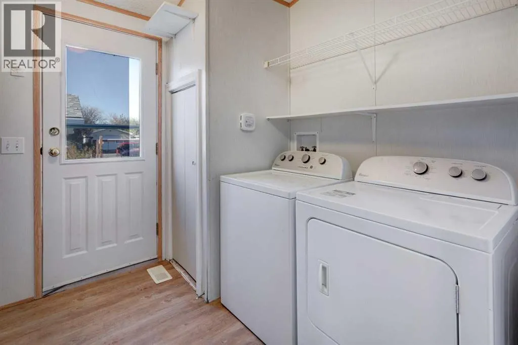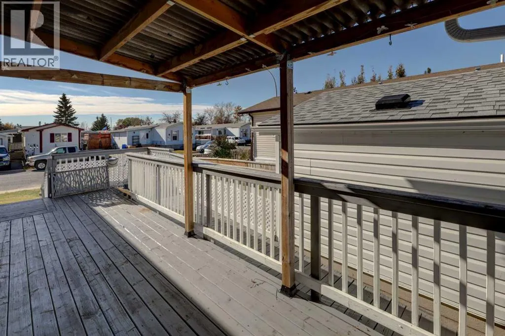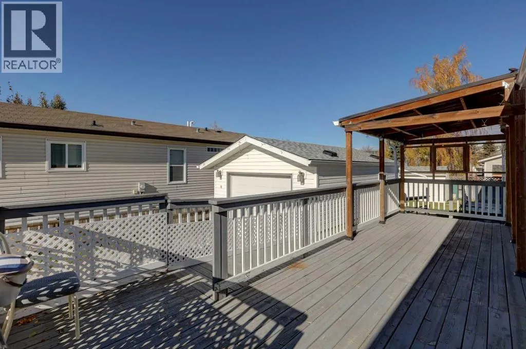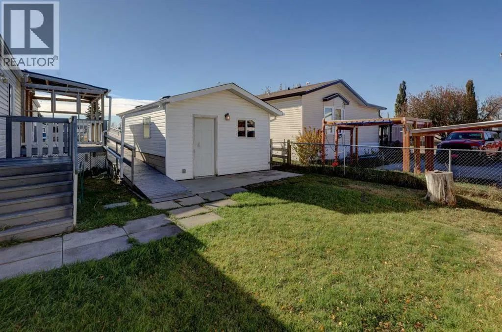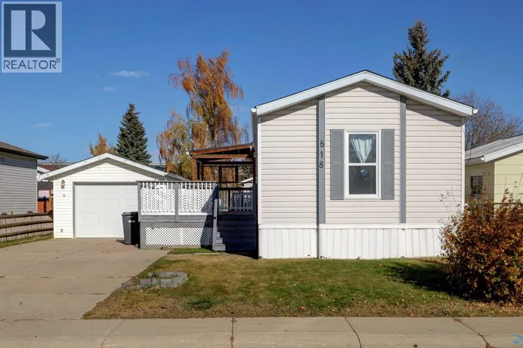 We will be holding an OPEN HOUSE Sunday 16 November from 12-2 pm. What a fantastic opportunity to own your own home on your own TITLED LOT with a detached garage! NO condo fees and NO lot fees! Situated on 43x100 FT lot within walking distance to schools and recreation facilities, this 3 bedroom 2 bathroom home is waiting for you! There is 1178 sf of living space in this 2000 Moduline featuring an open concept floorplan. The kitchen has upgraded granite countertops and all appliances are included, even the washer and dryer. The home has beautiful large windows facing West keeping your space bright with all the natural light. In summers you have the luxury of central air to keep you cool! The property has been fitted for a wood stove if you prefer using it as a means of heat in the winter months. The primary bedroom is large enough to accommodate a king bedroom suite and there is a full en suite with a soaker tub. Adjacent to the second and third bedrooms is a full guest bathroom also with granite adorning the vanity. If you prefer spending more of your time outdoors, perhaps the covered deck has caught your eye. The yard has inground sprinklers and room for a garden or space to throw around the ball (Baseball fever right now). The detached garage can be used for parking or a shop for hobbies, as there is additional room on the paved parking pad for 2 vehicles. This home is available for a quick possession. I have included the floorplan in the photos for your convenience. NOTE: The shingles on home and garage new as in 2025. Call your Realtor® to book a showing for this property and move in before its officially winter! (id:27476)
