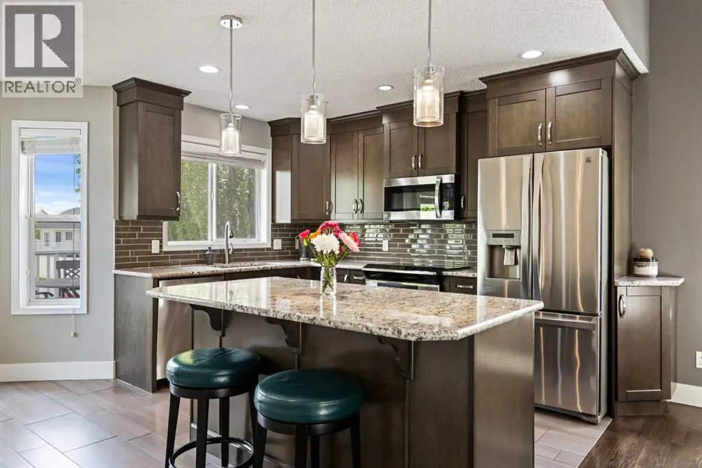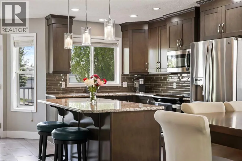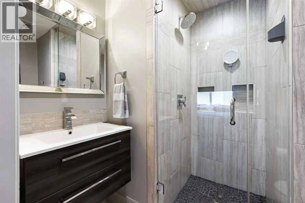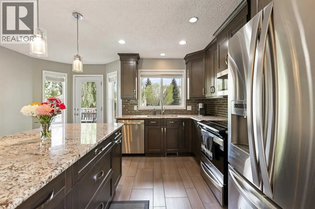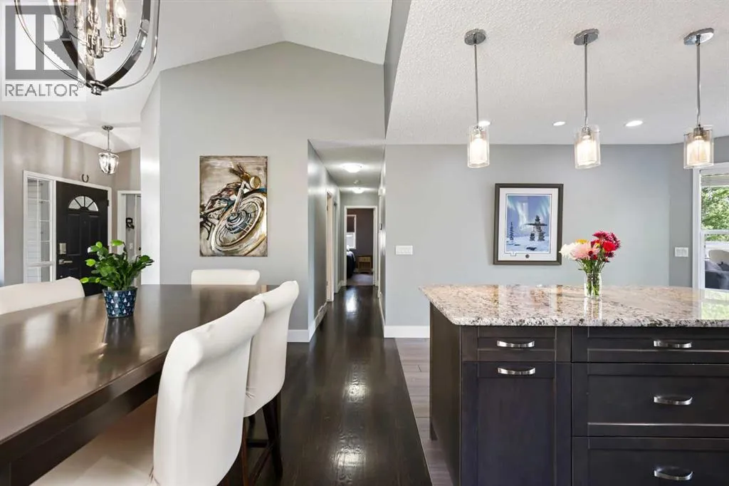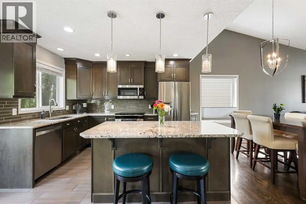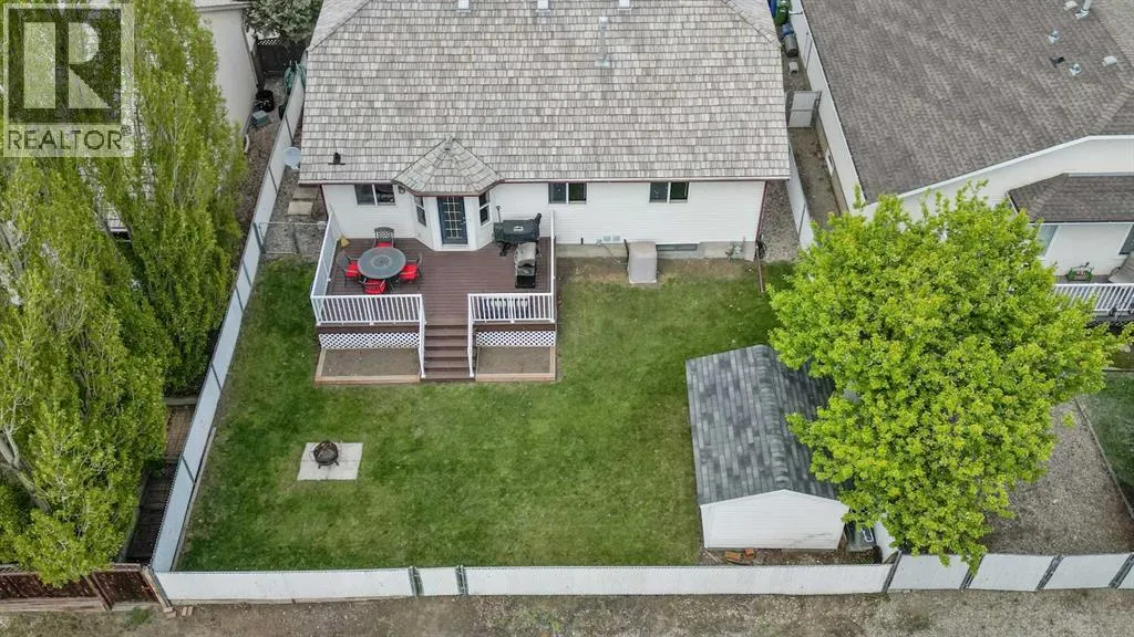 Welcome to the sought-after community of Strathmore Lakes. This immaculately kept bungalow is tucked away on a quiet street and offers just over 2,500 sq ft of developed living space. With 5 bedrooms and 3 bathrooms, itâs the perfect home for families or retirees seeking comfort and space. The open-concept layout features a bright, updated kitchen with modern finishes and direct access to a composite deckâideal for summer BBQs and outdoor entertaining. The main floor also includes a spacious living and dining area. The primary suite offers a large walk-in closet and a private 3-piece ensuite, providing a quiet retreat. Two additional bedrooms and a renovated 4-piece bathroom complete the main level. Downstairs, youâll find a generous family room, two more bedrooms, another 4-piece bathroom, and plenty of storage throughout. The south-facing backyard is beautiful and fully landscaped, featuring low-maintenance composite decking, a powered shed, and direct access to a back laneâoffering both privacy and convenience. Central A/C keeps the home cool during warm summer days. The double garage has been freshly painted and includes built-in storage. Meticulously maintained and clearly cared for, this home shows true pride of ownership. Located close to parks and within walking distance to two elementary schools, it offers comfort, convenience, and lasting value. This home has everything you need to enjoy the best of small-town living with all the amenities. Take the next step toward making this beautiful home yoursâschedule a viewing today! (id:27476)