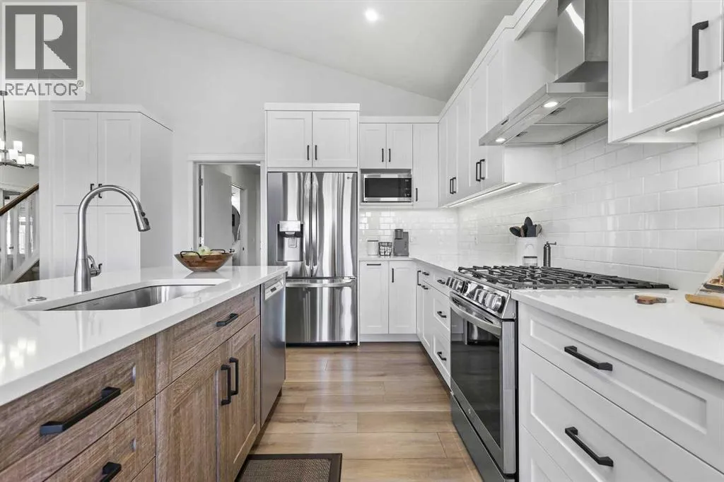 Welcome to 100 Hillcrest Boulevard, nestled in the highly sought-after neighbourhood of Hillview Estates. This exceptional home was built by Rich-Lee Custom Homes and offers a perfect blend of elegance, comfort, and functionality.Featuring a triple-car garage with an east-facing driveway and plenty of parking space, this two-storey split design combines the luxury of bungalow-style living with the privacy of an upper level that includes two additional bedrooms and a 4-piece bathroom â ideal for family or guests. The main floor is open concept, designed for both everyday living and entertaining. The kitchen was beautifully renovated in 2022, showcasing quartz countertops, a gas stove, a large island, and stunning west-facing views. A cozy gas fireplace adds warmth and ambiance to the living area, creating the perfect space to relax and unwind. The primary bedroom is a true retreat, featuring a spacious walk-in closet, a 5-piece ensuite, and gorgeous west-facing views of the surrounding landscape. The fully finished walkout basement offers incredible versatility with a bedroom, 3-piece bathroom, a den, a bar area with plumbing ready for a wet bar, a large family room, and a spacious utility room with built-in storage. Step out to your private walkout patio, already wired for a future hot tub â the perfect spot to unwind at the end of the day. The landscaped yard includes underground sprinklers and a storage shed, making outdoor living both beautiful and easy to maintain. Living in Hillview means enjoying space, privacy, and sweeping views â all in a welcoming community. Contact your agent today to schedule a private tour of this beautiful home! (id:27476)