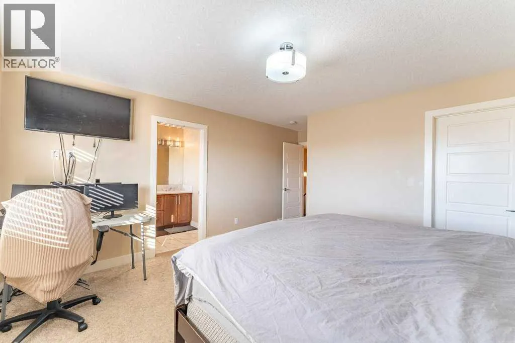 Welcome to your new home in the desirable community of Strathmore Lakes â an end unit townhome offering exceptional space, thoughtful design, and NO condo fees!Inside, youâre greeted by a bright and modern open-concept layout perfect for cooking, entertaining, and everyday living. The stylish kitchen features quartz countertops, abundant cabinetry, a walk-through pantry, and a large island that doubles as an additional eating area. The seamless design makes meal prep effortless and gatherings enjoyable.Upstairs, you'll find three generously sized bedrooms, a dedicated office/homework area, and a spacious laundry room. The primary suite is a true retreat, complete with a luxurious 5-piece spa-inspired ensuite featuring a jetted soaker tub and separate stand-up shower. The two additional bedrooms are well-appointed and thoughtfully separated by a 4-piece main bathroom.The lower level offers an additional 560 sq. ft. of unfinished space, fully roughed-in and ready for your future development ideasâwhether a rec room, home gym, or additional bedroom and bath.Outside, this home continues to impress with an expansive fully fenced backyard, ideal for kids, pets, gardening, or hosting summer get-togethers. Add in the rare double attached garage, and this property truly stands out for both convenience and value.Located in a family-friendly community close to paths, parks, and amenities, this home offers comfort, functionality, and room to grow.Donât miss your chance to make this exceptional property yoursâbook your showing today! (id:27476)