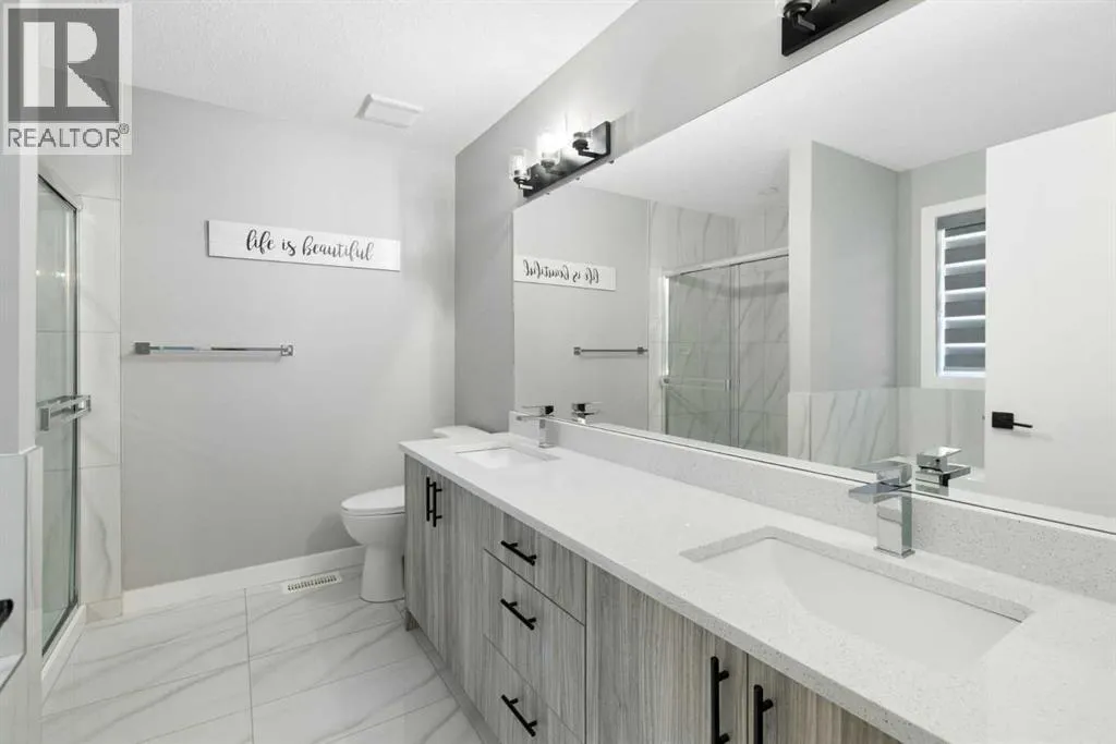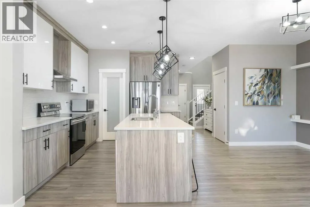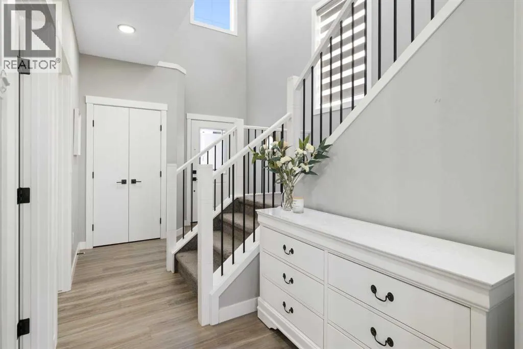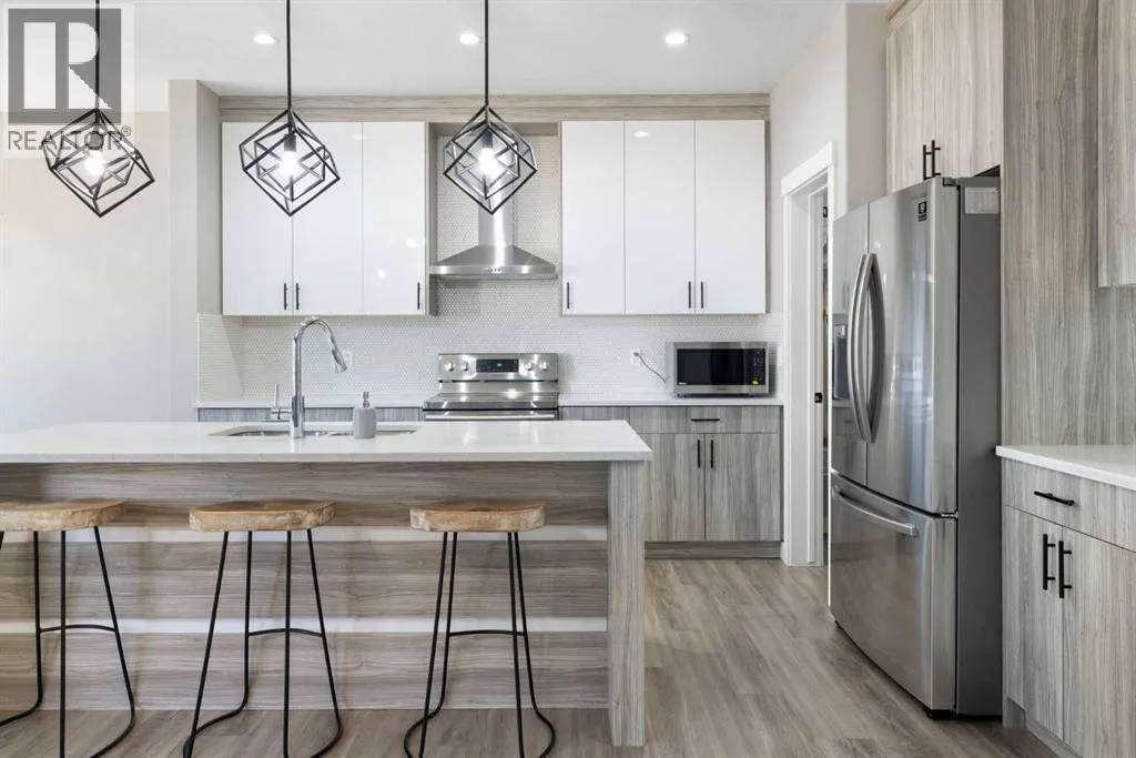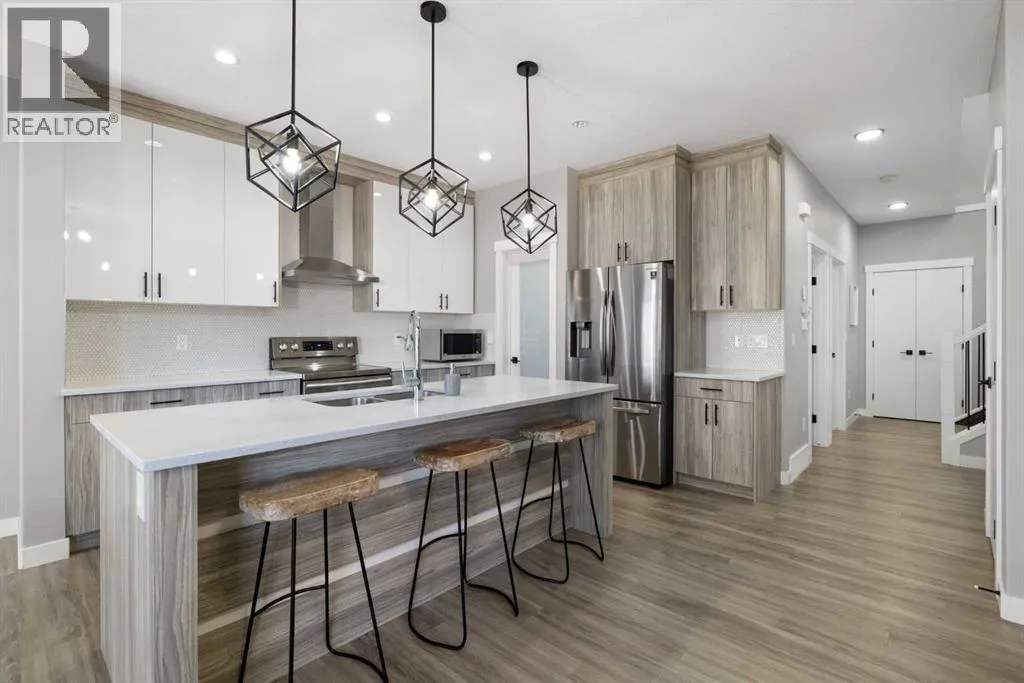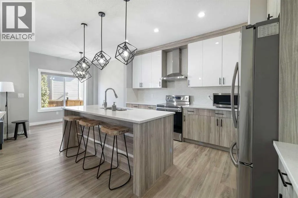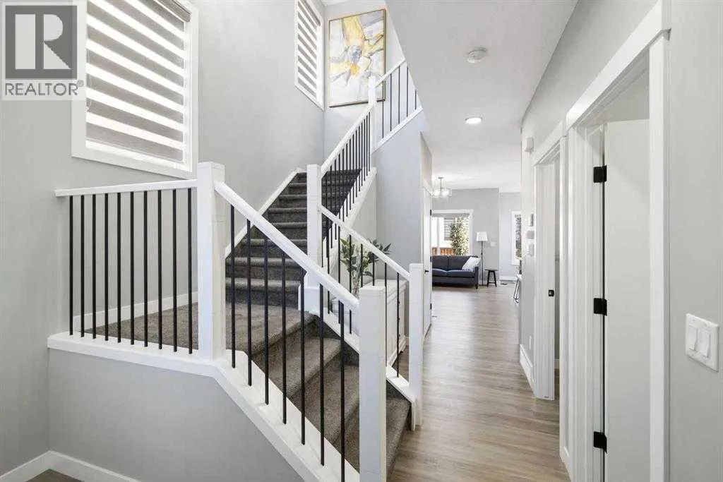 Experience elevated living in this stunning, well maintained former show home by Sunview Custom Homes. Located just steps from George Freeman K-9 School, this home combines modern design, exceptional craftsmanship, and everyday functionality. From the moment you enter, youâre welcomed by high ceilings, bright natural light, and modern high end finishes that set the tone for the entire home. The open-concept main floor features a chef-inspired kitchen with two-toned European cabinetry, white quartz countertops, high-end stainless steel appliances, and a large central island thatâs perfect for entertaining or family gatherings. The adjoining living and dining spaces are accented by a cozy gas fireplace, 9â ceilings, and oversized windows with premium coverings. Step outside to enjoy the back deck, ideal for year-round BBQs and relaxing evenings. A walk-through pantry, powder room, also with quartz countertops, and luxury vinyl plank flooring complete the stylish and functional main level. Upstairs offers three spacious bedrooms, including a primary suite with a walk-in closet, 5-piece ensuite with jetted tub. A bright bonus room adds the perfect space for family movie nights or quiet reading, while upstairs laundry keeps things convenient. The basement is ready for your ideas already framed for two additional bedrooms or office space and featuring 9â ceilings and a separate entrance, offering potential for future development (secondary suite subject to municipal approval and permitting). This home blends luxury, comfort, and practicality - truly the perfect place for you to LOVE WHERE YOU LIVE! Please note: Pre-sale home inspection done, report available on request. (id:27476)
