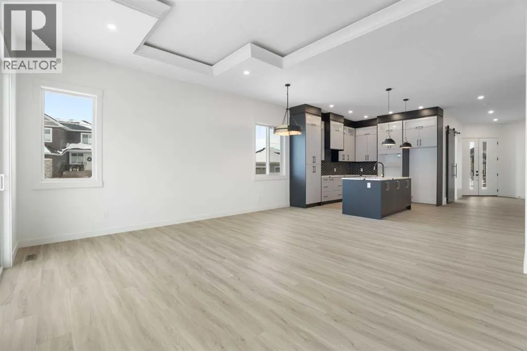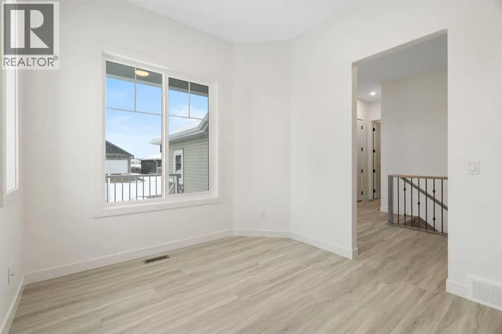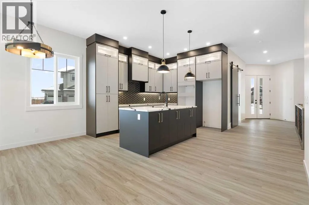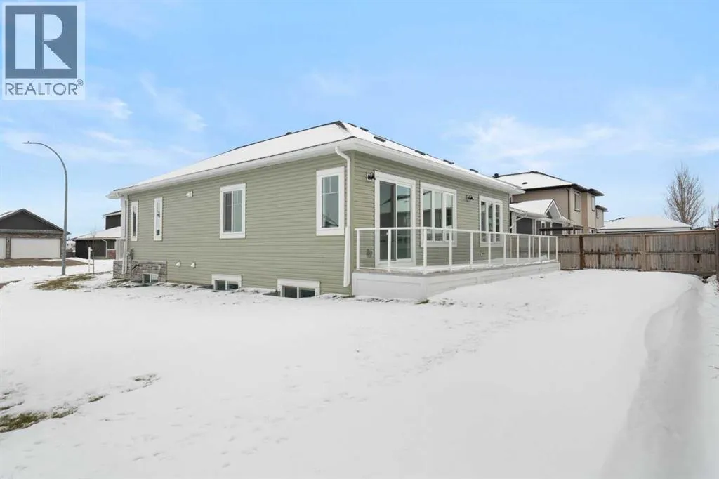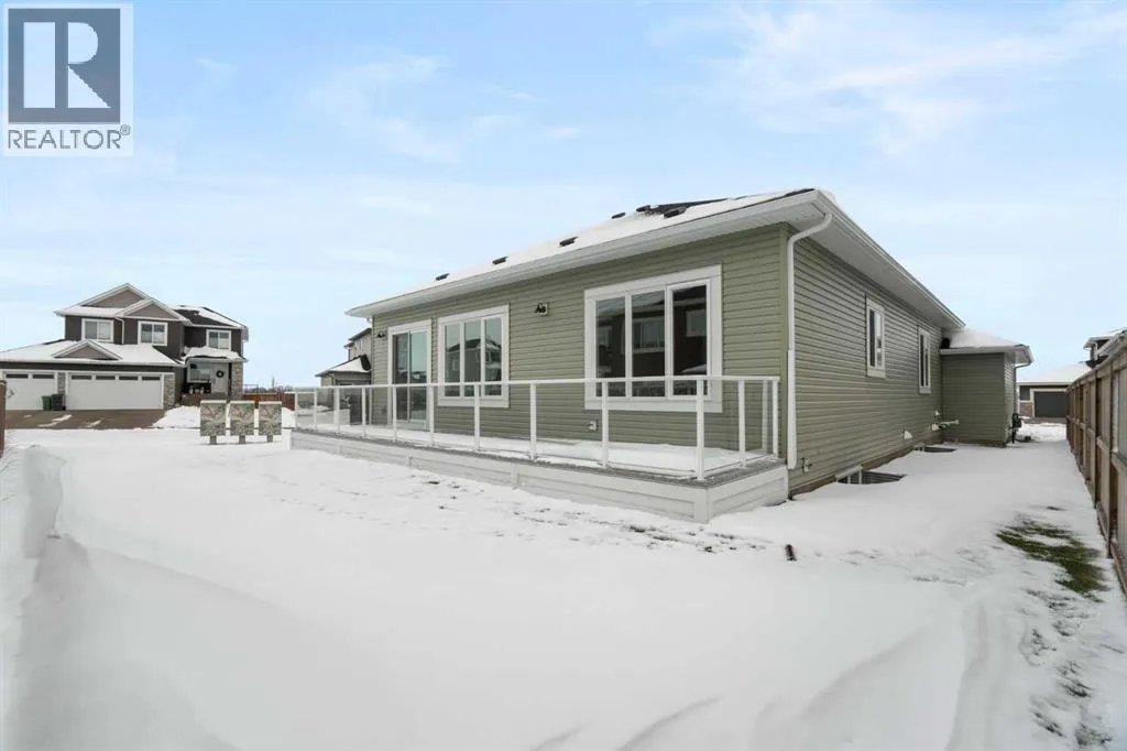 ELIGIBLE FOR FIRST HOME BUYERS GST REBATE! Experience the warmth and comfort of this delightful move-in-ready bungalow situated on a corner lot, in the friendly Lakes Estates community of Strathmore, just a quick 30-minute drive from Calgary. Spanning 3,310 Sq. Ft. of finished space, with a TRIPLE GARAGE, this brand-new home beautifully combines cozy design, thoughtful upgrades, and great value. The heart of the home is the inviting kitchen, complete with stylish gun metal stainless steel appliances, lovely quartz countertops, custom cabinetry, and a spacious island thatâs perfect for family meals and gatherings. The open-concept main floor is filled with character, showcasing high ceilings, warm luxury vinyl plank flooring, and large windows that let in an abundance of natural light. With three comfortable bedrooms and two bathrooms on the main floor, plus an additional two bedrooms and two baths in the fully finished basement, this home is perfect for hosting friends, family, or guests. The cozy basement is an entertainerâs dream, featuring a wet bar, a versatile theatre/flex room, and a dedicated space for a home gym, all designed for relaxation and enjoyment. Step outside to the welcoming west-facing backyard, where youâll find a full-width deck ideal for enjoying peaceful evenings and sunset barbecues. The tranquil pond views across the street add a touch of serenity to your outdoor space. Lakes Estates is a quiet and family-friendly neighborhood, offering plenty of green spaces and walking paths, along with easy access to Highway 1. Enjoy a smoother commute from Strathmore to Calgary, avoiding the busy city traffic. (id:27476)