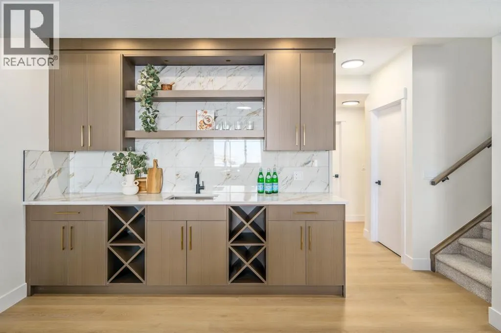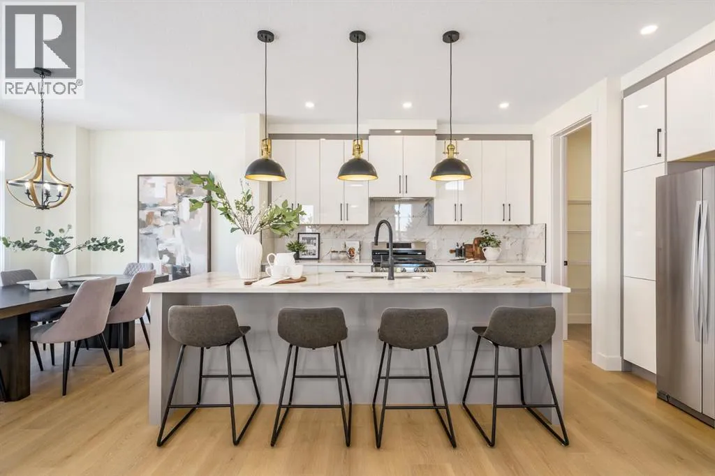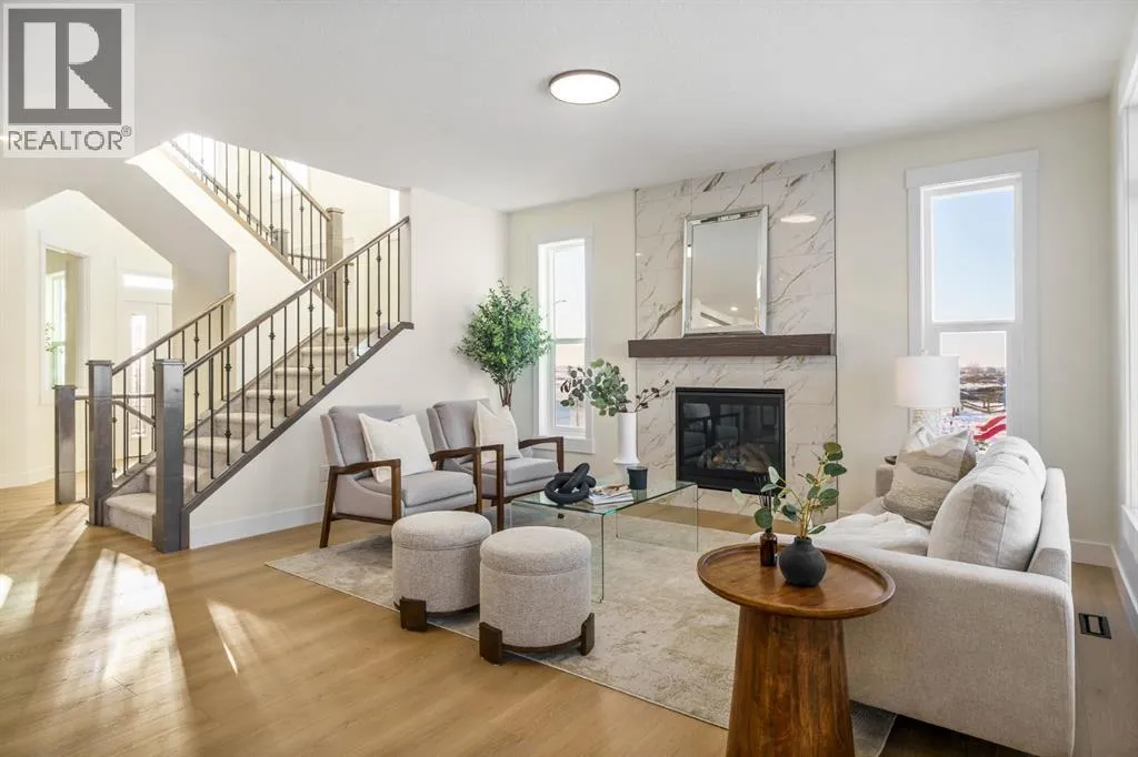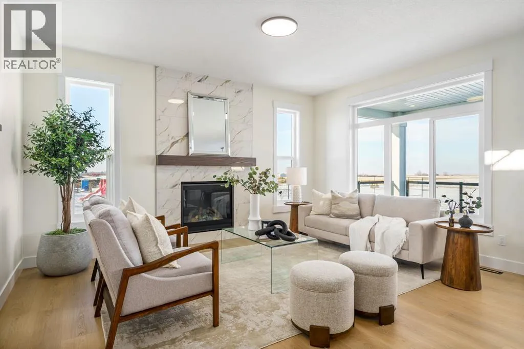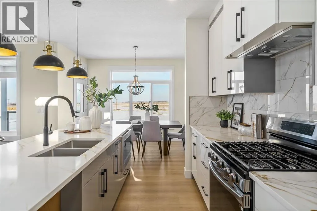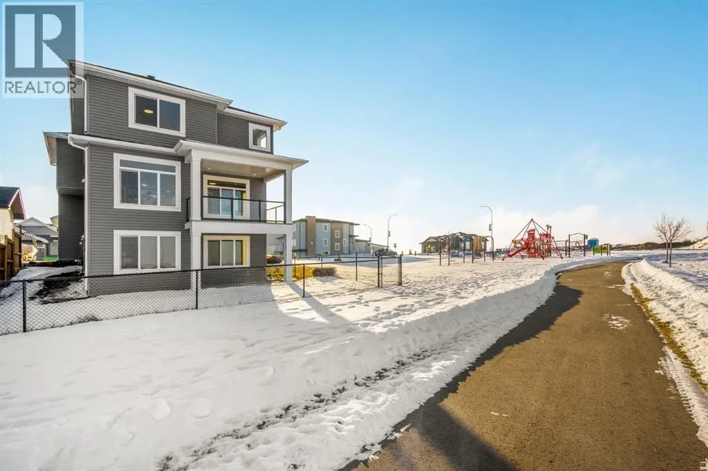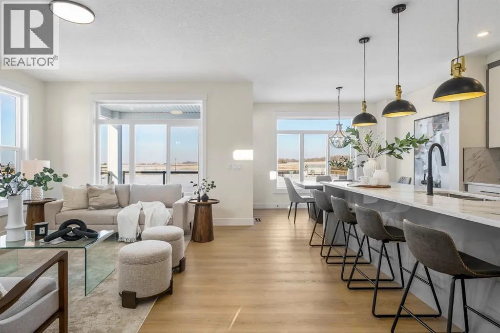 This Christmas, imagine unwrapping a brand-new custom homeâone that backs onto endless green space. Welcome to 804 Lakewood Circle â a 2025 custom-built Shayman Homes luxury residence in Strathmoreâs emerging lake community, Lakewood. This south-facing 5-bedroom, 3.5-bath home offers 2,200 sq. ft. above grade with a fully developed walkout basement, backing onto green space with unobstructed views of the future lake, pathways, and park.From the moment you arrive, the stone-accented exterior and architectural detailing set an elevated tone. Step through the custom glass-insert door into a bright vaulted foyer with an 8-ft closet and open sightlines that introduce the homeâs modern, elegant design. A main-floor office with oversized windows provides an ideal workspace.The open-concept main level features 9-ft ceilings and upgraded 9-inch luxury vinyl plank flooring. The chefâs kitchen is anchored by a 9-ft quartz island with a built-in stainless-steel microwave and dishwasher, complemented by a gas stove with hood fan, stainless-steel fridge with water hookup, undermount sink, quartz counters, and soft-close cabinetry with black hardware. Six-foot windows fill the space with natural light, highlighting the floor-to-ceiling tiled gas fireplace in the living room. The covered upper deck with glass railings and a gas line extends the living space year-round.A custom walk-through pantry with built-in shelving leads to the mudroom, complete with a built-in shoe rack, coat hooks, and full closetâperfect for busy families. Direct access to the oversized double garage, with a gas line rough-in and side entrance, makes winter days and grocery runs effortless.Upstairs, a vaulted bonus room offers a bright, inviting family retreat. The upper laundry room includes tile flooring and a quartz folding counter. The serene primary suite features large windows and a spa-inspired ensuite with a dual quartz vanity, soaking tub, fully tiled shower, separate toilet room, and walk-in cl oset. Two additional spacious bedroomsâone with a walk-inâshare a beautifully finished four-piece bathroom.The fully developed walkout basement continues the high-end feel with 9-ft ceilings, luxury vinyl plank flooring, and abundant natural light. A generous family room transitions to a 10-ft wet bar with quartz counters, tile backsplash, under-cabinet lighting, custom cabinetry, and built-in wine storageâan entertainerâs dream. Two bright bedrooms, a full four-piece bath, mechanical room, and storage complete the level. Step outside to a covered concrete patio and landscaped yard with chain-link fencing on the park side and wood privacy fencing along the neighbourâs lot.This is a rare opportunity to own a brand-new, custom lake-community home with luxury finishes, thoughtful design, and exceptional indoor-outdoor living. 804 Lakewood Circle offers the perfect blend of privacy, nature, and modern comfortâideal for families seeking long-term value in one of Strathmoreâs most exciting new neighbourhoods. (id:27476)