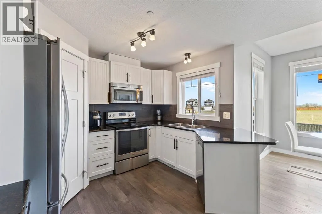 Welcome to this wonderful two-storey home located in the heart of the highly sought-after, family-friendly community of Lakewood. Designed with modern elegance and comfort in mind, this beautiful home features stylish contemporary décor and a bright, open-concept layout perfect for both daily living and entertaining.Step into the main floor and be greeted by a gleaming high ceilings. The white chefâs kitchen complete with granite countertops, ample cabinetry, and stainless steel appliances. Natural light floods the space through large windows, creating a warm and inviting atmosphere throughout the dining area and spacious living room, where a cozy gas fireplace serves as the perfect focal point.Upstairs, youâll find three generously sized bedrooms, including a luxurious ownerâs suite featuring a private 3-piece ensuite and ample closet space. The upper level provides a peaceful retreat for the whole family.The fully finished basement adds even more functional living space, offering a large recreation room ideal for movie nights, and a modern 3-piece bathroom,Outside, the private backyard is a true oasis, featuring low-maintenance landscaping and plenty of space for children and pets to play. Beautiful stonework which continues to a centre patio area of the backyard, is a focal feature of this outdoor space. Whether youâre hosting summer BBQs or enjoying quiet evenings under the stars, this outdoor area is ready for it all. (id:27476)
