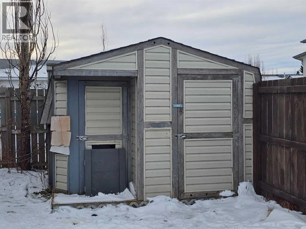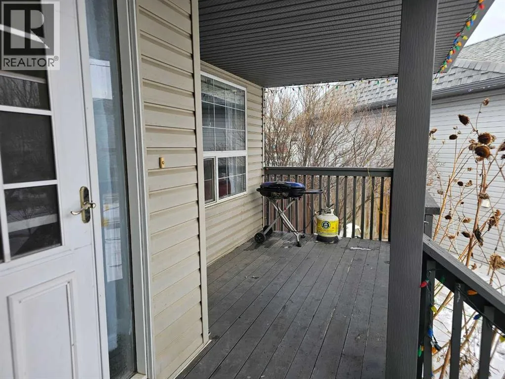 Location, Location, Location. Welcome home to the charming bungalow perfectly located on a quiet cul-de-sac in the desirable community of Strathaven in Strathmore. Close to schools, the indoor pool, hospital, arenas and other rec facilities. A covered front porch welcomes you to the home & provides a quiet spot to relax. This home combines comfort, conveince and blends unique features you won't find anywhere else. A covered front porch offers a warm welcome and a relaxing spot to unwind with neighbours or BBQ. If you love a open plan this home is meant for you. The chef in the family will love cooking in the spacious kitchen with island and ample counter & cabinet space. The living room is spacious and bright. You can step from the dining area to the large deck that overlooks the spacious pie shaped fenced backyard (5834 sq.ft.) with available alley access and a swinging gate, you'll have room for an RV or a trailer in the back yard. Yard is complete with storage shed for storing all your yard tools . The primary bedroom features a full ensuite and walk in closet and direct access to the large back deck. The 2nd main floor bedroom is spacious with closet. Down stairs there is ample space in the family room with a large rec area with electric fireplace. A full bathroom and two more good size bedrooms complete the basement. Laundry facilities are conveniently located on the main floor. Other features include new vinyl plank flooring throughout, new shingles installed in 2025,, and newer hot water tank. Furnacee recently inspected and all air ducts cleaned. Book your viewing today! The RPR on file is not in compliance as the movable shed is encroaching on the neighbours property. To be accepted as is by the buyer. (id:27476)