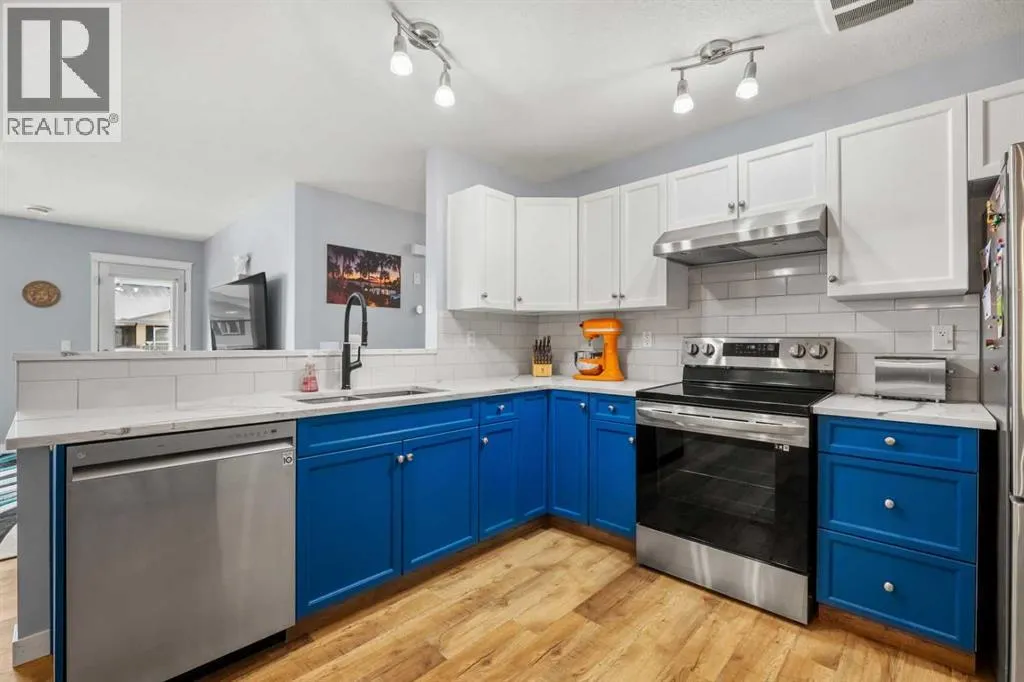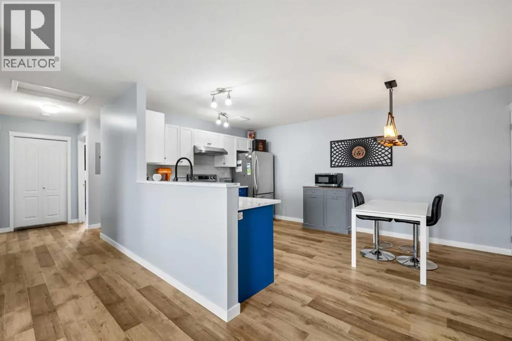 Welcome to this bright and spacious top floor 3 bedroom unit in beautiful Bayside Villas with brand new Central Air Conditioning , offered by Strathmores affordable housing program. This South facing, renovated top floor unit offers a well designed open floor plan, modern finishes and an abundance of light throughout the day. The renovated kitchen features shaker style cabinets, stainless steel appliances, a dedicated dining area, pantry storage and quartz counter tops. Enjoy relaxing in the spacious living room with direct access to your south facing balcony perfect for sunsets, entertaining and BBQ'ing. Down the hall you will find the renovated 4 piece bathroom, in suite laundry at the end of the hall and 3 spacious bedrooms including the large primary bedroom. The parking stall is right out front for your convenience with additional guest parking a few stalls away. The condo fees include Heat, water, Sewer, Garbage, Maintenance, Snow Removal, Lawn, and Professional Management. Bayside Villas puts you close to everything you need for comfortable everyday living. Enjoy easy access to scenic greenspaces like Kinsmen Park, perfect for walks, picnics, and outdoor play, and cool off in the summer at Strathmore Water Park. Families will appreciate being near great schools such as Westmount School, Strathmore High School, and Crowther Memorial Junior High School, as well as several other educational options. Everyday conveniences, local shops, dining, and community recreation facilities are just a short drive or bike ride away, all within Strathmoreâs friendly and growing small-town setting. **Buyers must be pre-approved under the Town of Strathmore Perpetual Affordable Housing (PAH) Program. (id:27476)