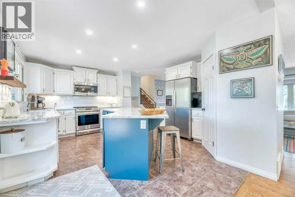 Welcome to this stunning split level home showcasing timeless brick curb appeal and a private, treed backyard thatâs beautifully landscaped for both relaxation and entertaining. Step inside and youâll find modern touches throughoutâsleek lighting, contemporary railings, and a perfect mix of hardwood and tile floors. The bright white kitchen is a chefâs dream, featuring an island with granite countertops, a gas stove, and seamless flow into the dining areaâperfect for family meals or hosting friends. At the front of the home, the living room offers a warm, welcoming space to gather.Upstairs, youâll find three spacious bedrooms, including the primary suite with a walk-in closet and a stylishly updated 3-piece ensuite. A 3-piece main bath completes this level. The third level expands your living space with a large family room, a 3-piece bath, and a convenient mudroom. The finished basement adds even more flexibility with an additional bedroom and rec room. With its combination of charm, function, and plenty of room for everyone, this home is ready to welcome its next family. This home is situated an a huge lot with front yard views of a beautiful green space and park- gorgeous sunsets and Mountain Views in the morning! The maintenance free exterior offers peace of mind to a buyer and showcases the thougtfulness put into the design of the home! If you are looking for space to raise a family, enjoy all that Strathmore has to offer Call this one your! Amazing access to schools, shopping, pathways, parks- this one is a MUST SEE! (id:27476)