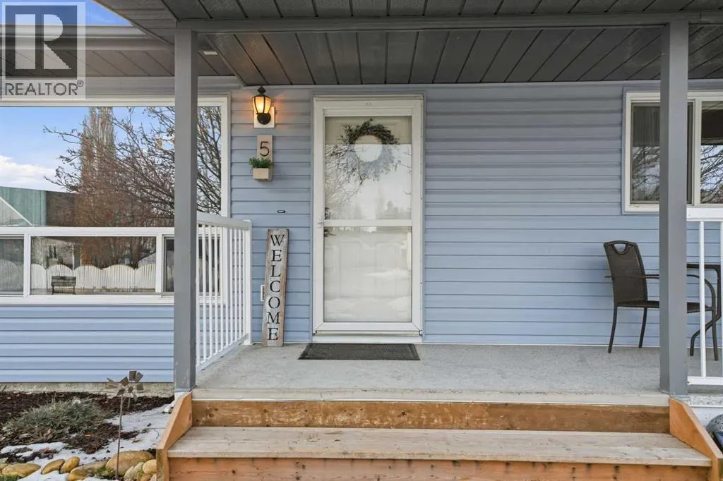 Welcome to 5 Greenview Way. A home that feels as warm and welcoming as the street it sits on. Tucked beneath mature trees on one of Strathmoreâs most charming pockets, this sweet blue bungalow greets you with a covered front porch and the kind of curb appeal that instantly feels like home. With a brand new roof and siding in 2025, the exterior not only looks fresh and inviting but also brings peace of mind for years to come. It is the kind of place where you picture morning coffee on the porch, neighbours waving as they walk by, and quiet evenings as the sun dips behind the trees. Step inside and you are welcomed by a generous entry with a built in closet and storage bench, perfect for busy mornings and everyday life. The living room is filled with natural light from a large front window, creating a bright and inviting space to relax or gather. The kitchen offers timeless oak cabinetry with updated hardware, newer appliances, and a modern faucet, blending warmth with function. At the heart of the home, the dining area sits perfectly between kitchen and backyard, making it easy to stay connected whether you are hosting, cooking, or keeping an eye on kids playing outside. The main floor features a spacious primary bedroom, two additional bedrooms, and a full bathroom complete soaker tub, and separate shower. It is a layout that works beautifully for families, guests, or anyone wanting the ease of main floor living. Downstairs, the fully developed basement offers even more space with an additional bedroom, 2 flex spaces, a full bathroom, and a tiled finish throughout. The utility room houses two hot water tanks and the laundry, keeping everything organized and efficient. Outside, the backyard is a true highlight. With mature trees, open green space, and a detached double garage backing onto the rear lane, there is room for vehicles, toys, and projects. Additional parking in the back plus street parking out front makes life here easy and flexible. Homes with this much c haracter and this much space, are hard to find in Strathmore. 5 Greenview Way is not just a house, it is a place to settle in, grow, and create the next chapter of your story. (id:27476)
