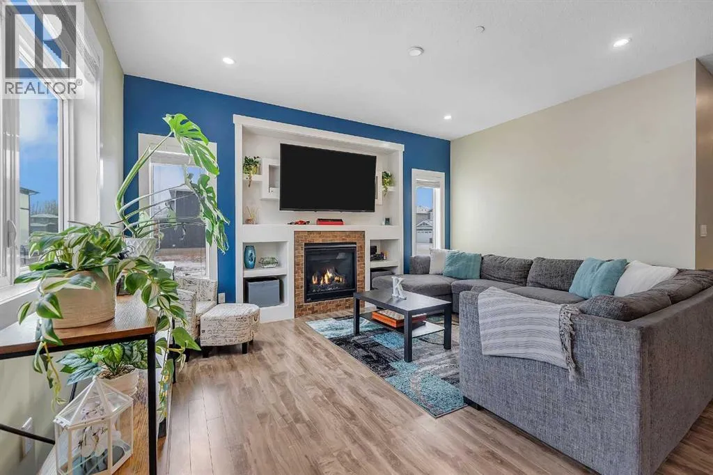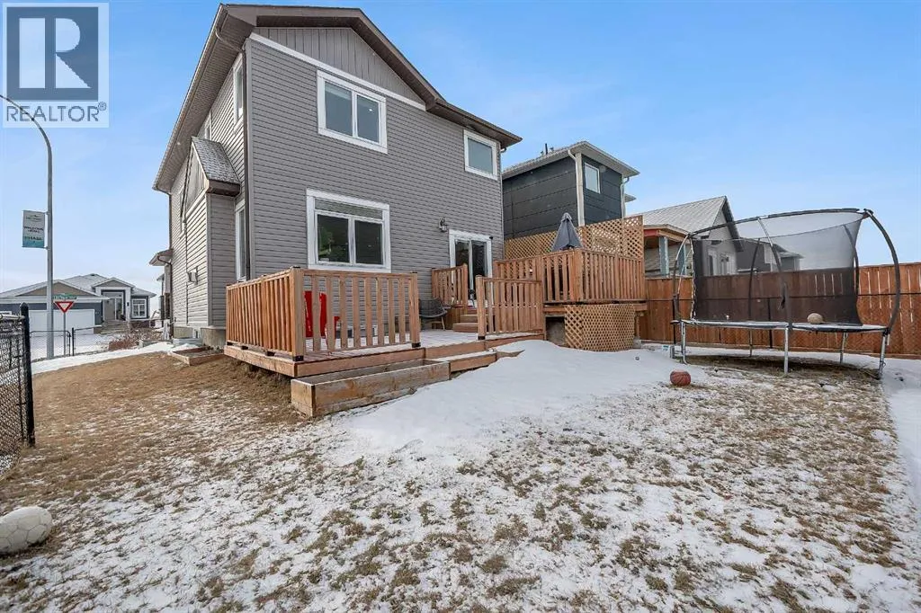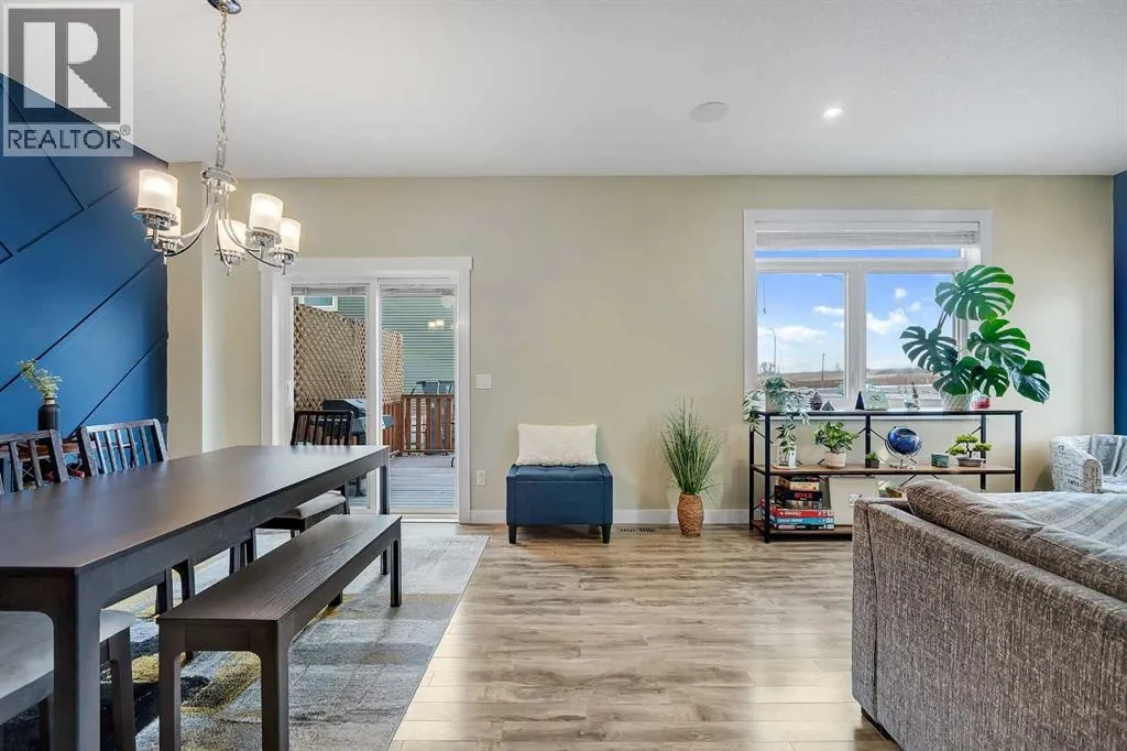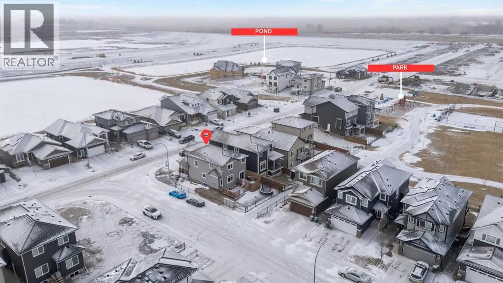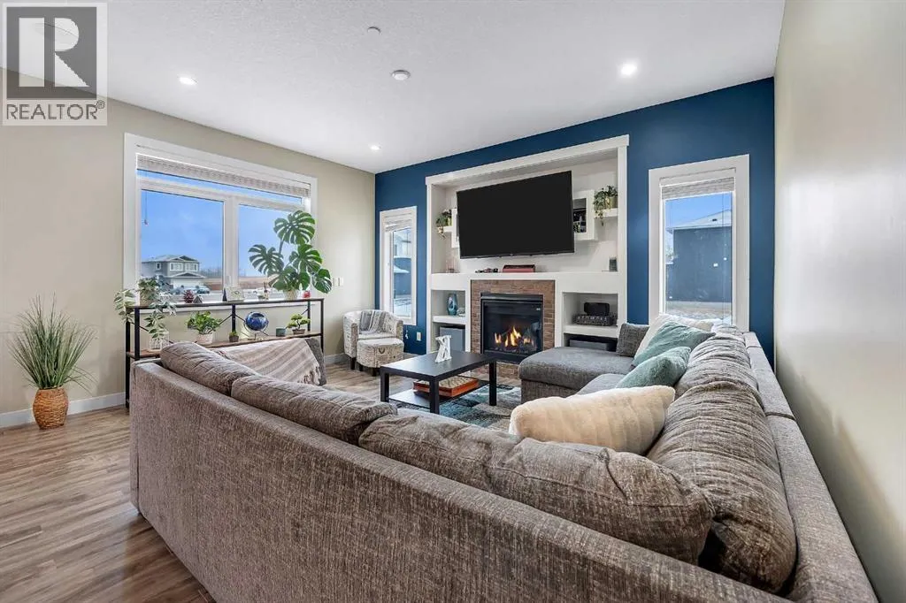 Welcome to this exceptional family home in the sought-after community of Lakewood, Strathmore, where refined living meets everyday comfort, just 30 minutes from Calgary. Perfectly positioned on a corner lot, and offering over 2,900 sq. ft. of fully developed living space, this thoughtfully designed home delivers both style and function for modern family life. The main level showcases an airy, open concept layout with 9 ft. ceilings, laminate flooring, and an abundance of windows that bathe the space in natural light. At the heart of the home, the chef-inspired kitchen impresses with a large central island, sleek quartz countertops, ceiling-height cabinetry, stainless steel appliances, and a walk-through pantry, ideal for entertaining while keeping family life organized. The living room is warm and inviting, centered around a gas fireplace with built-ins, creating a perfect gathering space. A private main floor den behind double French doors offers an ideal home office, homework space, or quiet retreat. A powder room and a spacious mudroom with built-ins complete the level, thoughtfully designed for busy families. Upstairs, the home continues to impress with a large bonus room, perfect for family movie nights, along with three generous sized bedrooms, two full bathrooms, and the convenience of upper-level laundry. The primary suite is a luxurious retreat, featuring a walk-in closet and a spa-inspired 5-piece ensuite with dual sinks, a deep soaker tub, and an oversized walk-in shower. The fully finished lower level extends your living space with a large family room, two additional bedrooms, and a 3-piece bathroom, ideal for guests, teens, or growing families. Step outside to a fully landscaped yard, backing onto a walking path that leads directly to a park and green space. Scenic ponds just across the street provide the perfect setting for evening strolls. Additional highlights include central air conditioning, fresh paint throughout, a new gas stove and refrigerator (2025), dishwasher (2026), and newer front load washer and dryer, making this home truly move-in ready. (id:27476)