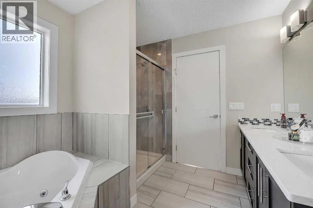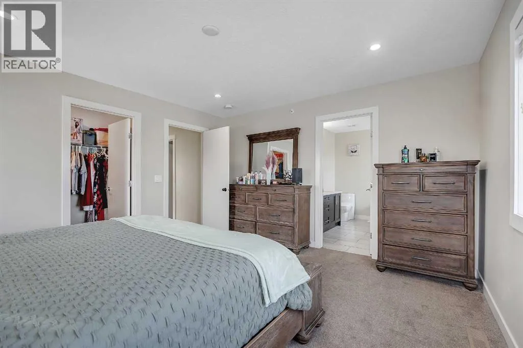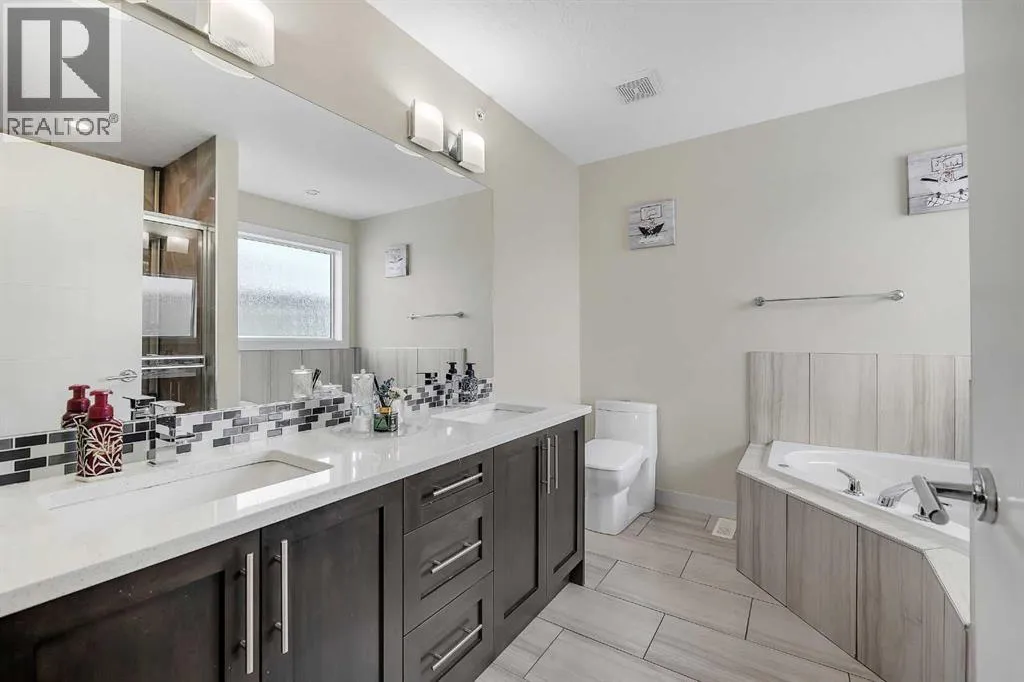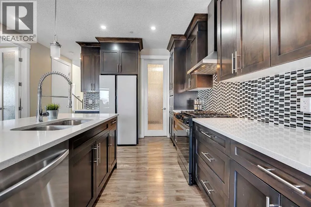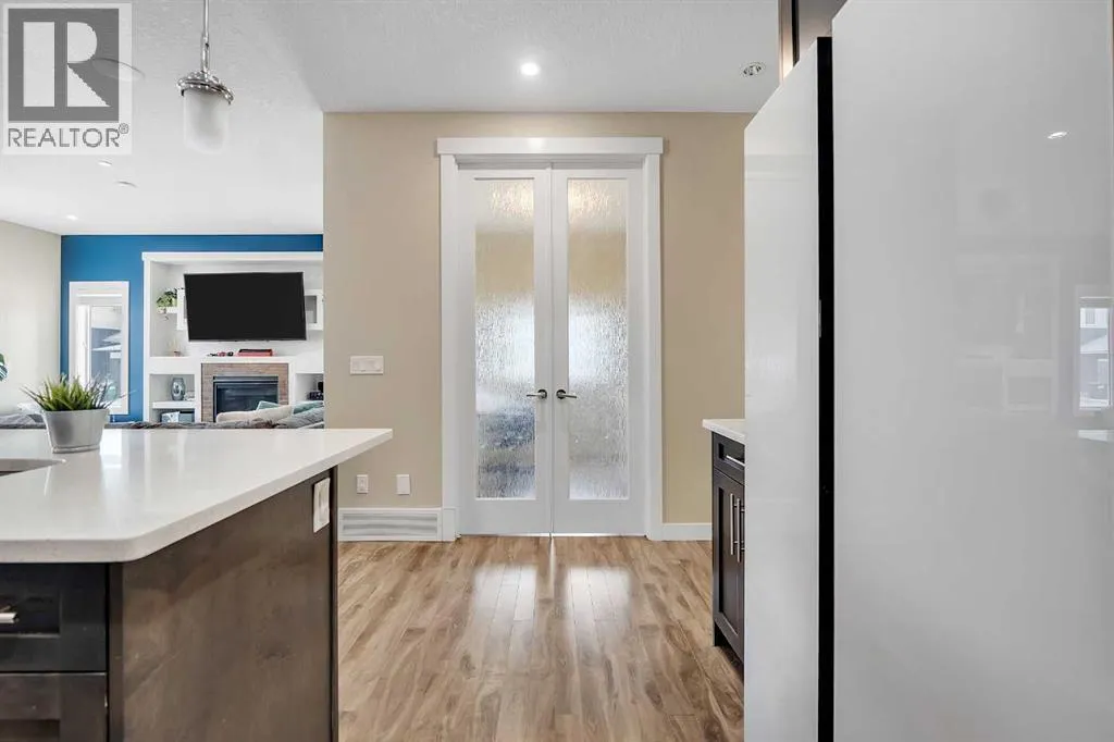 Welcome to this exceptional family home in the sought-after community of Lakewood, Strathmore, where refined living meets everyday comfort, just 30 minutes from Calgary. Perfectly positioned on a corner lot, and offering over 2,900 sq. ft. of fully developed living space, this thoughtfully designed home delivers both style and function for modern family life. The main level showcases an airy, open concept layout with 9 ft. ceilings, laminate flooring, and an abundance of windows that bathe the space in natural light. At the heart of the home, the chef-inspired kitchen impresses with a large central island, sleek quartz countertops, ceiling-height cabinetry, stainless steel appliances, and a walk-through pantry, ideal for entertaining while keeping family life organized. The living room is warm and inviting, centered around a gas fireplace with built-ins, creating a perfect gathering space. A private main floor den behind double French doors offers an ideal home office, homework space, or quiet retreat. A powder room and a spacious mudroom with built-ins complete the level, thoughtfully designed for busy families. Upstairs, the home continues to impress with a large bonus room, perfect for family movie nights, along with three generous sized bedrooms, two full bathrooms, and the convenience of upper-level laundry. The primary suite is a luxurious retreat, featuring a walk-in closet and a spa-inspired 5-piece ensuite with dual sinks, a deep soaker tub, and an oversized walk-in shower. The fully finished lower level extends your living space with a large family room, two additional bedrooms, and a 3-piece bathroom, ideal for guests, teens, or growing families. Step outside to a fully landscaped yard, backing onto a walking path that leads directly to a park and green space. Scenic ponds just across the street provide the perfect setting for evening strolls. Additional highlights include central air conditioning, fresh paint throughout, a new gas stove and refrigerator (2025), dishwasher (2026), and newer front load washer and dryer, making this home truly move-in ready. (id:27476)