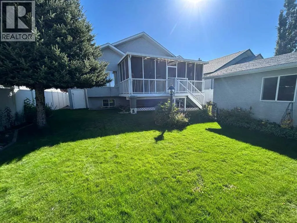 Welcome to your lovingly maintained and updated home located in Cambridge Glen, close to schools and recreational facilities, this home backs onto the bike/walking path system connecting you and your family to several parks including Dinosaur Hill just steps away. The yards are beautifully landscaped with large trees and lush gardens and feature an underground sprinkler system. The home boasts an open concept main floor with kitchen, dining area, living room, and full bathroom. You will immediately notice the soaring 10 foot ceilings with three skylights bringing in incredible natural light throughout the day. The kitchen features loads of cabinets, a large island, and a large corner pantry. The bonus room above the garage is great space for an office, den, or tv room, featuring built in cabinets and bar. The home has four bedrooms, incl the conveniently accessible main floor primary bedroom with en-suite bathroom and walk-in closet. The entry level features a second bedroom which could also be used as a den/office. The basement features two additional bedrooms, a 4 piece bathroom, and a rec room. The large covered and fully screened-in composite (maintenance free) back deck is a tranquil oasis to enjoy your morning coffee or game night with the family. Head down from your covered deck, through the landscaped back yard and you'll find the heated and finished 14x18 shop, perfect for the hobbyist/tinkerer/gardener/mechanic. At the front of the home you'll find the heated double attached garage and veranda. Recent updates include: new 50 year architectural roof shingles, eavestroughs and facia (2025), new skylights (2025), new A/C (2025), newer high efficiency furnace (2023), newer HWT (2023), Bosh dishawsher (2024). So many more features to mention... convenient main floor laundry, gas fireplaces up and down, water softener, central vac, additional shed for storage, maintenance free vinyl and chain link fencing, gas BBQ outlet, and Telus Fibre internet wiri ng. This home shows incredibly well with clear pride of ownership throughout. (id:27476)
