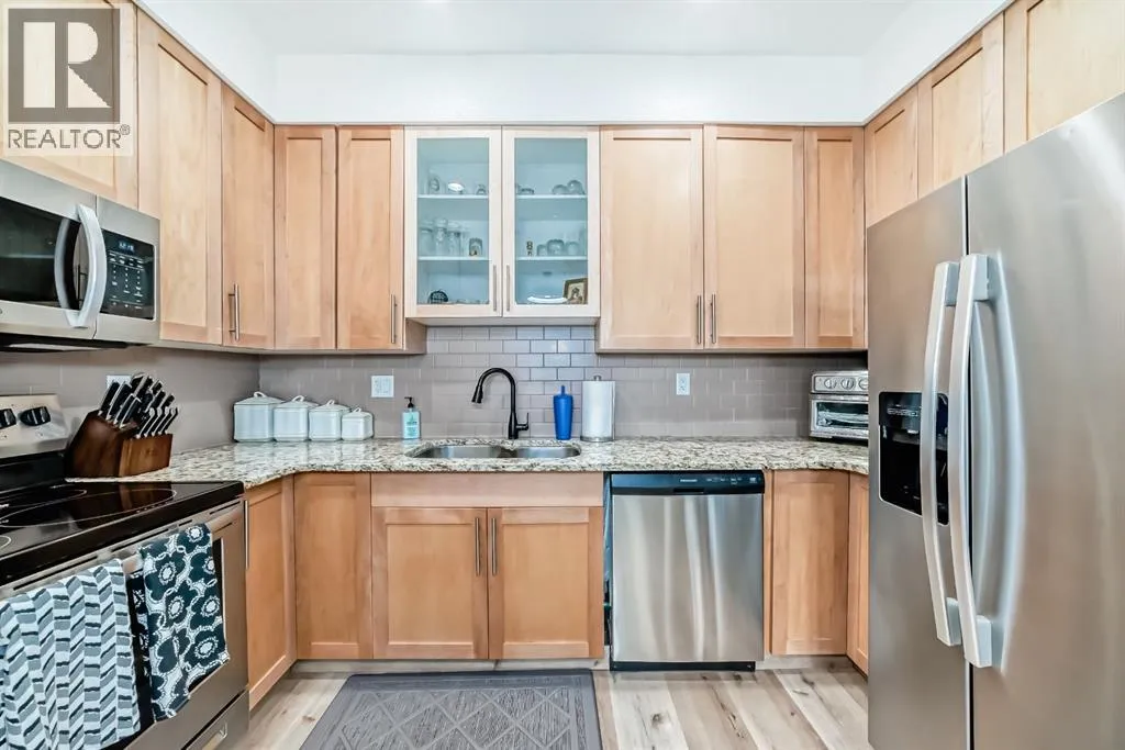 Wow this home shows better than new!! Freshly painted throughout. Newer vinyl flooring throughout. Cabinets are like new. This one bedroom condo is on the main floor with 3 parking stalls. 1 parking is conveniently situated by your patio, and the other two are close to your elevator underground with your storage unit. Walking in your are welcomed by a great size entry way complete with coat closet. The large living room is large enough for a sectional couch there is a beautiful corner gas fireplace for those cozy nights. The French garden doors lead you to your concrete patio complete with gas BBQ hookup and nice glass finishings. There is a good size dining area as well as a breakfast bar and a galley kitchen with granite counters giving it lots of counter space for cooking and baking. The bedroom will fit king furniture and features a walk in closet as well as access to the bathroom. All of this is also complete with in floor heating. The condo fees include Gas/heat, water, sewer, garbage, management, maintenance, snow removal, lawn mowing and more!! Just move in connect your power and TV/Internet and settle in. (id:27476)