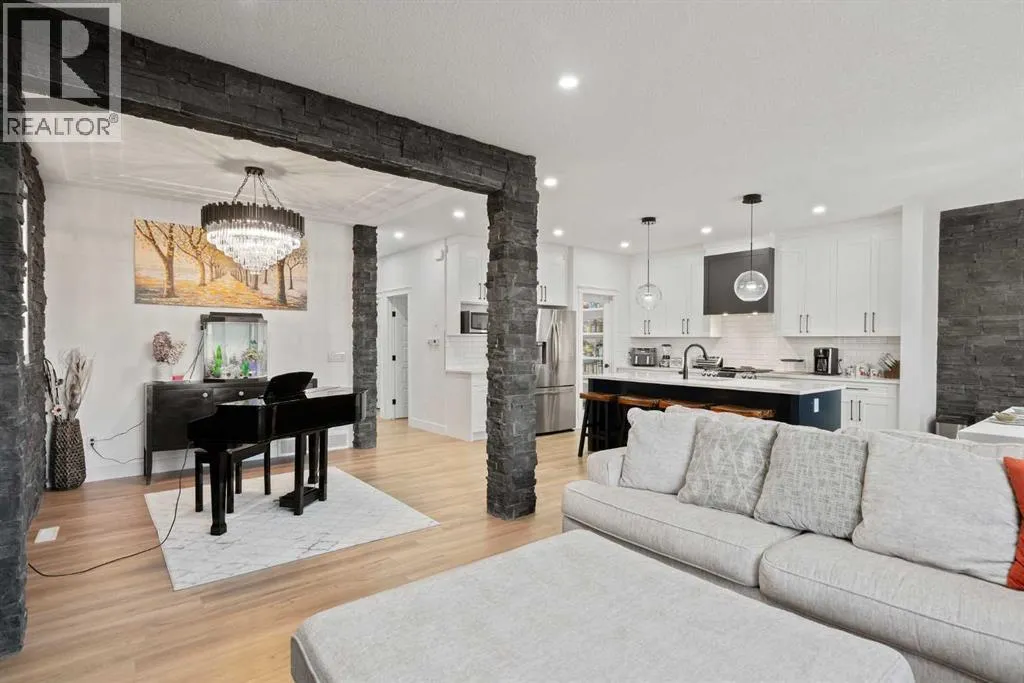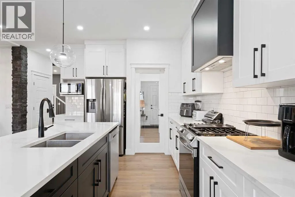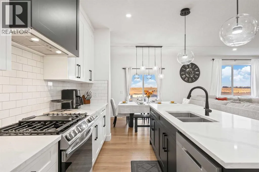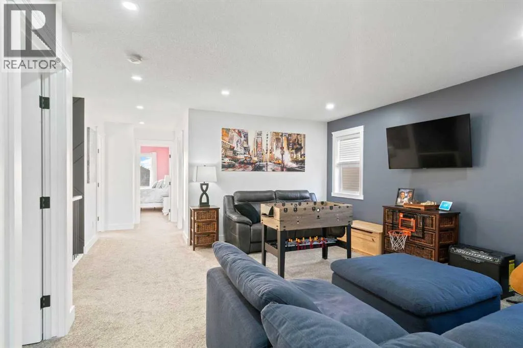 This beautifully designed two-storey home delivers the perfect mix of contemporary style and everyday practicality. The open-concept main level is bright and welcoming, anchored by a crisp white kitchen with quartz countertops, streamlined cabinetry, and a large island thatâs perfect for casual dining or entertaining. The adjoining eating nook seamlessly connects to the cozy living area, highlighted by a sleek electric fireplace. A versatile main floor flex room offers endless possibilities â ideal as a home office, formal dining space, or playroom. Upstairs, youâll find four generously sized bedrooms, including a spacious primary retreat featuring a walk-in closet and a spa-inspired 5-piece ensuite. A central bonus room creates the perfect hangout for movie nights or quiet relaxation, while the upper-level laundry room with sink adds everyday convenience. The fully developed basement offers even more flexibility with a separate entrance and an illegal suite complete with its own kitchen, bedroom, 3-piece bath, laundry, and large recreation area â ideal for extended family, guests, or a home-based business setup. Outside, the sunny backyard is ready for summer enjoyment with a deck and swimming pool â and the pool can remain for the new owners to enjoy. With its thoughtful layout, income potential, and modern finishes throughout, this home offers exceptional value and versatility. (id:27476)