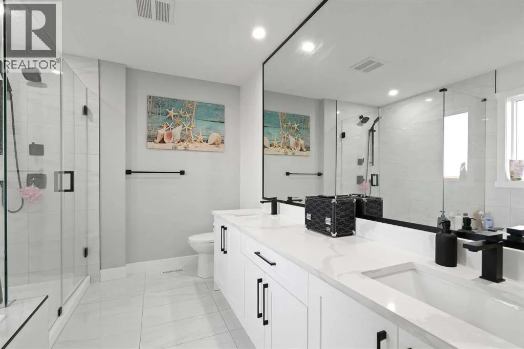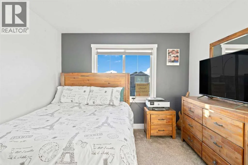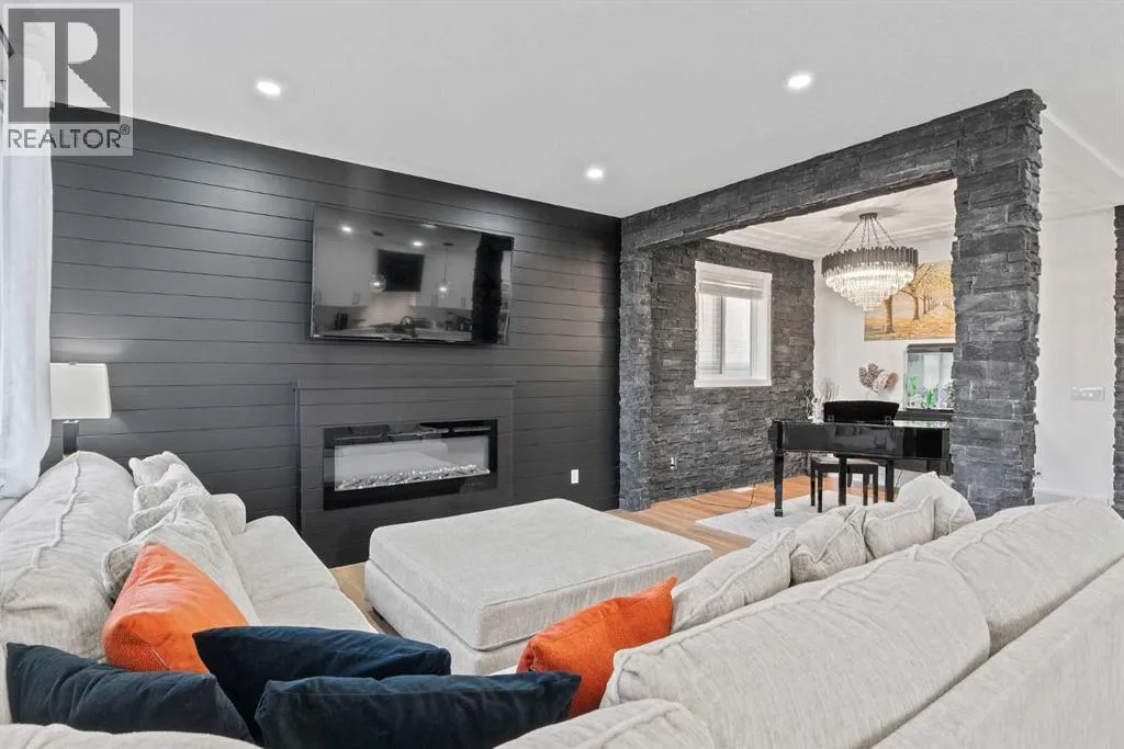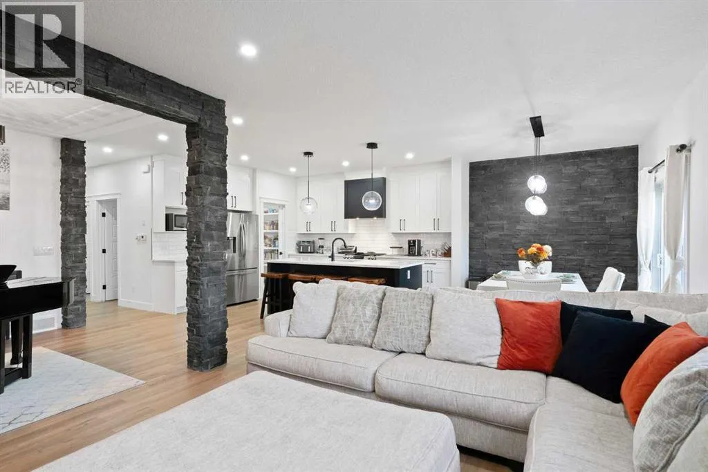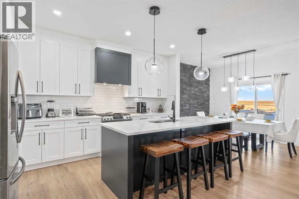 This beautifully designed two-storey home delivers the perfect mix of contemporary style and everyday practicality. The open-concept main level is bright and welcoming, anchored by a crisp white kitchen with quartz countertops, streamlined cabinetry, and a large island thatâs perfect for casual dining or entertaining. The adjoining eating nook seamlessly connects to the cozy living area, highlighted by a sleek electric fireplace. A versatile main floor flex room offers endless possibilities â ideal as a home office, formal dining space, or playroom. Upstairs, youâll find four generously sized bedrooms, including a spacious primary retreat featuring a walk-in closet and a spa-inspired 5-piece ensuite. A central bonus room creates the perfect hangout for movie nights or quiet relaxation, while the upper-level laundry room with sink adds everyday convenience. The fully developed basement offers even more flexibility with a separate entrance and an illegal suite complete with its own kitchen, bedroom, 3-piece bath, laundry, and large recreation area â ideal for extended family, guests, or a home-based business setup. Outside, the sunny backyard is ready for summer enjoyment with a deck and swimming pool â and the pool can remain for the new owners to enjoy. With its thoughtful layout, income potential, and modern finishes throughout, this home offers exceptional value and versatility. (id:27476)