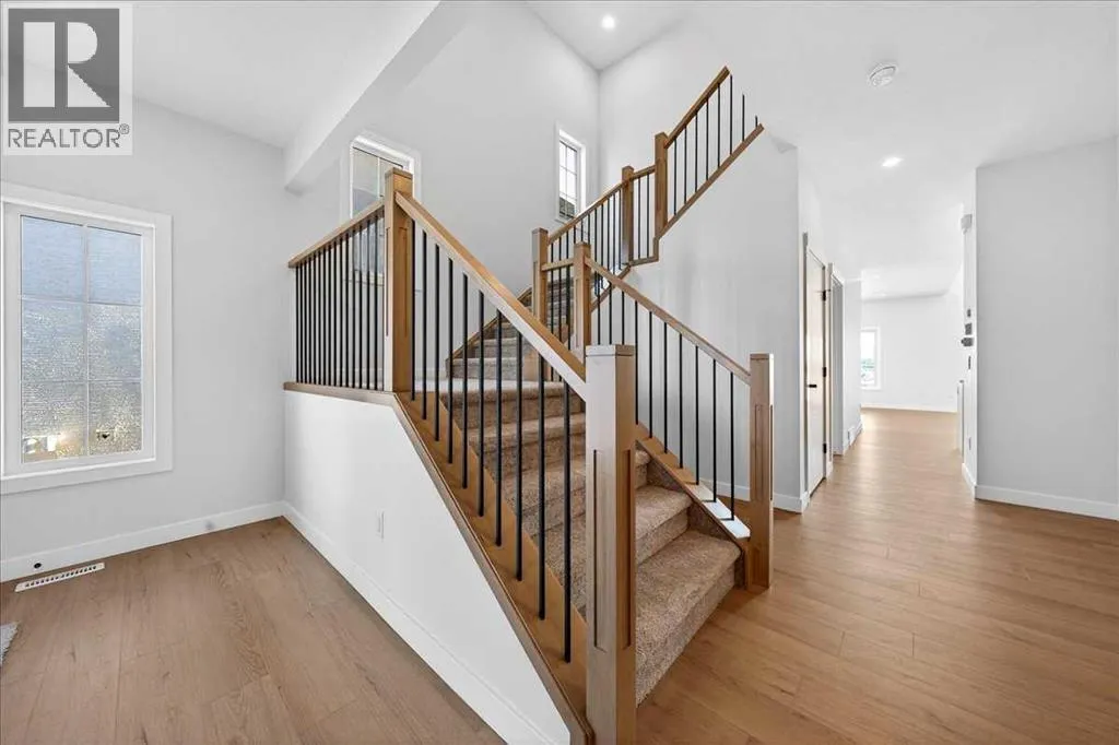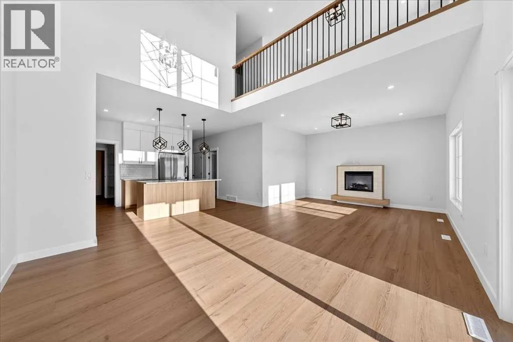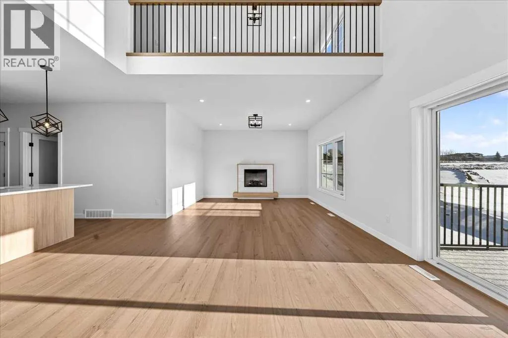 Welcome to 11 Lakewood Way, where thoughtful design meets one of Strathmoreâs most beautiful natural settings. Built by Dhaduk Homes, this Acme 2 model offers over 2,300 square feet of well planned living space and backs directly onto the canal, with a walkout basement that brings the outdoors into everyday life. From the moment you step inside, the home feels both spacious and welcoming. The front foyer is anchored by a convenient powder room and connects to an adjoining mudroom, creating a functional entry point for busy days. As you move into the heart of the home, the layout opens up into a bright and inviting main floor. The kitchen is the true hub, complemented by a huge walkthrough pantry that makes storage and organization effortless. A private office is tucked to the side, perfect for working from home or managing daily life with a bit of quiet. Across the back of the home, the living and dining areas are designed to take full advantage of the canal views. An electric fireplace adds warmth and character to the living room, while patio doors lead out to a deck overlooking the water, an ideal setting for morning coffee or evening unwinding. Upstairs, the space continues to impress. The primary suite feels like a retreat, complete with a generous walk in closet and a beautiful ensuite featuring a freestanding tub and a separate walk in shower. Two additional bedrooms, a full four piece bathroom, and an upstairs laundry room add everyday convenience. A bonus room with an open to below feature enhances the architectural feel and creates a sense of light and openness throughout the upper level. With large windows, striking design, and a walkout backing onto the canal, this home blends lifestyle and function in a truly special location. Quick possession is available, and the home is already built, offering the rare chance to move into a brand new canal side home without the wait. (id:27476)