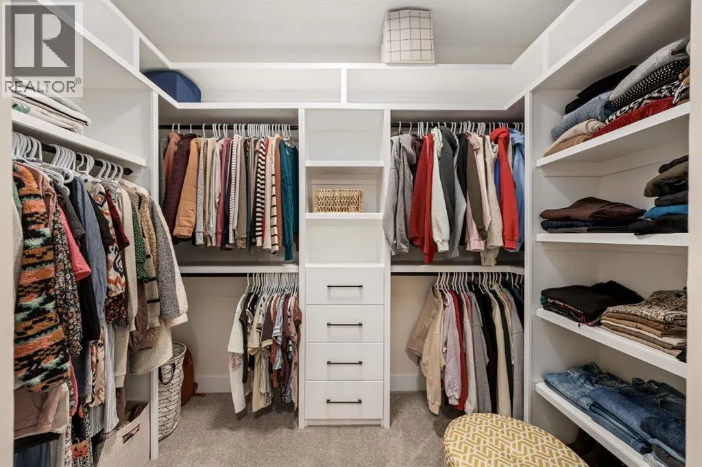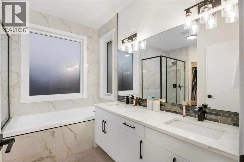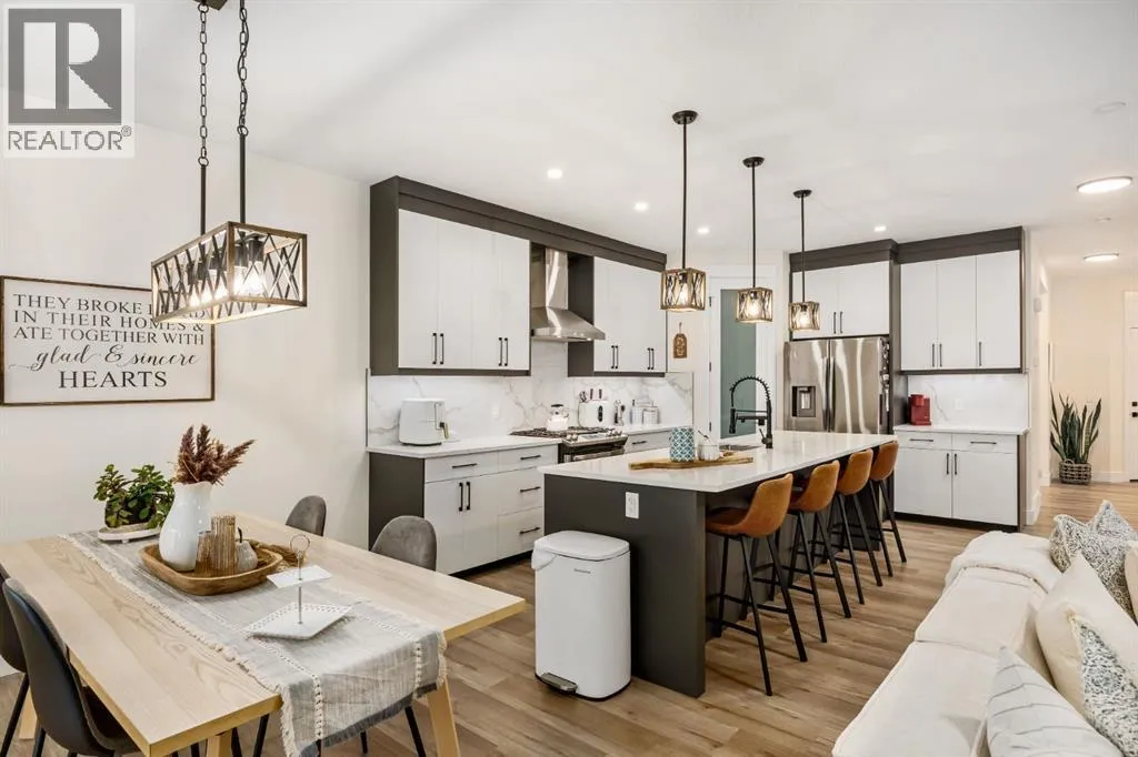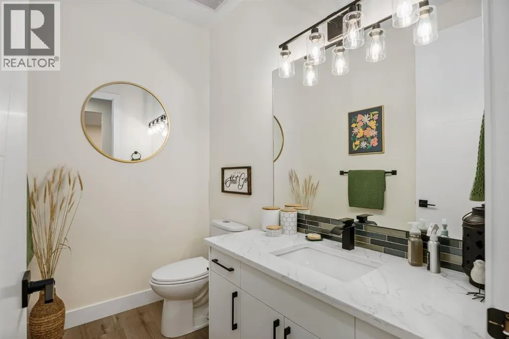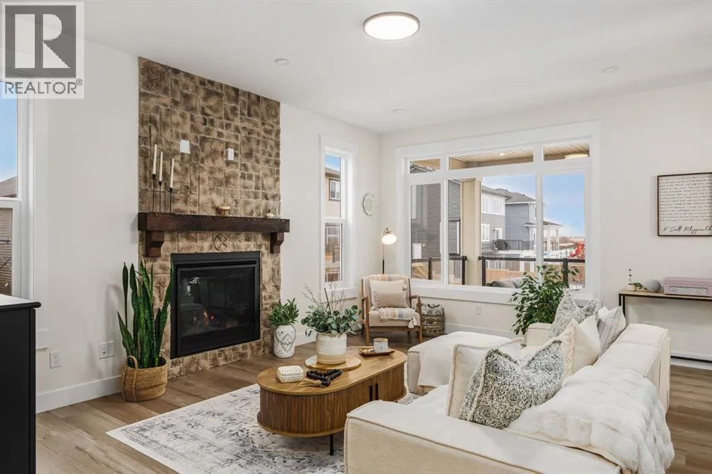 Discover refined living in this impeccably crafted 2024 custom-built two-storey walkout by Shayman Homes, located in the sought-after lake community of Lakewood in Strathmore. Backing onto a lush green space and walking path with no neighbours behind, this east-facing home offers nearly 3,000 sq.ft. of beautifully designed living space with luxury finishes throughout.The striking exterior with stone accents and extended driveway welcomes you into a bright foyer filled with natural light from oversized windows. The main floor features 9â ceilings and luxury laminate flooring, flowing through a thoughtfully designed layout. A private main-floor office with an 8â doorway provides the perfect workspace or flex room.The chefâs kitchen is the heart of the home, showcasing an expansive quartz island, soft-close white cabinetry with black hardware, undermount sink, and premium stainless steel appliance package including a gas range, chimney-style hood fan, built-in oversized microwave, dishwasher, and refrigerator with water hookup. A spacious pantry with built-in shelving and automatic lighting adds everyday convenience.The dining and living areas are flooded with natural light and anchored by a stunning floor-to-ceiling stone gas fireplace with custom mantel. Step outside to the covered upper deck spanning the width of the home, complete with recessed lighting, custom glass railings, and a gas line rough-inâideal for entertaining while overlooking the landscaped yard and park.Upstairs features a vaulted ceiling opening into a massive bonus room, upper laundry with tile flooring and quartz counters, and three generously sized bedrooms. The primary retreat offers a spa-inspired ensuite with dual quartz vanity, 5â soaker tub, floor-to-ceiling tiled shower, a private toilet room, and a walk-in closet with custom built-ins. A stylish 4-piece bathroom completes the level.The fully developed walkout basement extends the living space with 9â ceilings, luxury laminate floorin g, a spacious family room, and a custom 10â wet bar with quartz counters, tile backsplash, and built-in cabinetry. Two large bedrooms, a 4-piece bathroom, mechanical room, and under-stair storage complete the lower level.Outside, enjoy a covered concrete patio, fully landscaped yard, and unobstructed views of the greenspace and playground. Located minutes from schools, amenities, recreation, and golf, with Calgary just 30 minutes away, Lakewood offers a lifestyle unlike any other. Dont miss your opportunity to own this stunning family home. Book your private showing today. (id:27476)