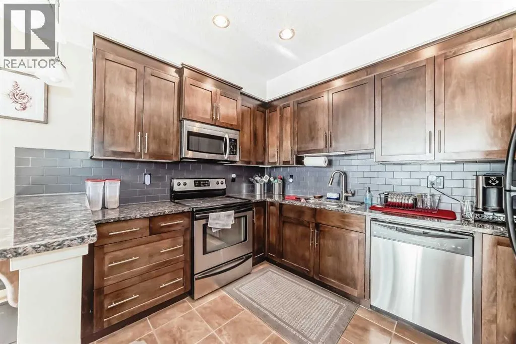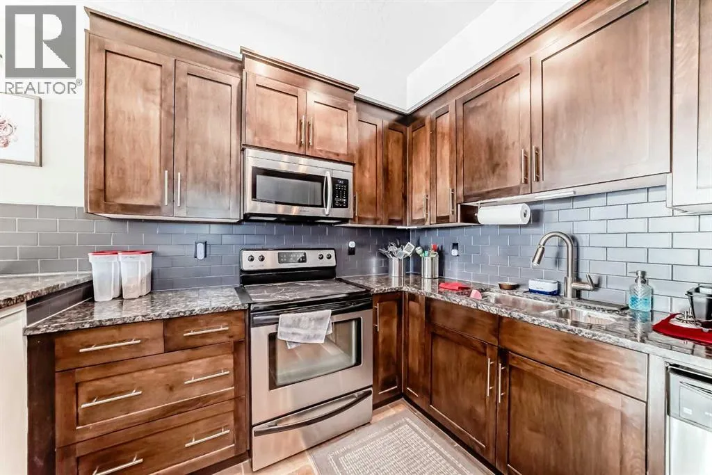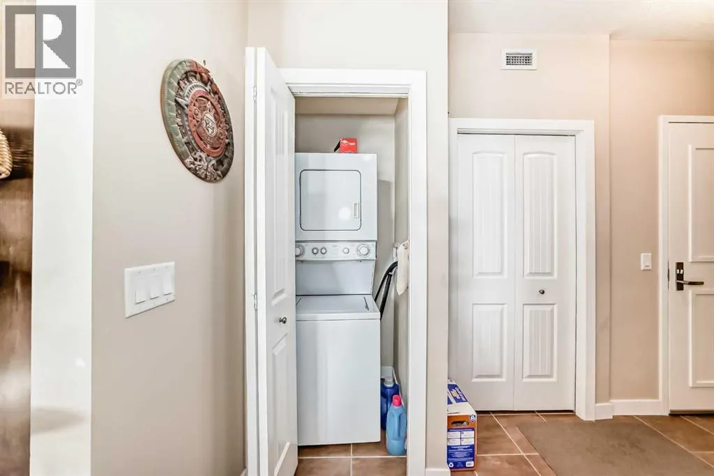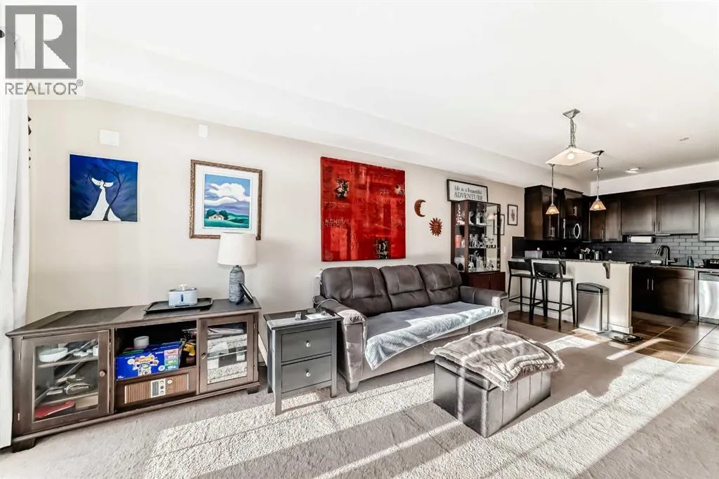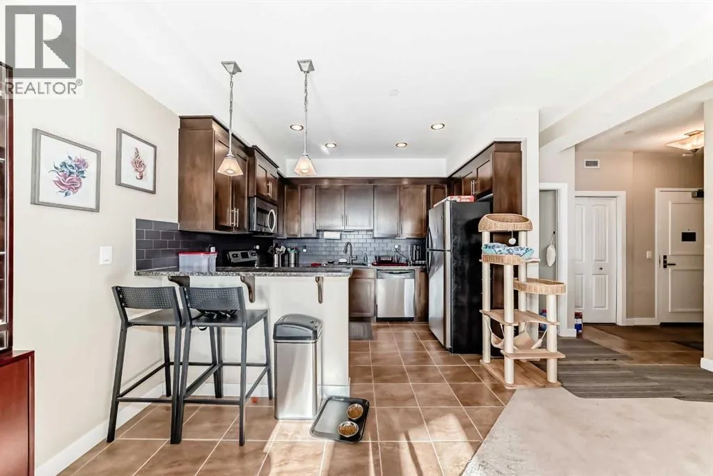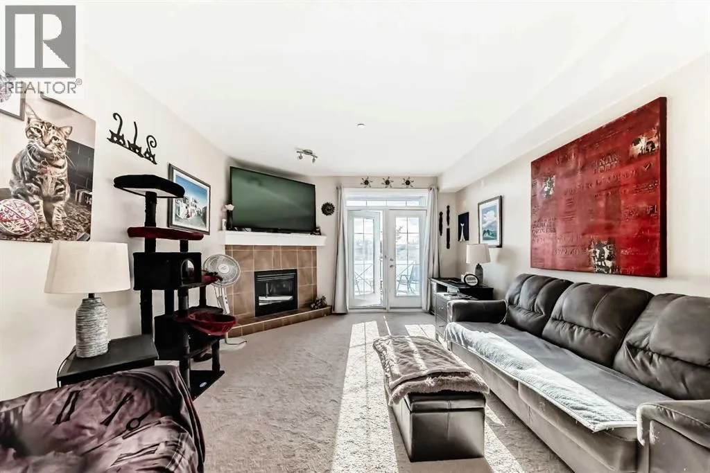 Welcome to Unit 206 at 1005B Westmount Drive, a beautifully maintained second-floor condo in The Savana at Strathmore Lake Estates, offering the perfect blend of comfort, convenience, and lakeside living.This well-designed 764 sq ft, 1-bedroom, 1-bathroom unit features a bright open-concept layout with generous natural light throughout. The kitchen is finished with granite countertops, rich shaker-style cabinetry, stainless steel appliances, and a breakfast bar, making it both functional and stylish. The cozy living area is anchored by a corner gas fireplace with tile surround, creating a warm and inviting space to relax.The spacious primary suite includes a walk-in closet and ensuite. Enjoy the convenience of in-suite stacked laundry.Step outside to your private balcony with a gas BBQ hookup, perfect for evening grilling. The unit also includes a titled surface parking stall.Located steps from Strathmore Lake, walking paths, parks, shopping, and everyday amenities, this home offers an easy, low-maintenance lifestyle in one of Strathmoreâs most desirable condo communities. (id:27476)
