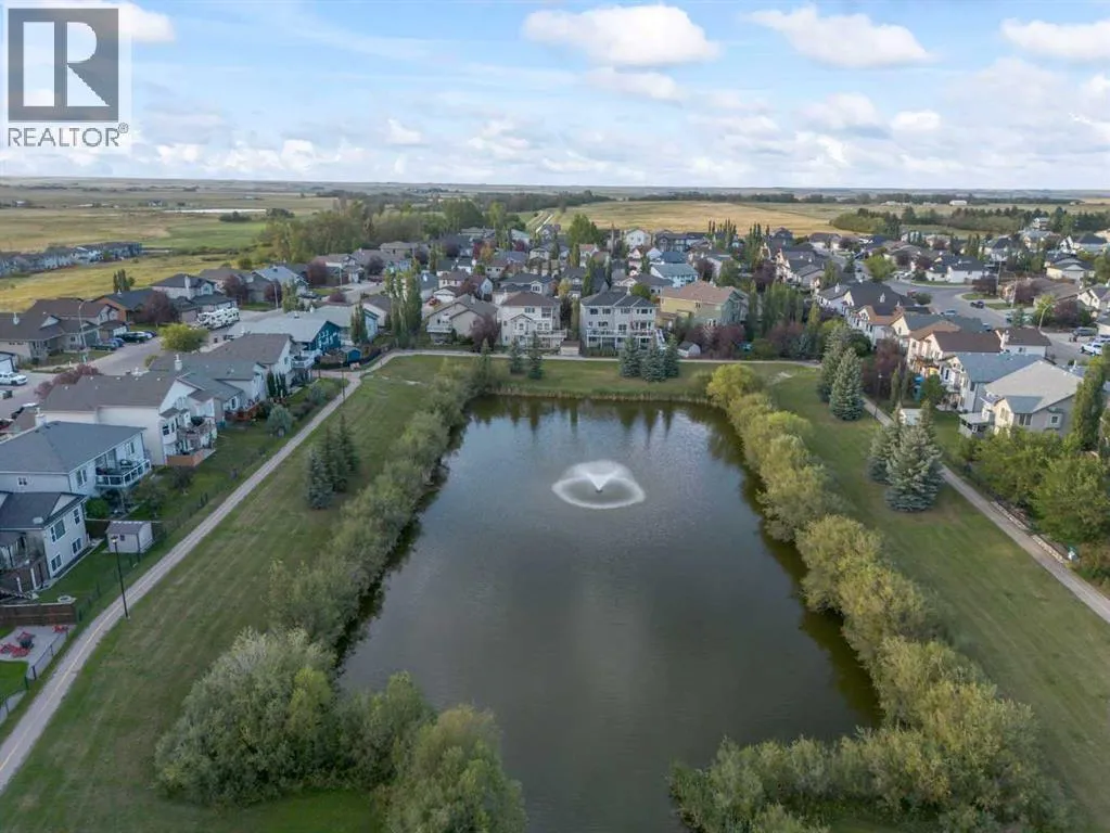 Water views. Walkout basement. Cul-de-sac living.Homes like this do not come up often in Hillview Estates.Set quietly at the end of a cul-de-sac and backing directly onto the pond, this home offers something buyers are always searching for but rarely find together: privacy, views, and space to actually enjoy where you live.Step outside and the lifestyle speaks for itself. A full-width deck overlooks the water, creating the perfect setting for morning coffee, summer evenings, and peaceful sunsets reflecting across the pond. The backyard walkout gives you direct access to outdoor space while still offering the privacy homeowners love about this location.Inside, the home offers just under 2,400 square feet above grade with a layout designed for everyday life. Bright, open living spaces welcome you the moment you walk in, with soaring ceilings that create a sense of space and light throughout the main floor.The kitchen sits at the heart of the home with generous cabinetry, a pantry, and clear sightlines to the main living areas so you stay connected whether hosting guests or spending time with family.Upstairs you will find three spacious bedrooms plus a large bonus room, ideal for movie nights, kids space, or a quiet retreat away from the main floor. The primary suite is oversized and comfortable, complete with a five-piece ensuite featuring a soaker tub and separate shower.The walkout basement adds even more flexibility, offering a fourth bedroom, full bathroom, and a large rec room that opens directly to the backyard. Perfect for guests, teenagers, or multi-generational living.What truly sets this home apart is the setting.Pond views. Cul-de-sac privacy. Walkout living.A combination that rarely becomes available in Strathmore.If you have been waiting for a home with space, views, and a location that simply feels better the moment you arrive, this one is worth seeing.Book your showing and come experience it for yourself. (id:27476)