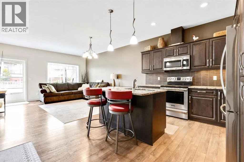 Welcome to carefree living in this beautifully designed 55+ adult villa. This well-maintained home features 2 spacious bedrooms, 2 bathrooms including a primary suite with a walk-in closet and private ensuite for your comfort and convenience. Enjoy the bright and open concept layout, perfect for entertaining or relaxing. The kitchen boasts modern stainless steel appliances, beautiful granite countertops, under mount lighting and soft close cupboards. The kitchen flows seamlessly into the dining and living areas. Outside you will find a nice sized patio with a BBQ gas line for your convenience. With an unfinished basement, there's plenty of potential to create additional living space or storage tailored to your needs. An attached double garage for your comfort.Located in the friendly community of Sagewood Villas, this home offers maintenance-free living, giving you more time to enjoy life your way. Located close to the hospital, pool, arena, shopping and walking paths. Updates include New Refrigerator March 2025, R50 insulation added to the attic Sept 2025. Call your favourite Realtor® for your private viewing today. (id:27476)