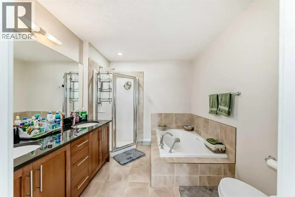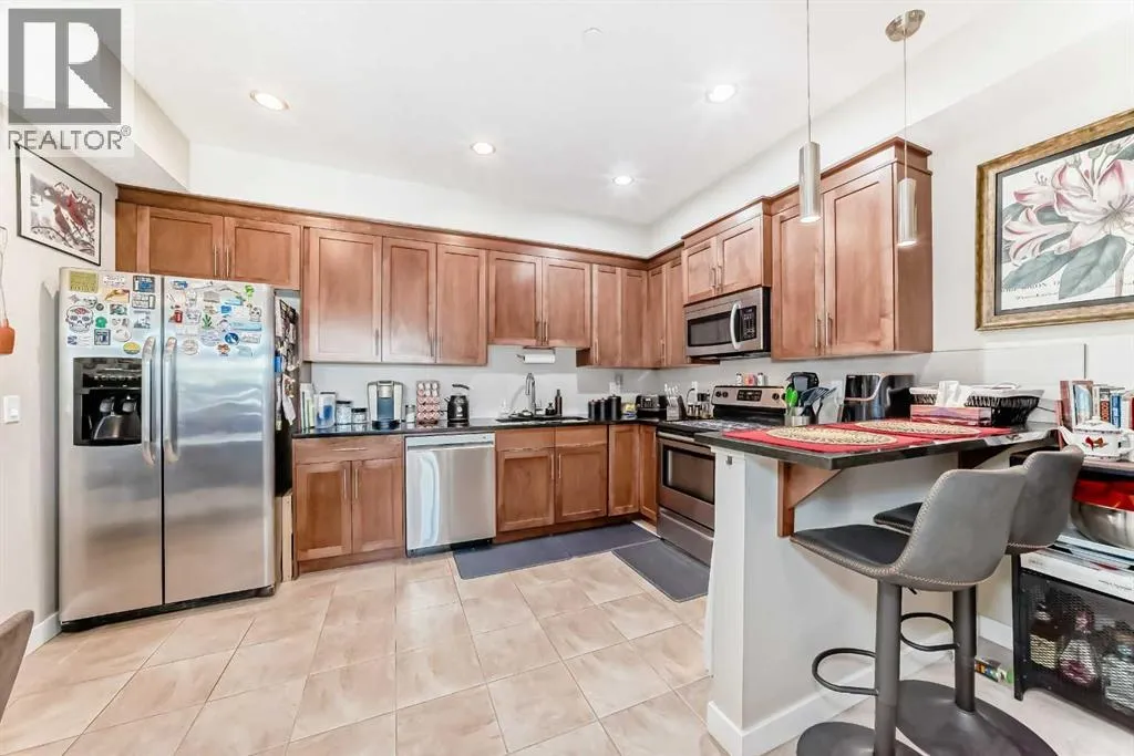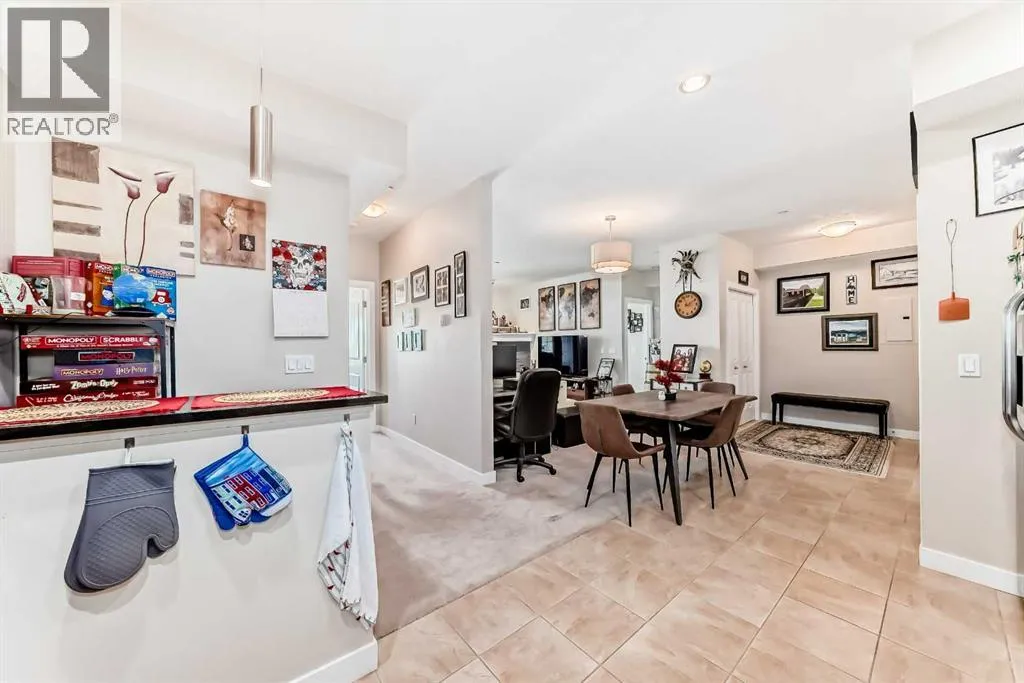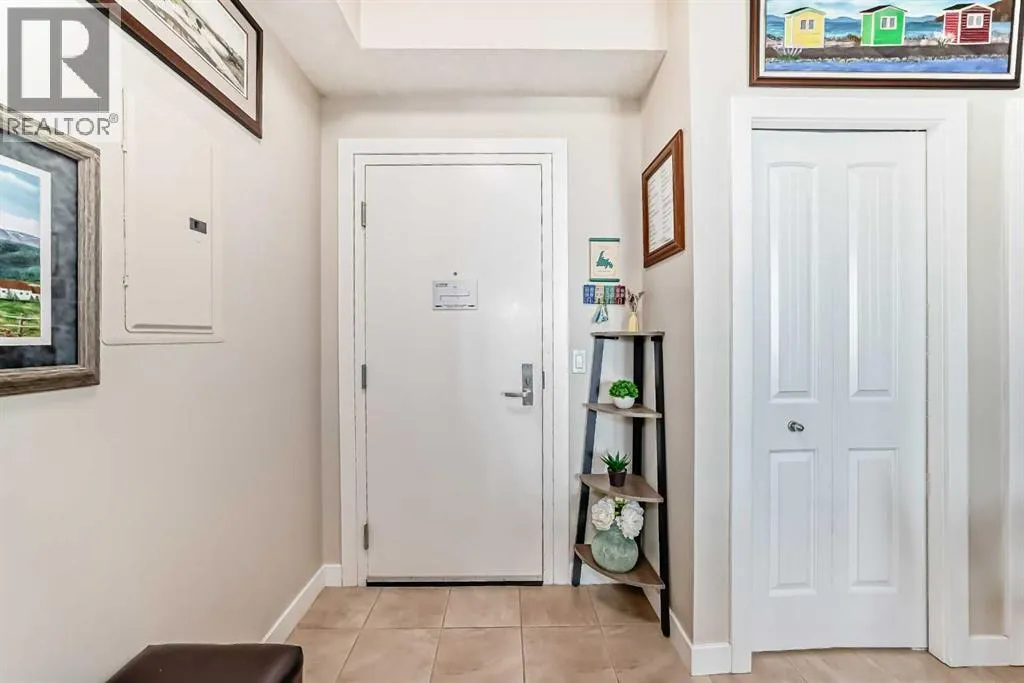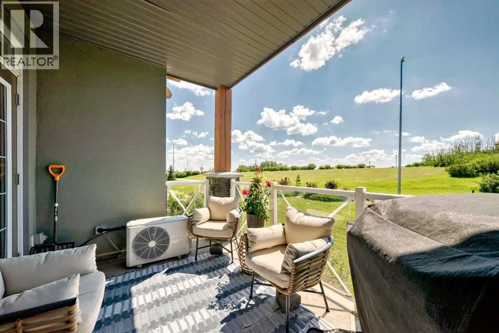 This fantastic unit in the Savana Condos of Strathmore offers a prime location within walking distance to the lake, pond, and all nearby amenities. With over 1,000 square feet of living space, this spacious two-bedroom, two-bathroom condo is an excellent opportunity for both homeowners and investors. The unit includes three titled parking stallsâone tandem heated underground stall (with extra storage in front) and one titled exterior surface stall. Underground stall is 111 and surface stall is 205 Inside, the layout is open and inviting with open concept from the living room to the dining area and kitchen. The kitchen is thoughtfully designed with abundant cabinet space, upgraded stainless steel appliances including a fridge with water and ice, a large L-shaped island with an eating bar, a pantry, and granite countertops. Ceramic tile flooring is featured in the kitchen and bathrooms, while the rest of the unit is finished in carpet. The living room offers a cozy gas corner fireplace and access to a spacious balcony with a lovely view.The master bedroom is impressively large and filled with natural light from multiple windows. It includes a walk-through closet that leads to a luxurious five-piece ensuite with double sinks, a separate shower, and a soaker tub. The second bedroom is also generous in size with plenty of closet space, and there's an additional four-piece bathroom for guests. For added comfort, the unit features in-floor heating, air-conditioning unit on the deck and wall unit in living room, and a washer and dryer are conveniently located in-suite.This well-managed complex is known for its popularity and desirability. Currently, the property is tenanted with a lease in place until June 2026 at $2,000 per month. The tenant is open to extending their stay, making this a strong investment opportunity for those looking to secure a reliable rental income. Please note that while dogs are not permitted in the complex, cats are allowed with board approval . (id:27476)