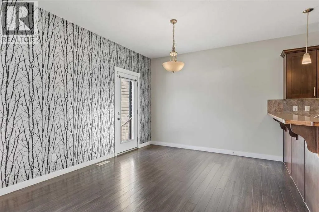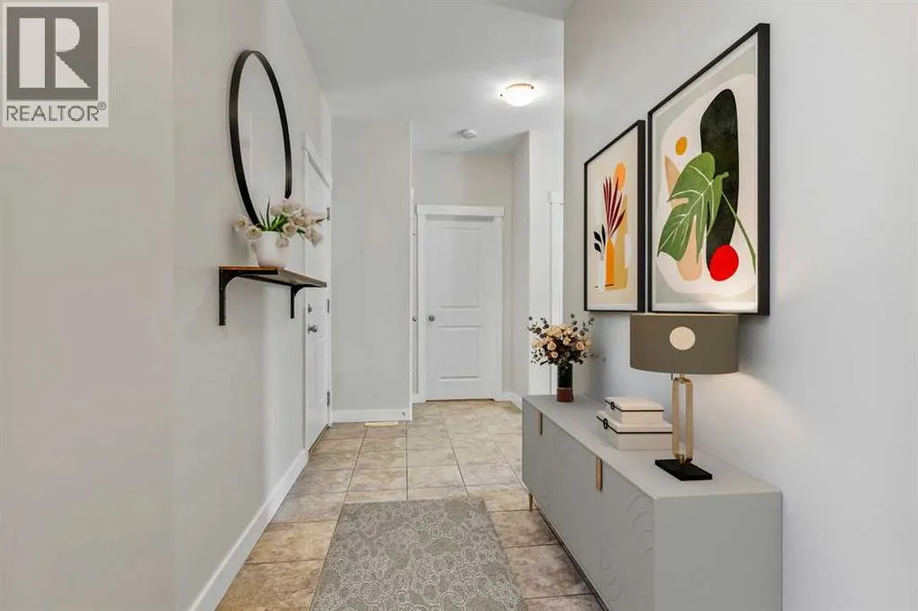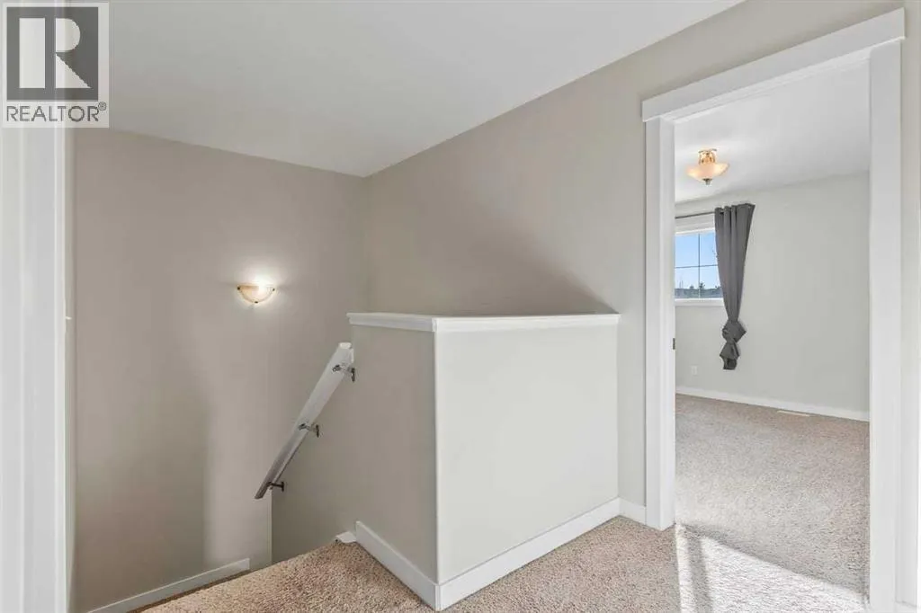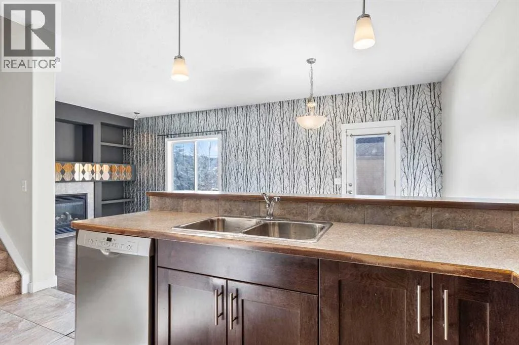 Welcome to this affordable, beautiful and comfortable townhouse located in the desirable community of The Ranch in Strathmore. Offering over 1400 ft.² of well- lit and sunny living space. This freshly painted home features 3 bedrooms 2.5 bathrooms and a double attached garage. As you enter, you are welcomed by a good-size foyer, leading into the open concept main floor. The kitchen offers ample cabinetry, black appliances, and a breakfast bar, making it both functional and inviting. The living and dining areas, flow nicely together, with the living room featuring a cozy gas fireplace and a built-in wall unit. The dining area is a comfortable size and provides access to your private patio, and is perfect for summer barbecues. The top floor of this spacious townhome features a master bedroom that includes a walk-in closet and a private 4 -piece en suite, along with 2 additional generously sized bedrooms and a 4- piece bathroom completing the upper floor. The unfinished basement offers great potential for future development, whether you envision a fourth bedroom, home gym, or additional living space. This home is an excellent opportunity for first home buyers, growing families, or those looking to downsize. Conveniently located close to parks, schools, shopping, and major roads. This home is move-in ready! Book your showing with your favorite realtor today before it's gone! (id:27476)