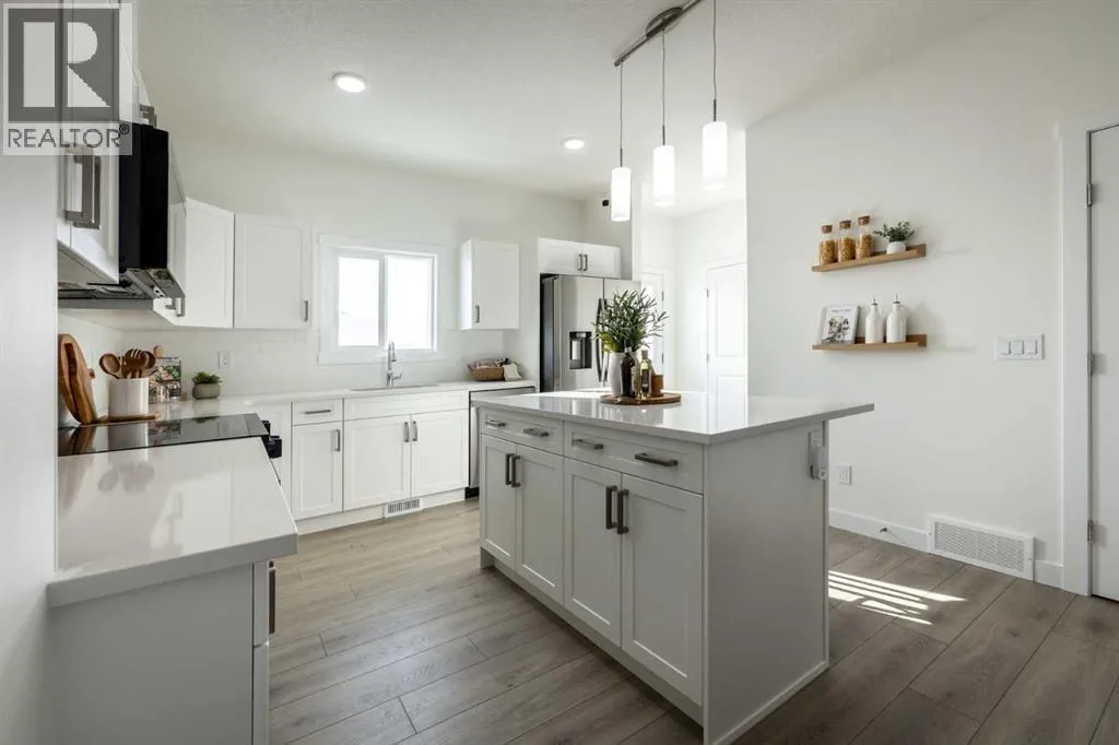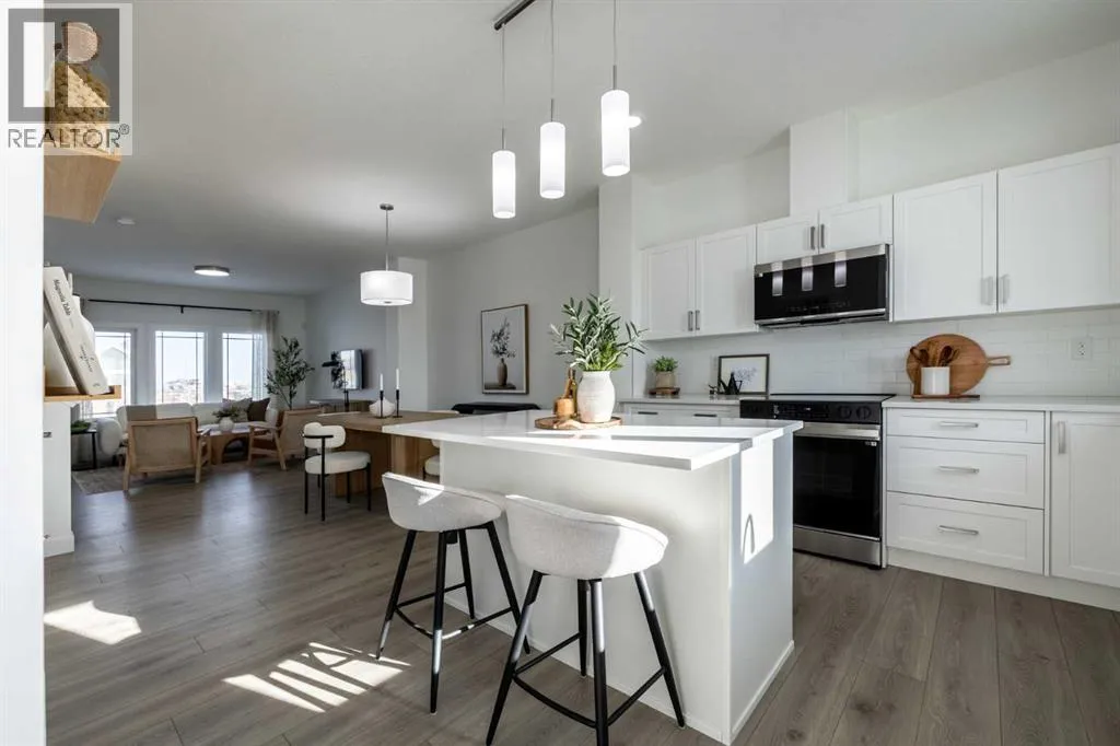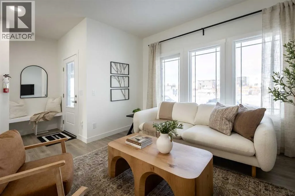 Welcome to the Kensington duplex from Akash Homes. This stylish half duplex features a bright open-concept main floor designed for both everyday comfort and entertaining.The kitchen is finished with quartz countertops, ample prep space, and a seamless flow into the dining area and spacious great room, creating the ideal setting for hosting or relaxing at home. A convenient side basement entry adds extra versatility and future potential for lower-level development.Upstairs, youâll find three well-sized bedrooms, including a spacious primary suite complete with a 3-piece ensuite, plus the added convenience of upper floor laundry right where you need it most.Outside, enjoy the practicality of a double detached garage, providing secure parking and extra storage year-round. If youâre looking for a modern, low-maintenance home in one of Strathmore's most desirable communities, this is an amazing opportunity! **PLEASE NOTE** PICTURES ARE OF SHOW HOME; ACTUAL HOME, PLANS, FIXTURES, AND FINISHES MAY VARY AND ARE SUBJECT TO AVAILABILITY/CHANGES WITHOUT NOTICE. (id:27476)