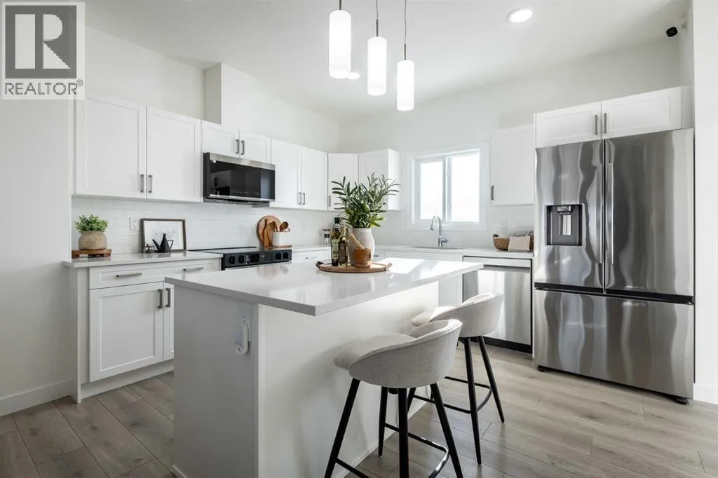 Welcome to the Kensington duplex from Akash Homes. This stylish half duplex features a bright open-concept main floor designed for both everyday comfort and entertaining.The kitchen is finished with quartz countertops, ample prep space, and a seamless flow into the dining area and spacious great room, creating the ideal setting for hosting or relaxing at home. A convenient side basement entry adds extra versatility and future potential for lower-level development.Upstairs, you’ll find three well-sized bedrooms, including a spacious primary suite complete with a 3-piece ensuite, plus the added convenience of upper floor laundry right where you need it most.Outside, enjoy the practicality of a double detached garage, providing secure parking and extra storage year-round. If you’re looking for a modern, low-maintenance home in one of Strathmore's most desirable communities, this is an amazing opportunity! **PLEASE NOTE** PICTURES ARE OF SHOW HOME; ACTUAL HOME, PLANS, FIXTURES, AND FINISHES MAY VARY AND ARE SUBJECT TO AVAILABILITY/CHANGES WITHOUT NOTICE. (id:27476)