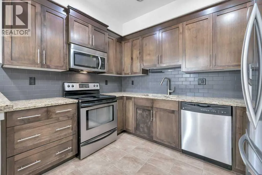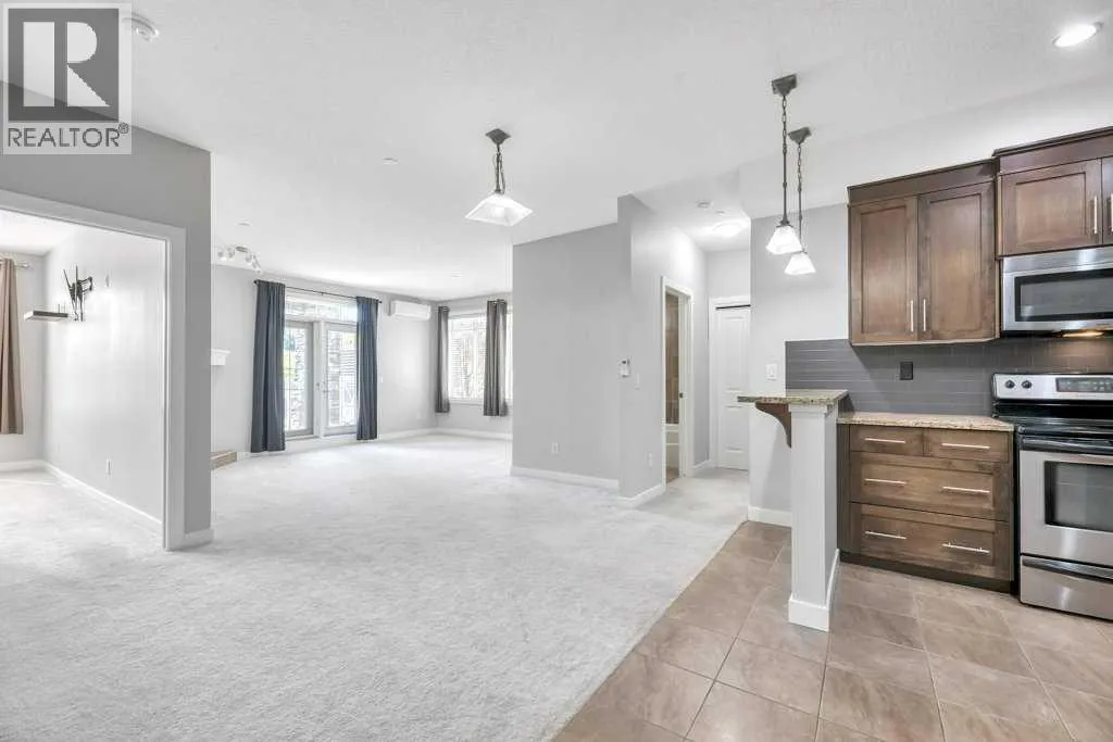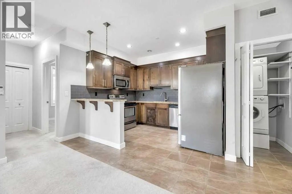 Spacious and bright, this over 900 sq ft corner condo offers comfort and convenience in a fantastic layout. The open floor plan features a welcoming living room anchored by a corner gas fireplace, perfect for cozy evenings. The kitchen is well-appointed with new stainless steel appliances, granite countertops, and a breakfast bar thatâs ideal for casual dining or entertaining. With 2 bedrooms and IN-SUITE laundry, the unit balances practicality with style. Step outside to a large private patio, a rare find for condo living. This home also comes with the bonus of THREE titled parking stallsâTWO underground and one surface levelâplus the comfort of air conditioning for warm summer days. A great opportunity for first-time buyers, downsizers, or investors! (id:27476)