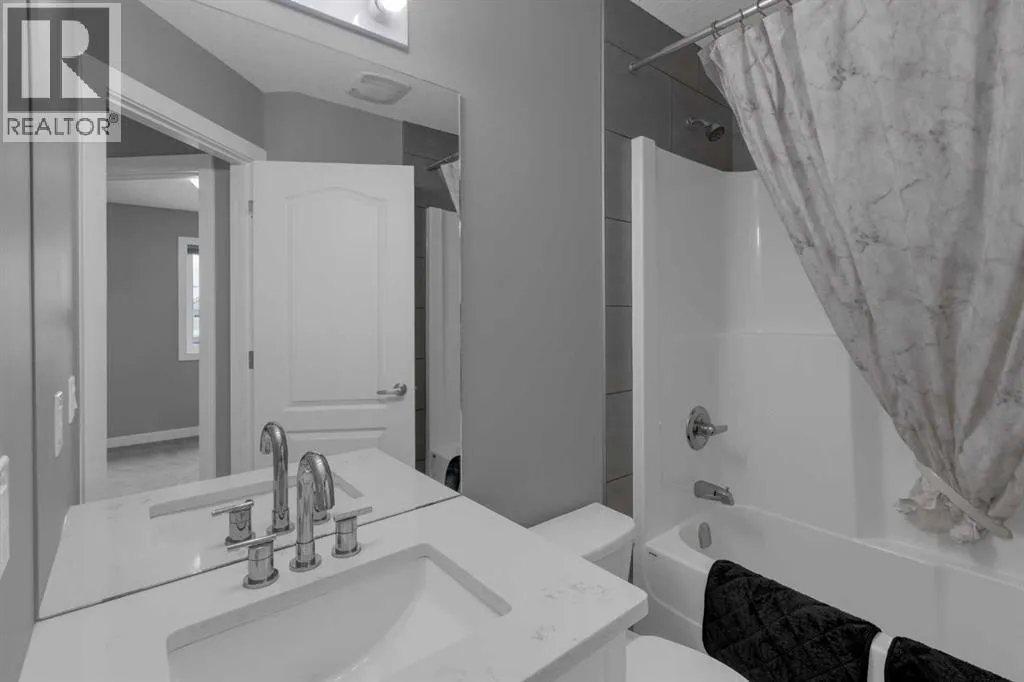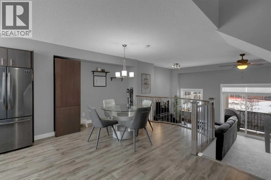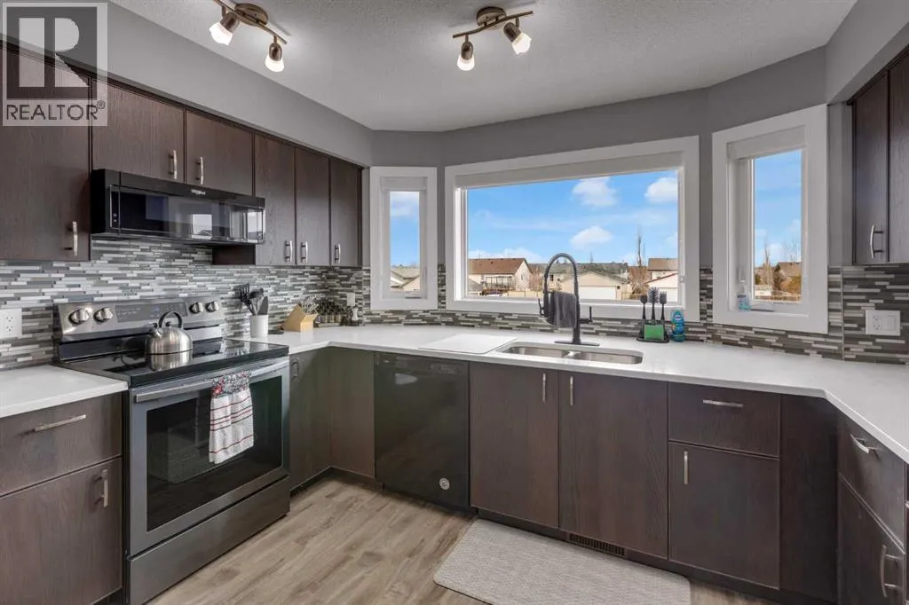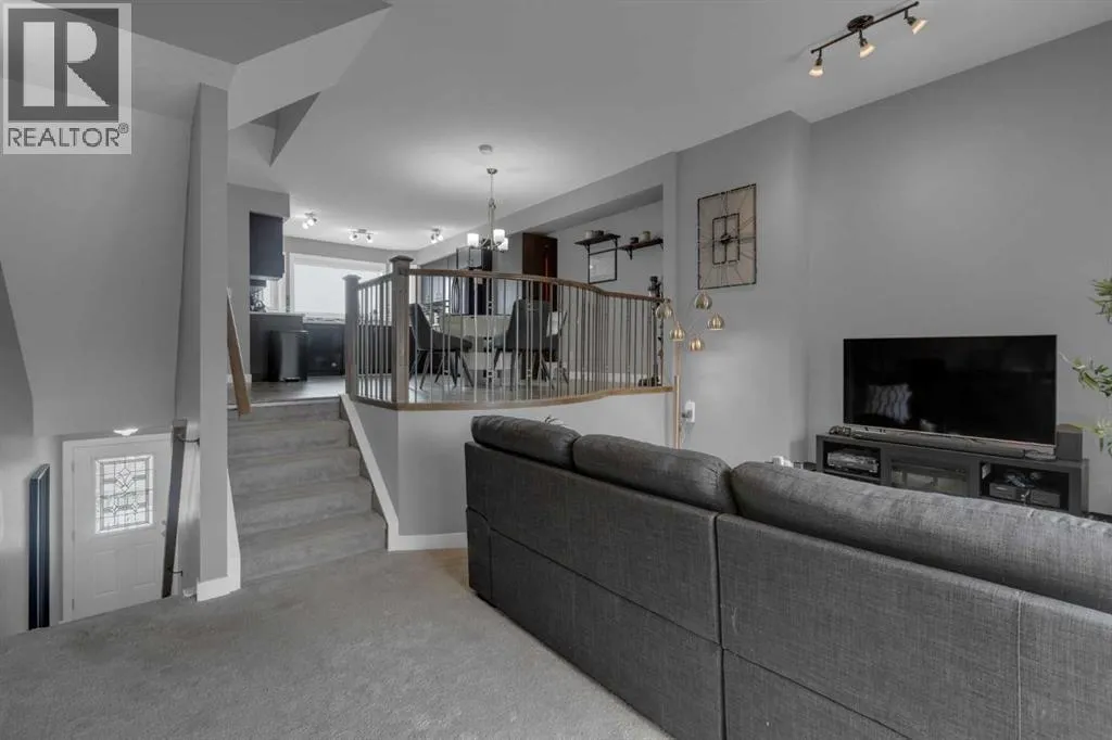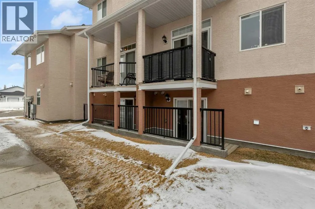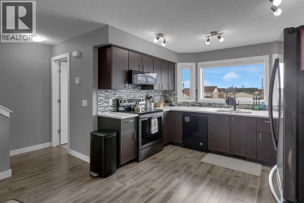 Perfect for First-Time Buyers Looking For A Rural Lifestyle With Modern ComfortsWhy settle for ordinary when you can own a stylish, modern townhome that offers the perfect balance of small-town charm and everyday convenience? This beautiful home features a front-attached garage and parking apron, giving you both practicality and curb appeal.Step inside to a spacious front entry where you can head down to the finished walkout basement or up to the bright and welcoming main living area. The split-level design creates an open, airy feel with high ceilings and large patio doors that fill the space with natural light and lead to a covered balconyâa perfect spot to enjoy your morning coffee or unwind in the evening.A few steps up, youâll find the open dining area and modern kitchen, thoughtfully designed for todayâs lifestyle. The kitchen features granite countertops, a sleek black and black stainless steel appliance package, and plenty of space for cooking, gathering, and entertaining friends and family. A convenient 2-piece bathroom completes the main level.Upstairs, there are three spacious bedrooms, including a comfortable primary suite with his and her closets and private 4-piece ensuite, plus an additional full bathroom for family or guests.The finished walkout basement offers flexible spaceâperfect for a games room, home office, workout area, or cozy media space. Laundry is conveniently located on this level as well. The drywalled and insulated attached garage provides secure access directly into the home, making everyday living easy year-round.If youâve been dreaming of homeownership in a welcoming community while still being close to schools, shopping, dining, and everyday amenities, this home is the perfect place to start.Stop renting and start building your futureâbook your private showing today! (id:27476)