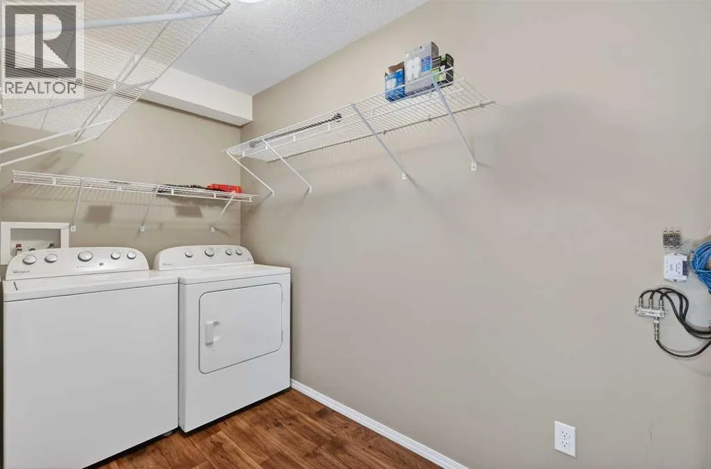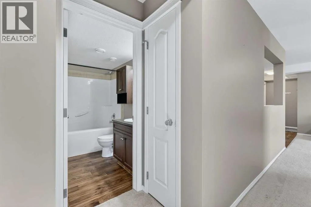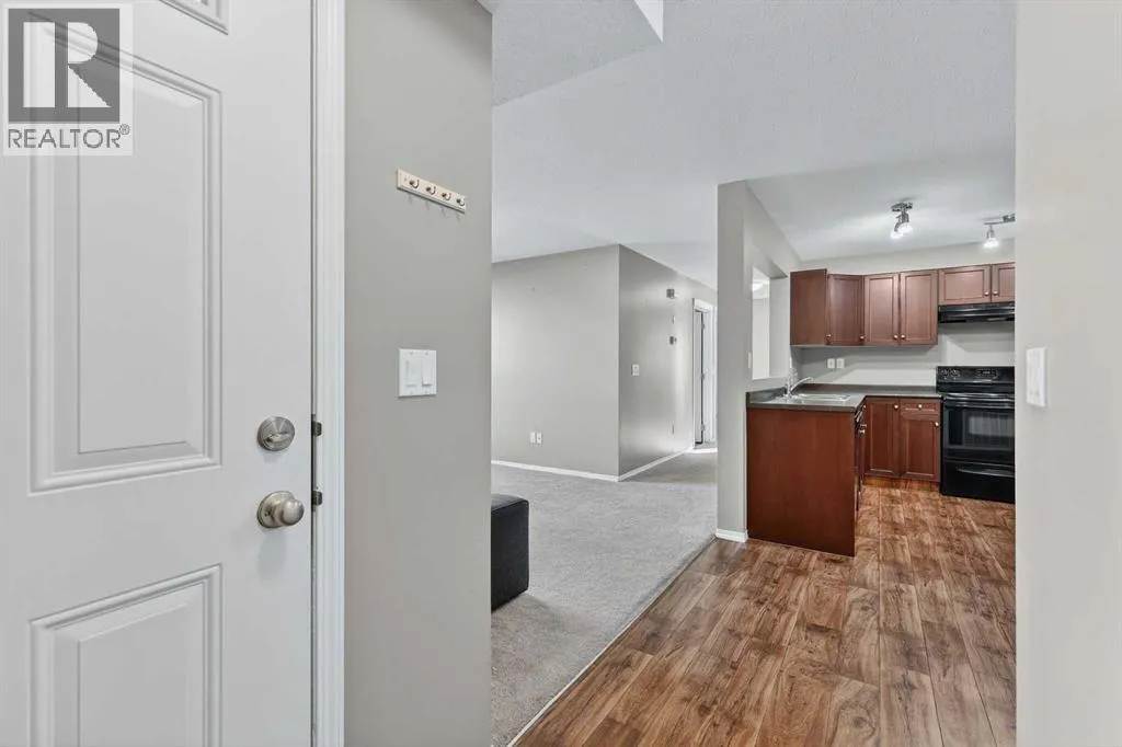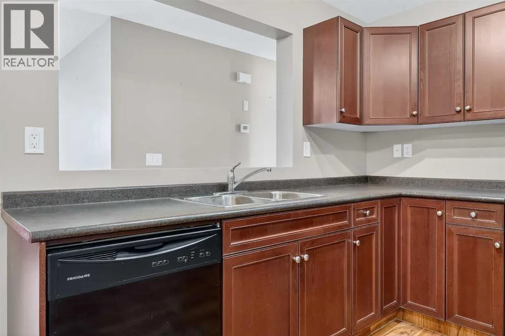 Experience carefree living in this adorable and affordable 2 bedroom unit in Bayside Villas. This ground floor unit offers convenient single level living with no stairs for those looking for accessible living. Plus it includes a covered patio area that is ideal for enjoying the outdoors while still being protected from the elements. Your pets will love it too - pets are welcome in this complex with board approval. This bright and sunny unit is spacious with an open layout. The large kitchen has plenty of cupboard and counter space and an opening in the wall between the kitchen and living room allows for lots of natural light. The kitchen is open to a nice sized dining area and is right next to your comfortable living room where youâll enjoy a large window and direct access to your outdoor space. There are 2 bedrooms down the hall as well as a 4 pc bath with tub. Youâll love the convenience of in-suite laundry in this really large laundry room that also gives you extra room for storage. Plus there is additional storage space in the utility room. The high efficiency furnace is roughed in for air conditioning making it an easy addition in the future. There is one assigned parking stall conveniently located right in front of the unit plus ample visitor parking. Donât worry about bringing your snow shovel because your condo fees include snow removal as well as common area maintenance, heat, insurance, parking (including power to your stall to plug in during winter,) reserve fund contributions, water and visitor parking. Bayside Villas is ideally located close to everything you need. Shopping, dining, recreation facilities, schools, parks, pathways and more. This unit is part of the Town of Strathmoreâs Perpetual Affordable Housing (PAH)Program and buyers must be pre-approved. Ask agent for more details on this program. Youâre going to love living here. (id:27476)