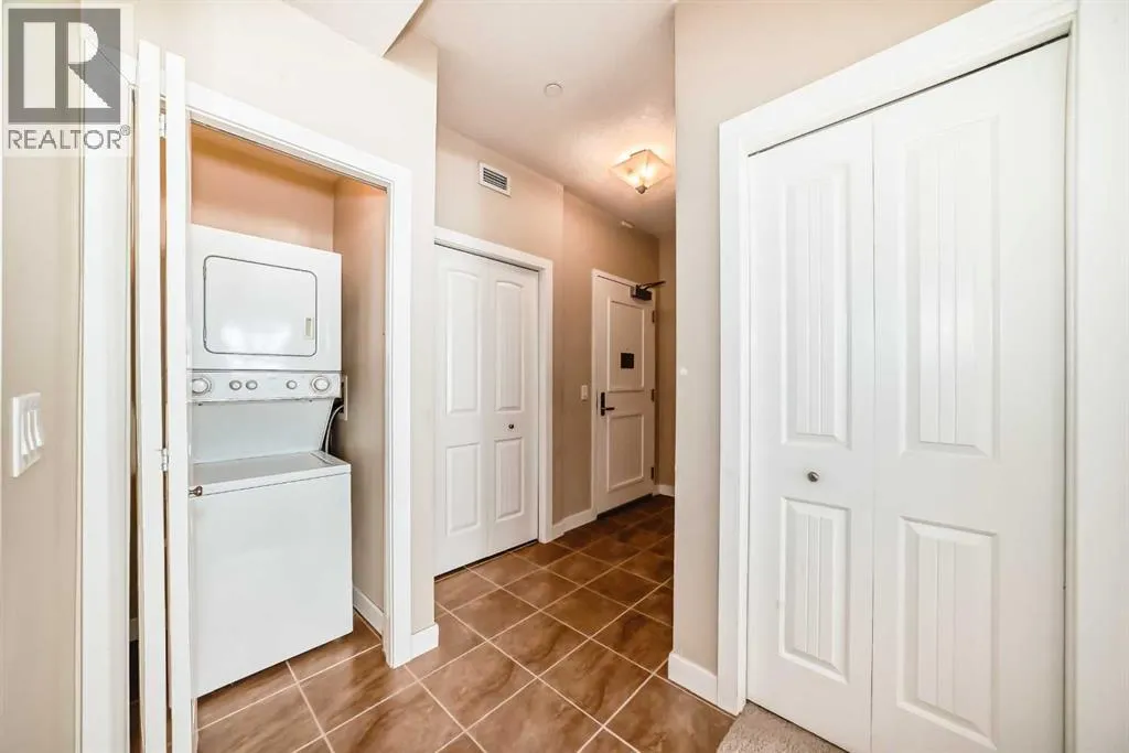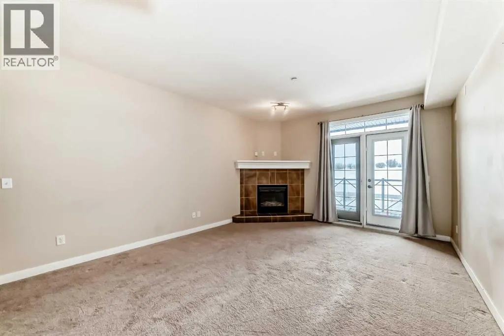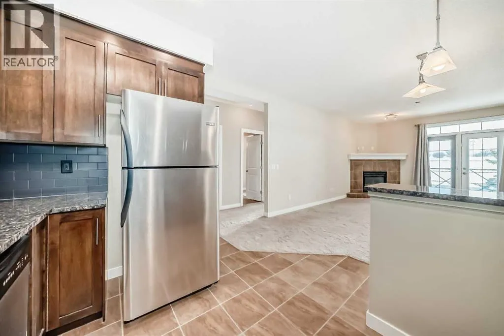 Vacant and ready for a flexible possession, this beautifully maintained second-floor condo in The Savana at Strathmore Lake Estates, offers the perfect blend of comfort, convenience, and lakeside living. This well-designed 764 sq ft, 1-bedroom, 1-bathroom unit features a bright open-concept layout with generous natural light throughout. The kitchen is finished with granite countertops, rich shaker-style cabinetry, stainless steel appliances, and a breakfast bar, making it both functional and stylish. The cozy living area is anchored by a corner gas fireplace with tile surround, creating a warm and inviting space to relax.The spacious primary suite includes a walk-in closet and ensuite. Enjoy the convenience of in-suite stacked laundry.Step outside to your private balcony with a gas BBQ hookup, perfect for evening grilling. The unit also includes a titled surface parking stall.Located steps from Strathmore Lake, walking paths, parks, shopping, and everyday amenities, this home offers an easy, low-maintenance lifestyle in one of Strathmoreâs most desirable condo communities. (id:27476)